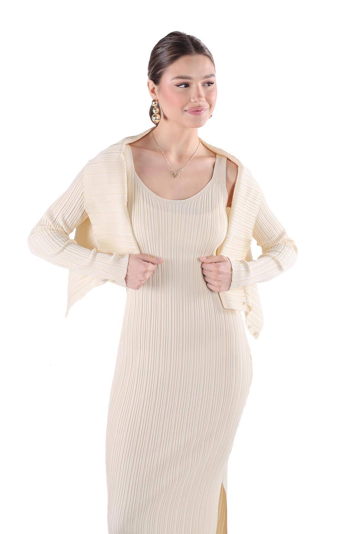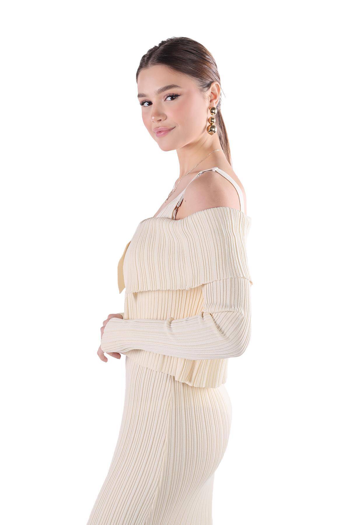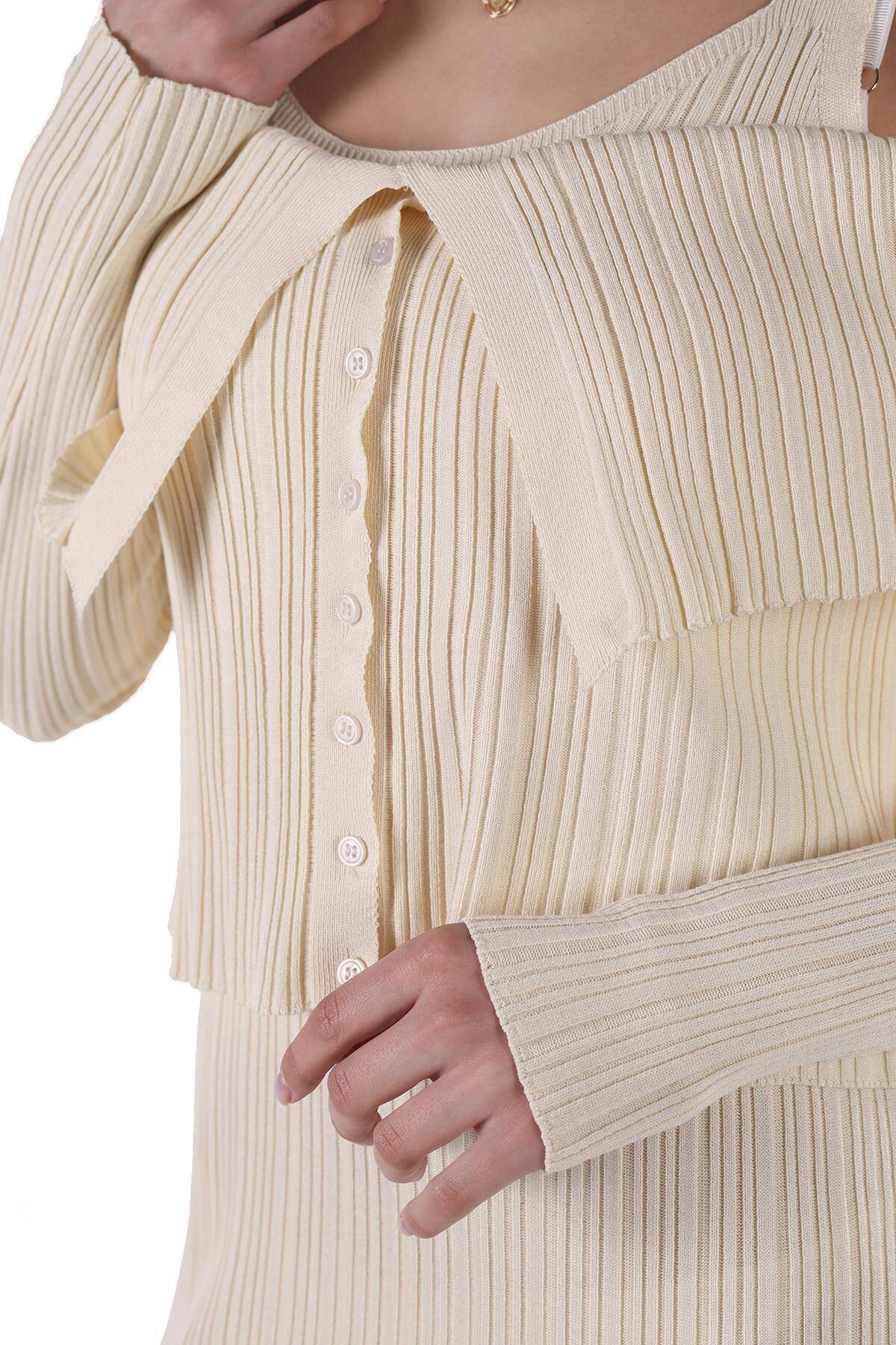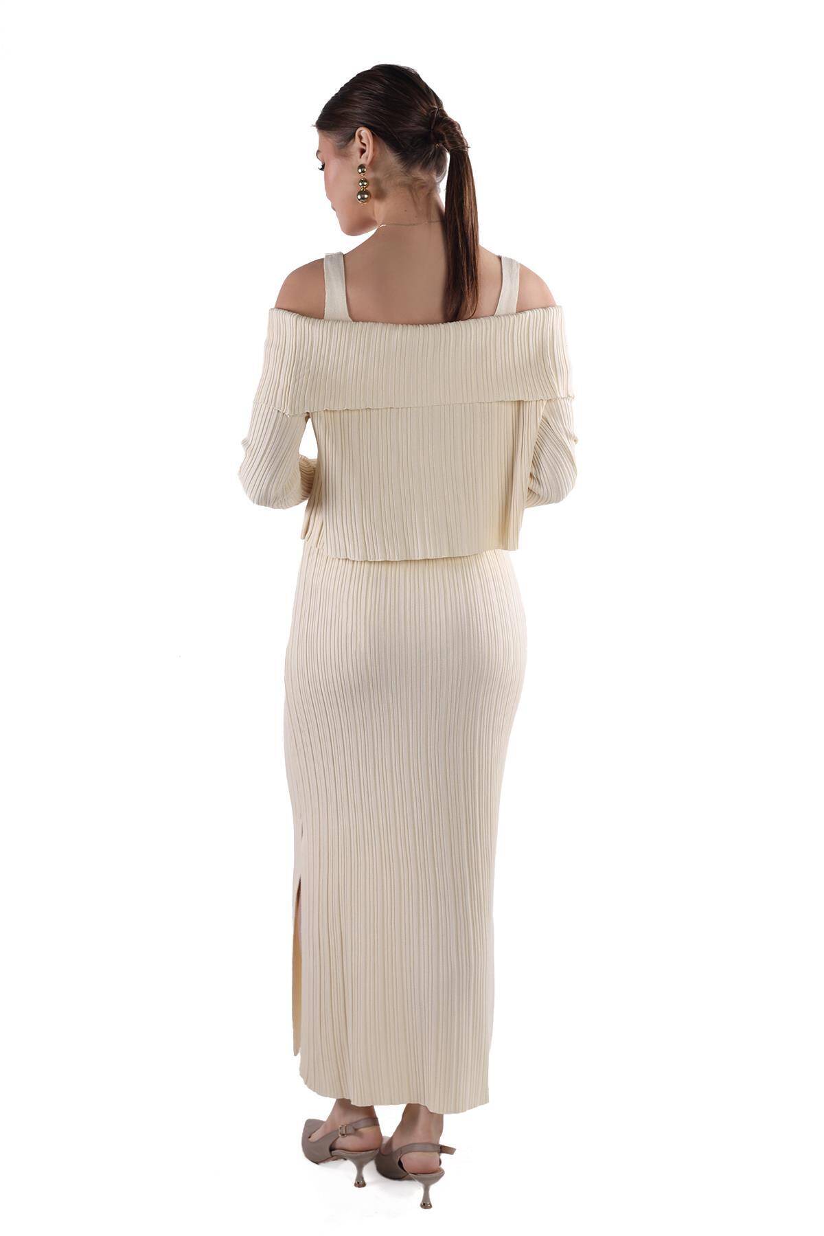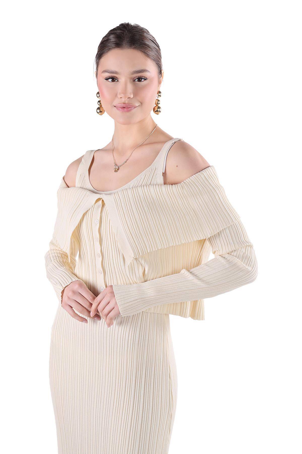 Beyaz Deri Kemer Detaylı Etnik Desenli Kimono 4363A