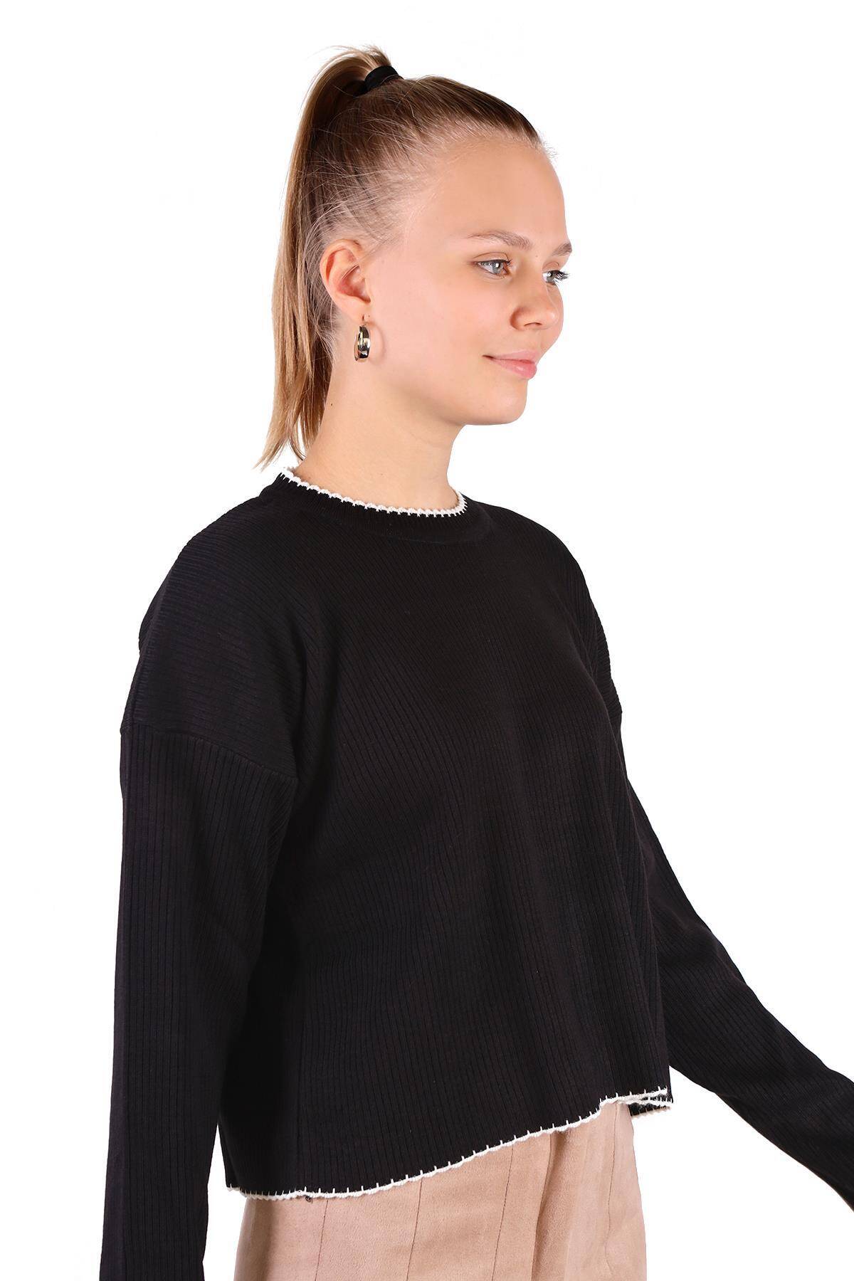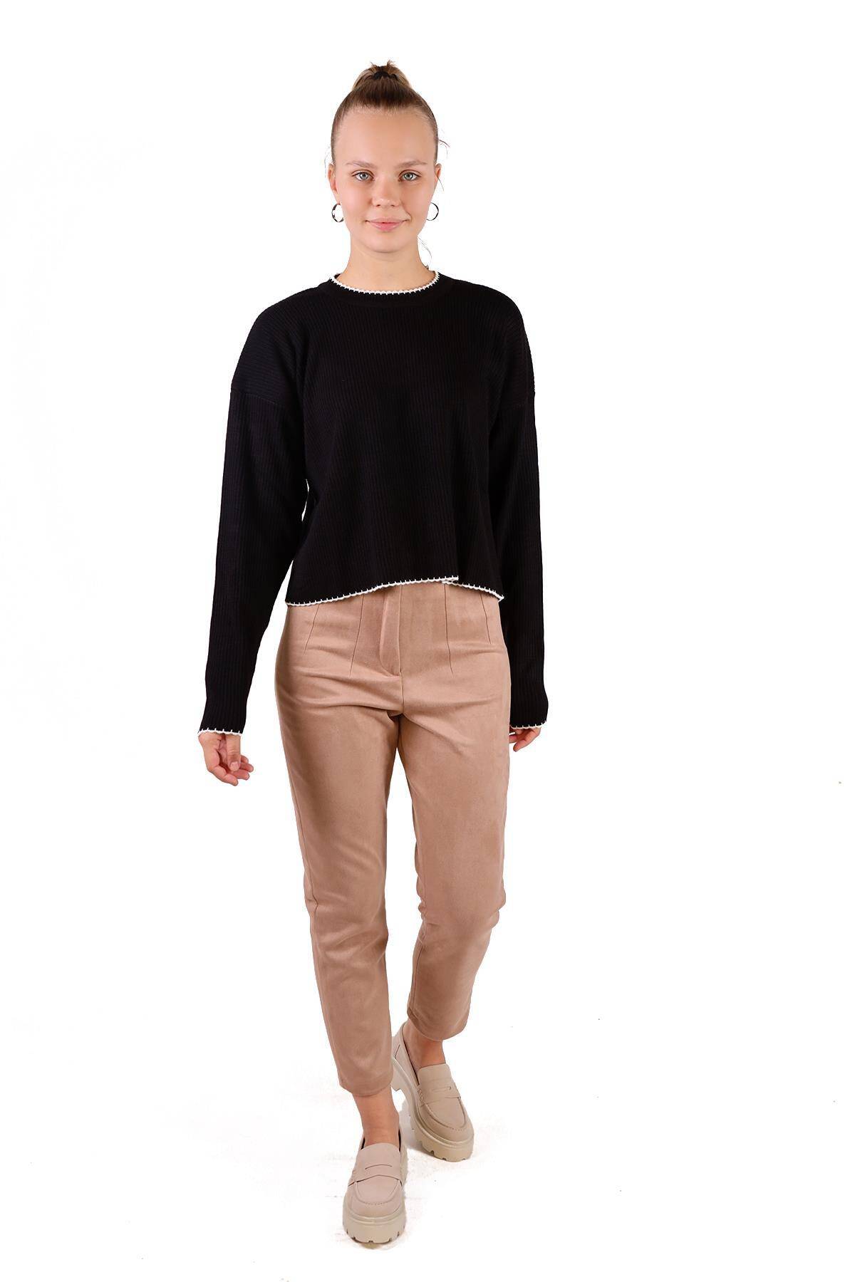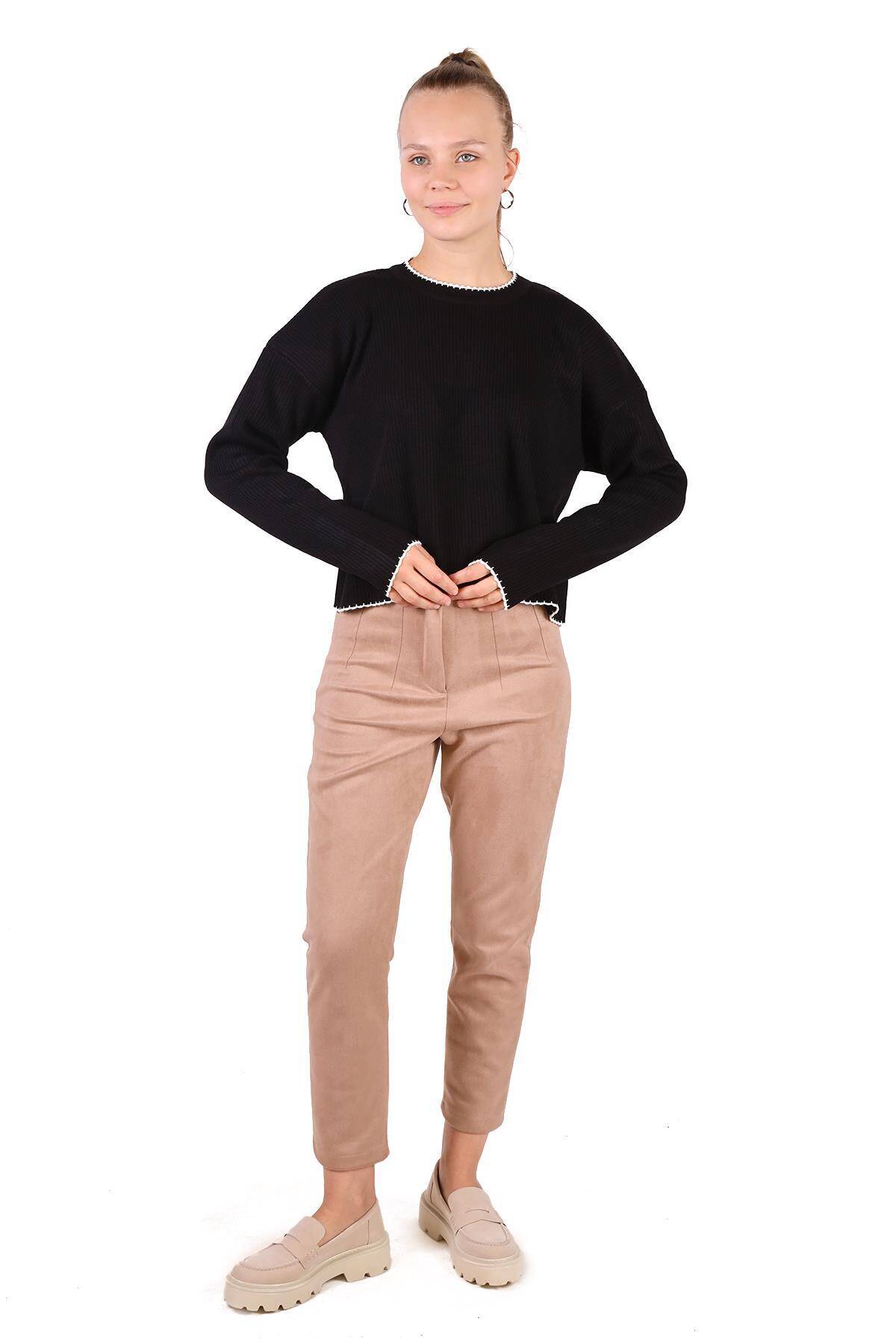 7149A Belden Bağlamalı Uzun Kaşe Kaban Siyah