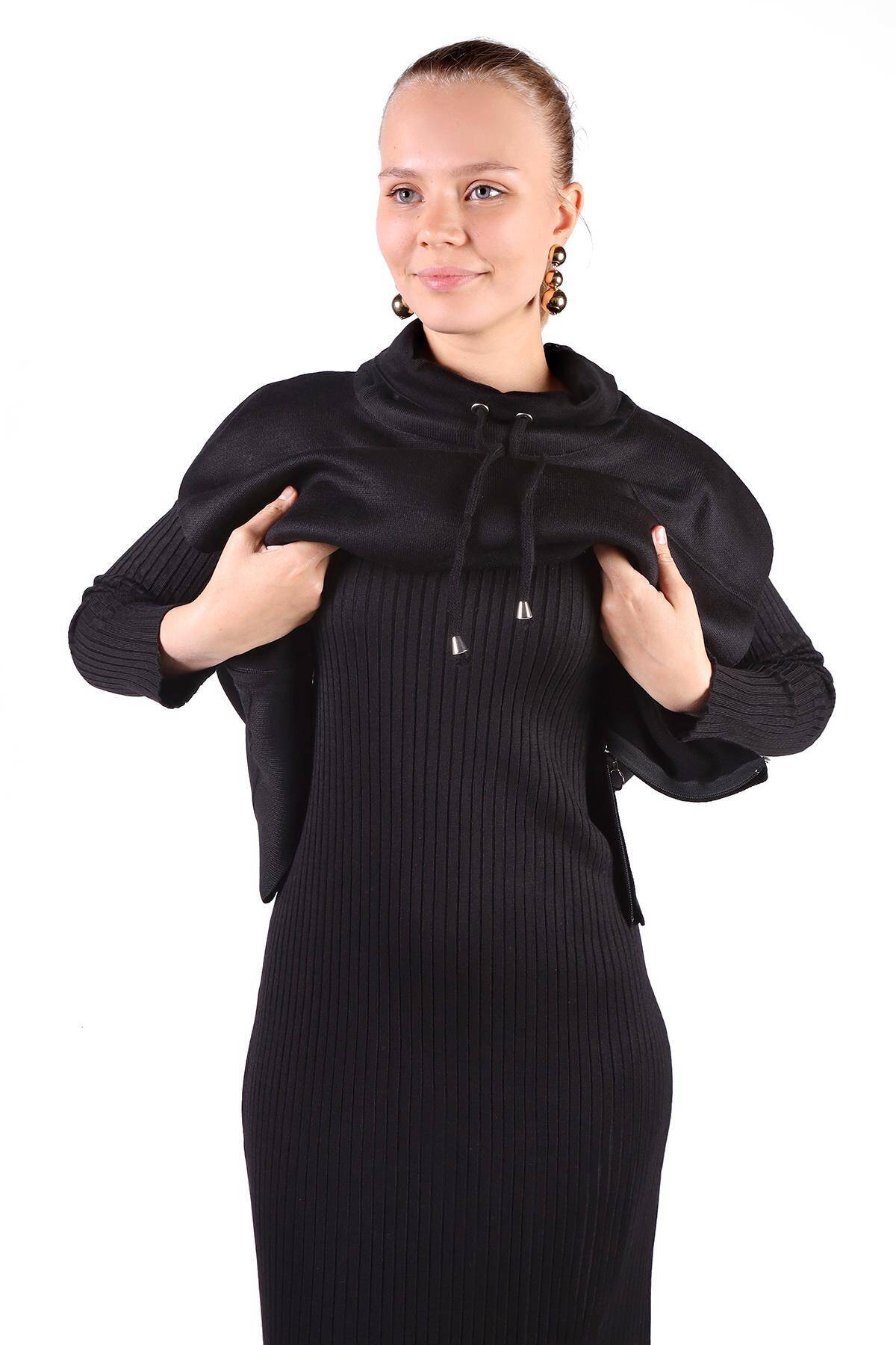 Siyah Kapüşonlu Cepli Fermuarlı Kap 4572A