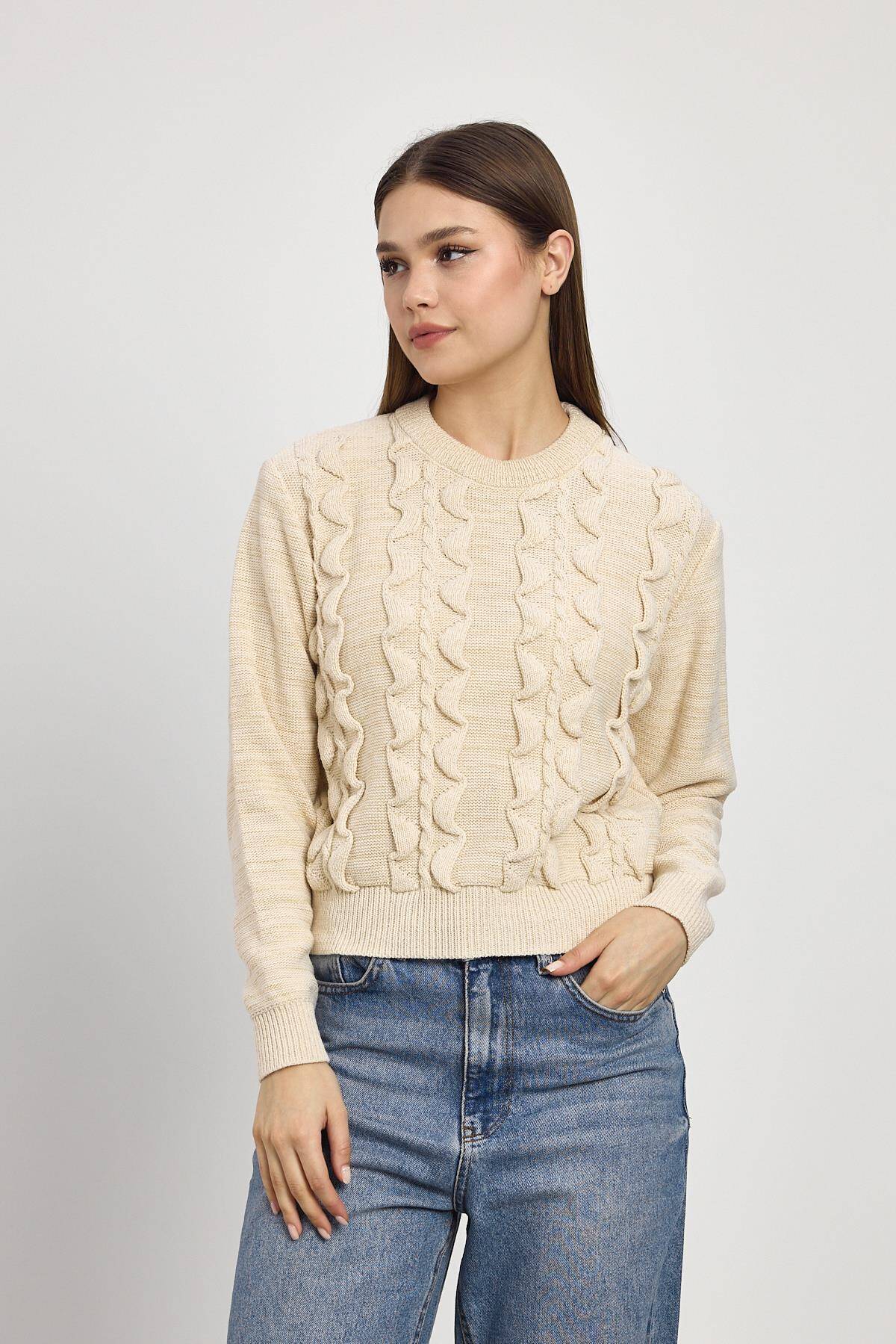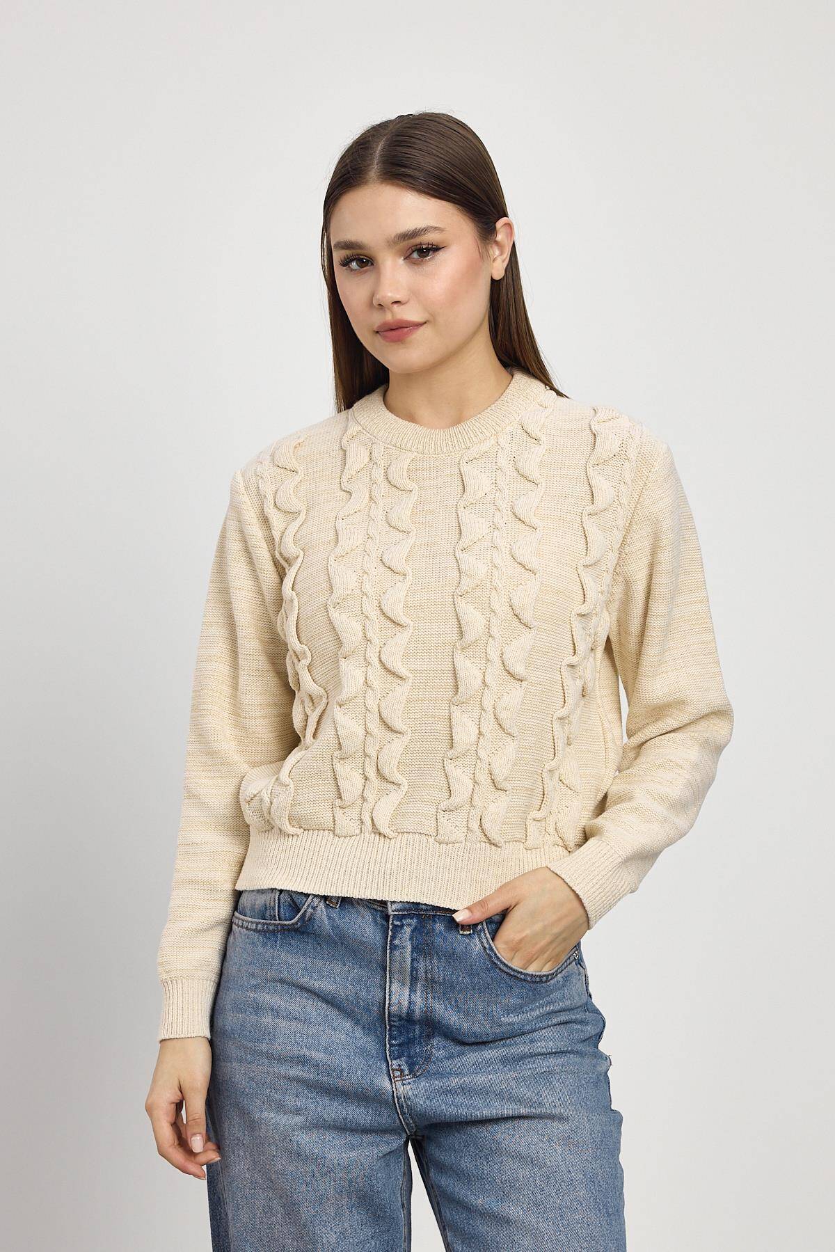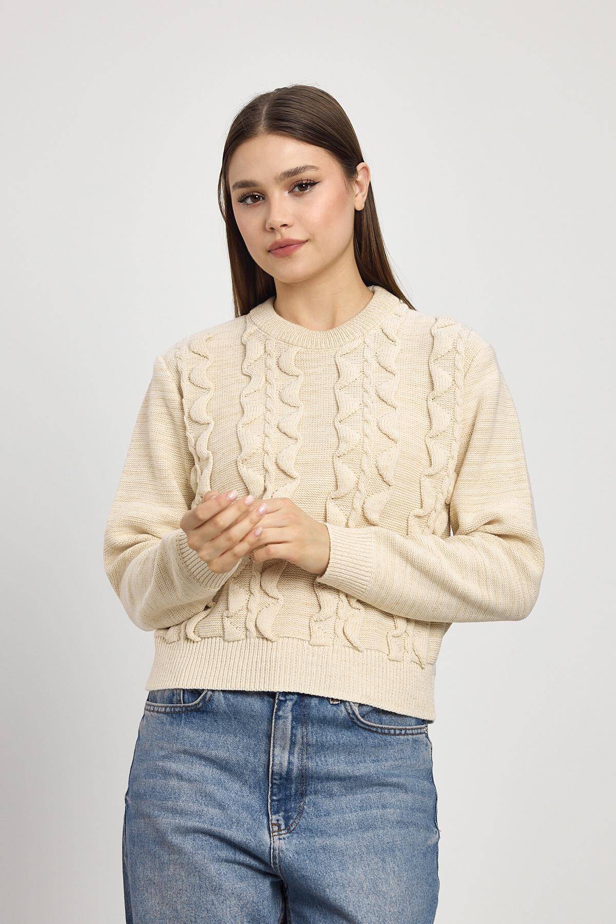 24364 Simli Fırfır Detay Kazak Bej
