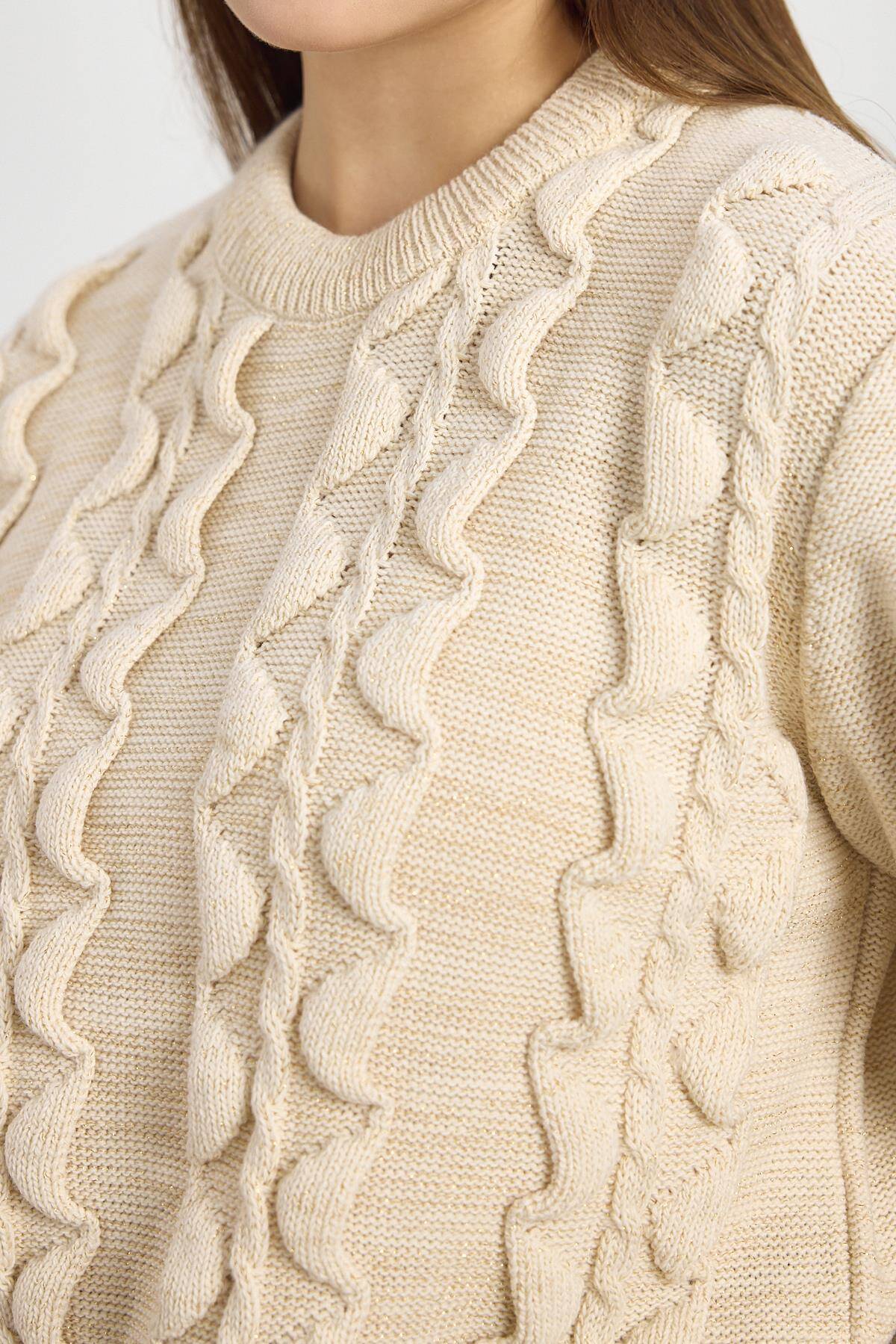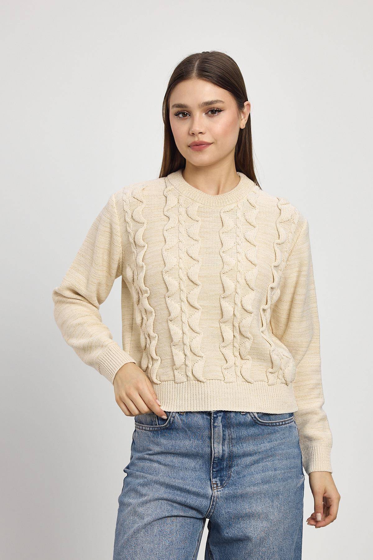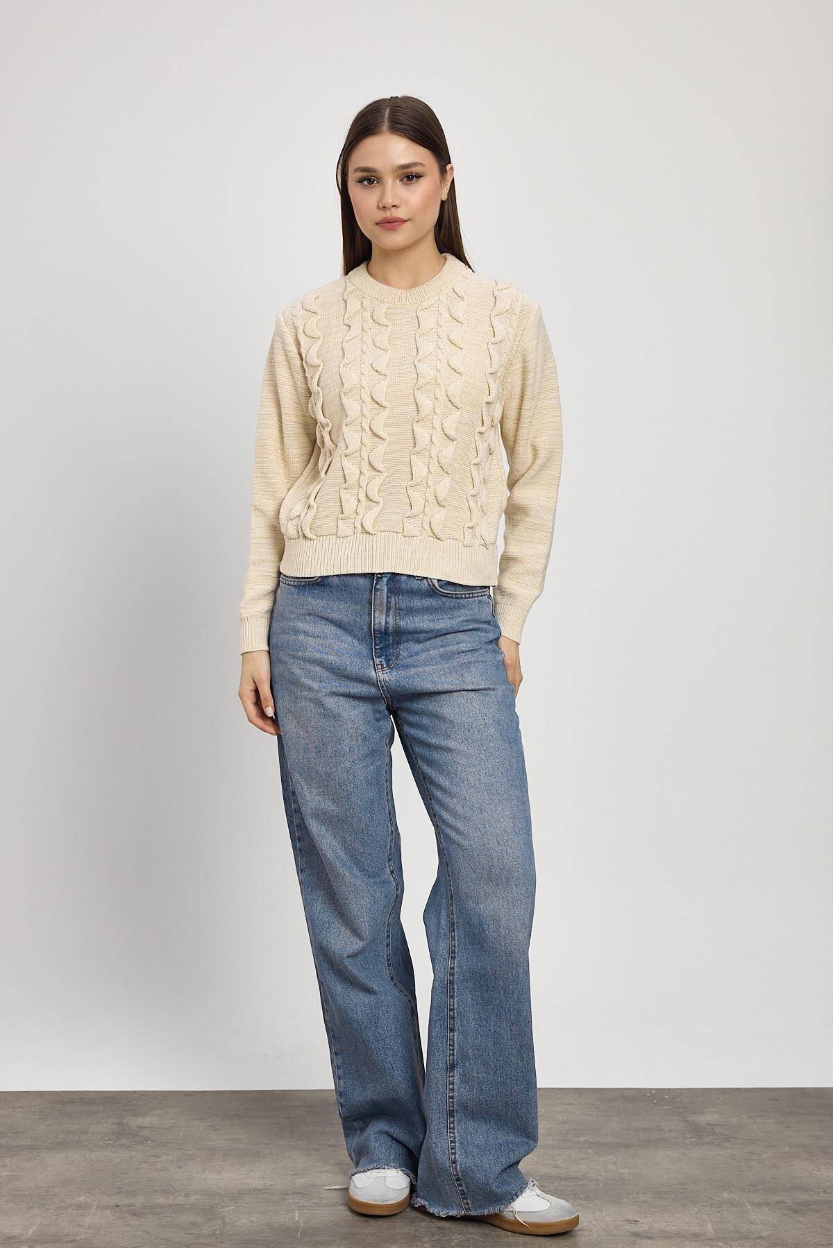 24364 Simli Fırfır Detay Kazak Bej