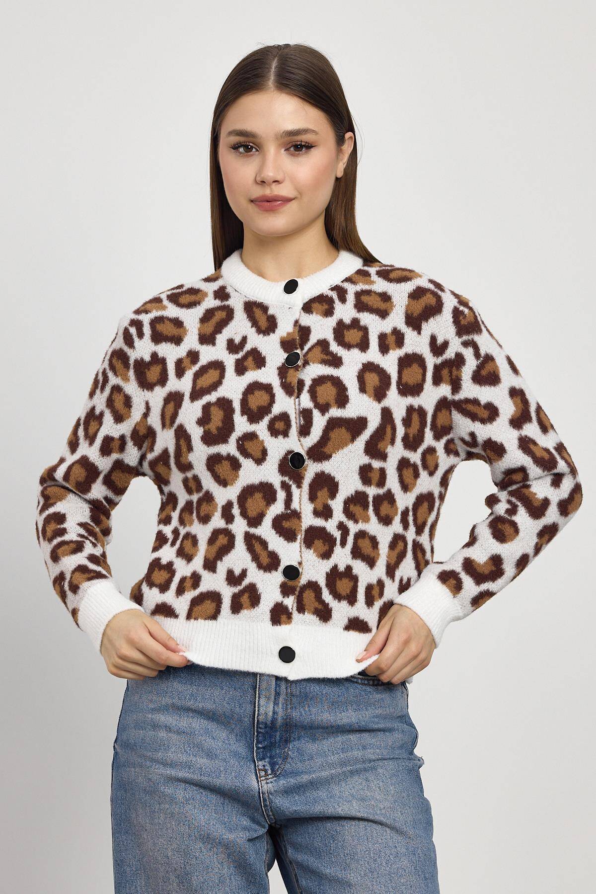 Beyaz Deri Kemer Detaylı Etnik Desenli Kimono 4363A
