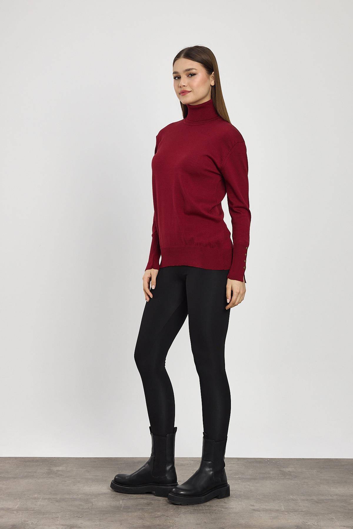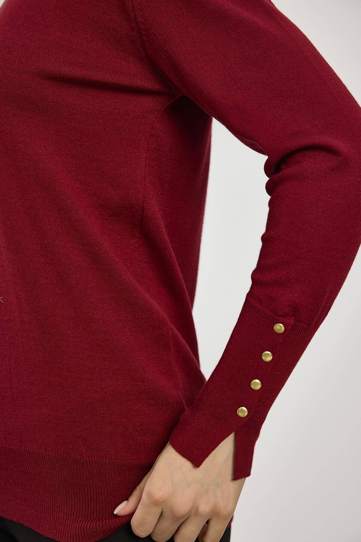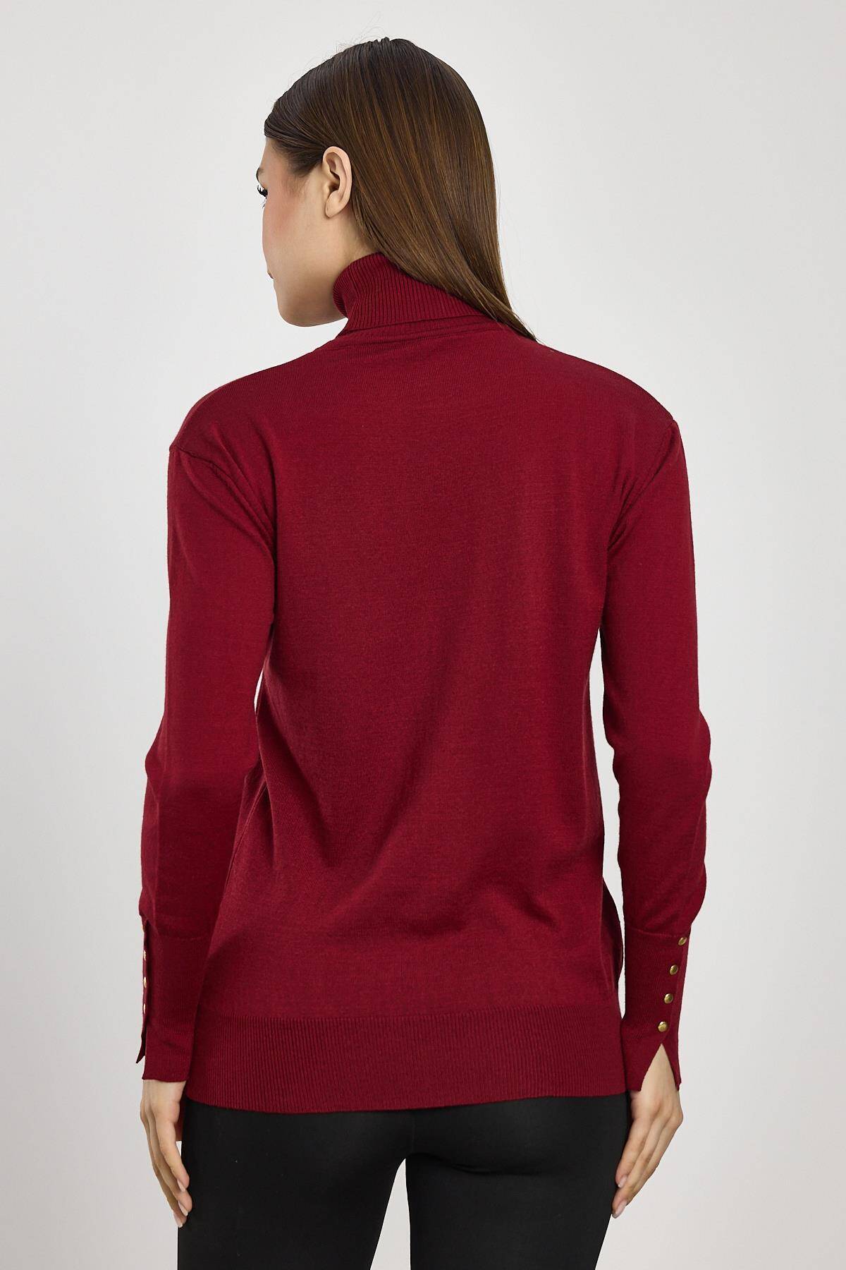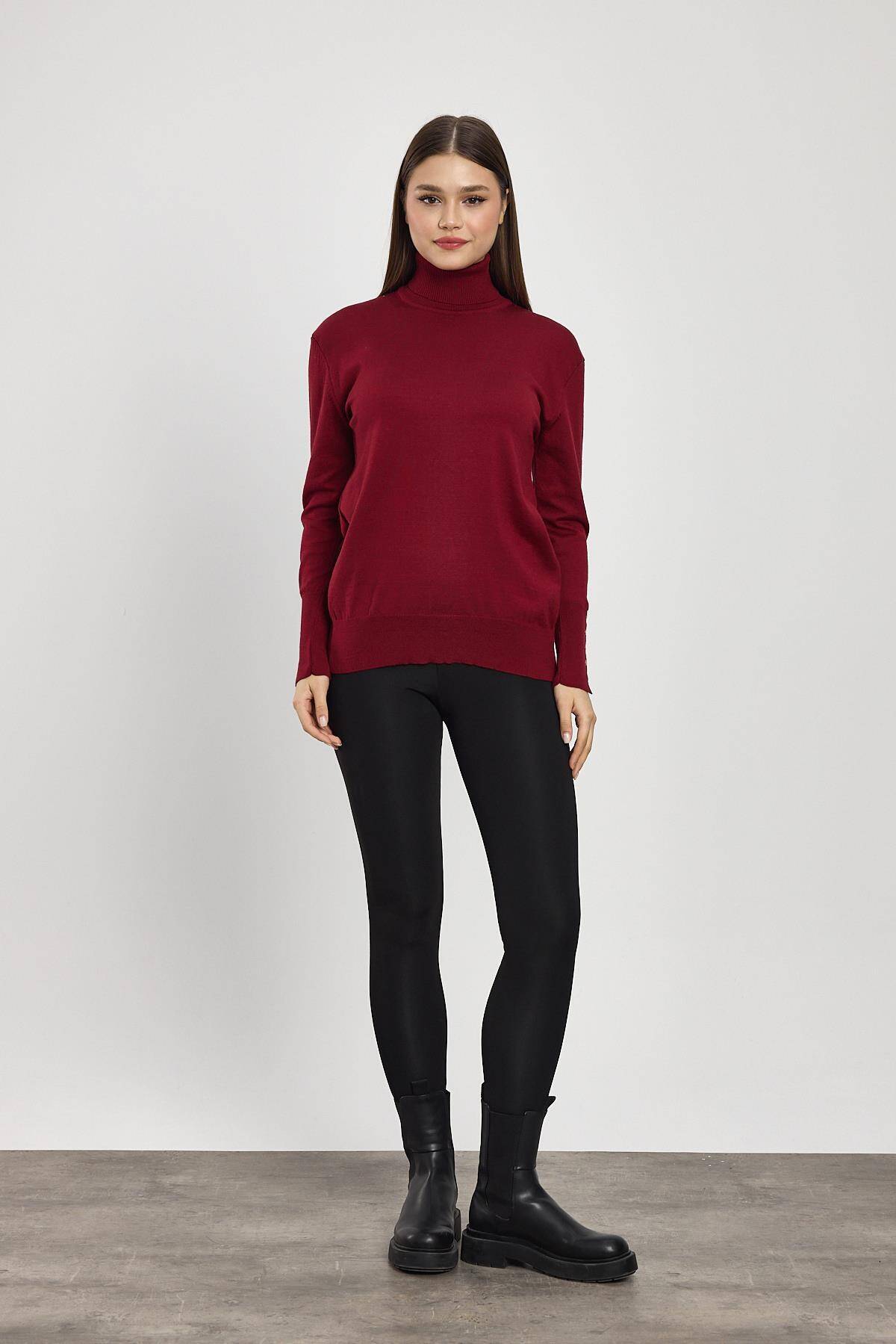 24369 Balıkçı Yaka Kol Detay Kazak Bordo
