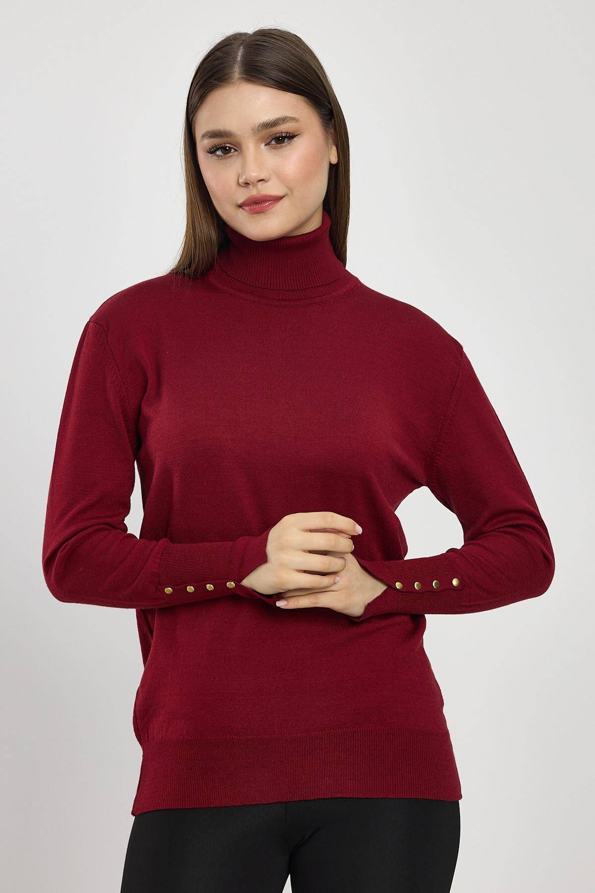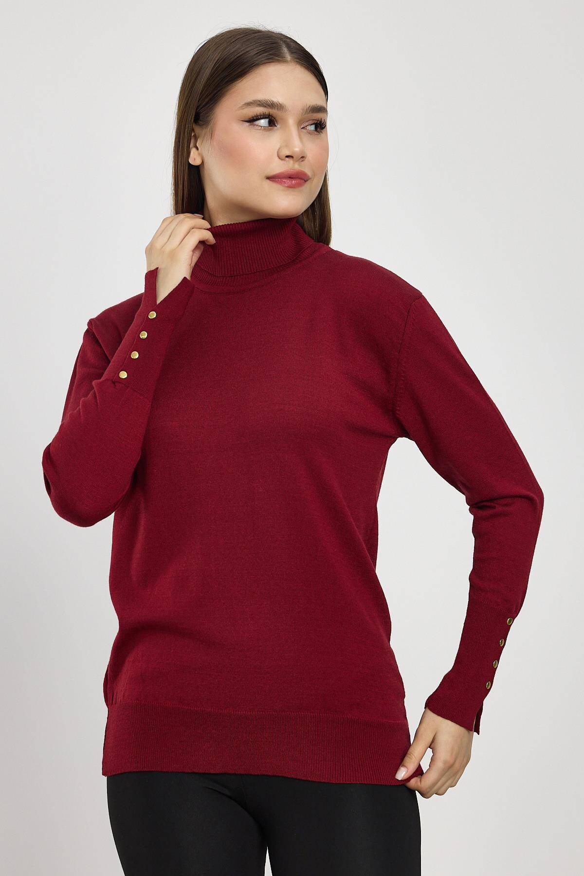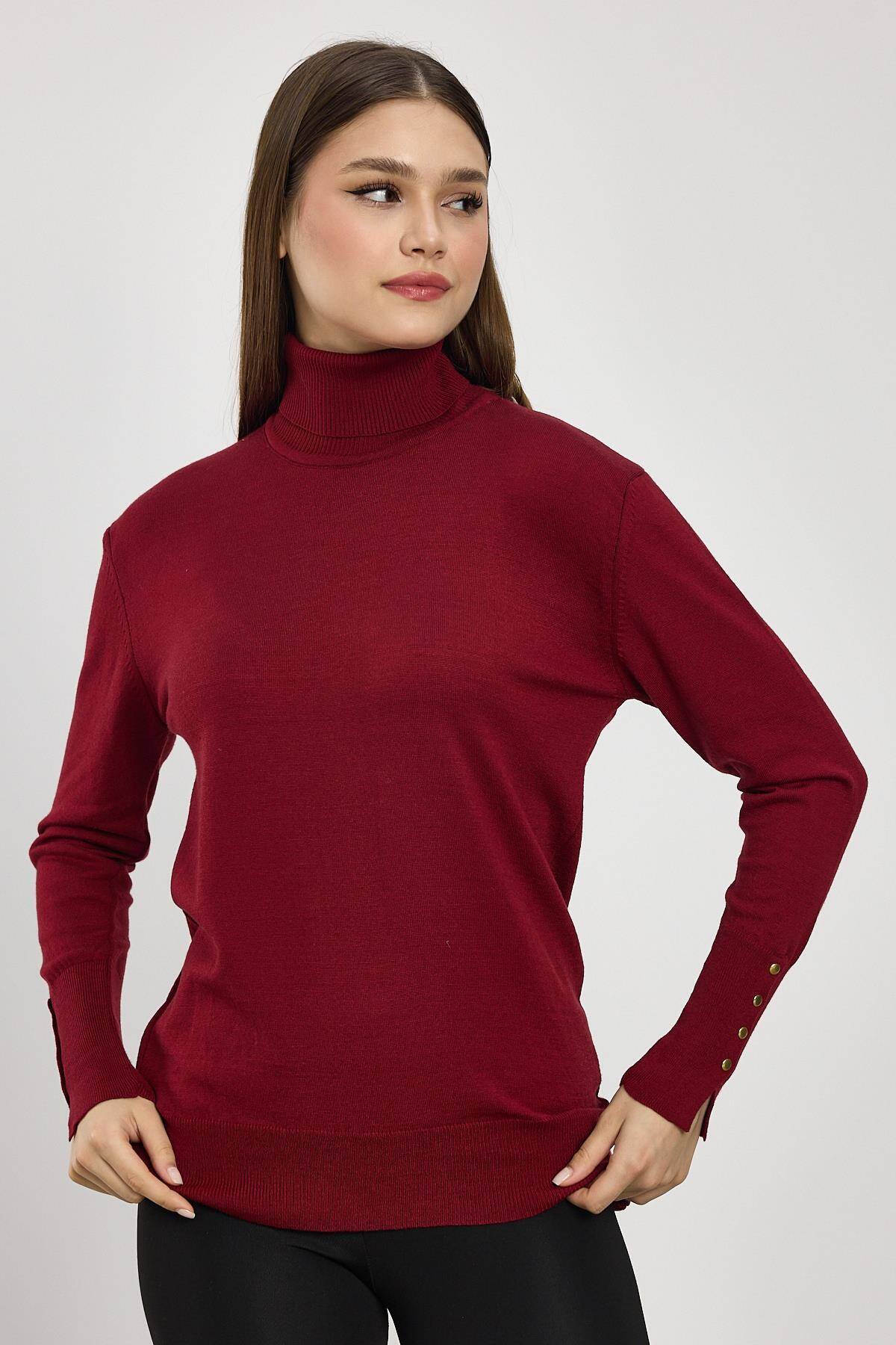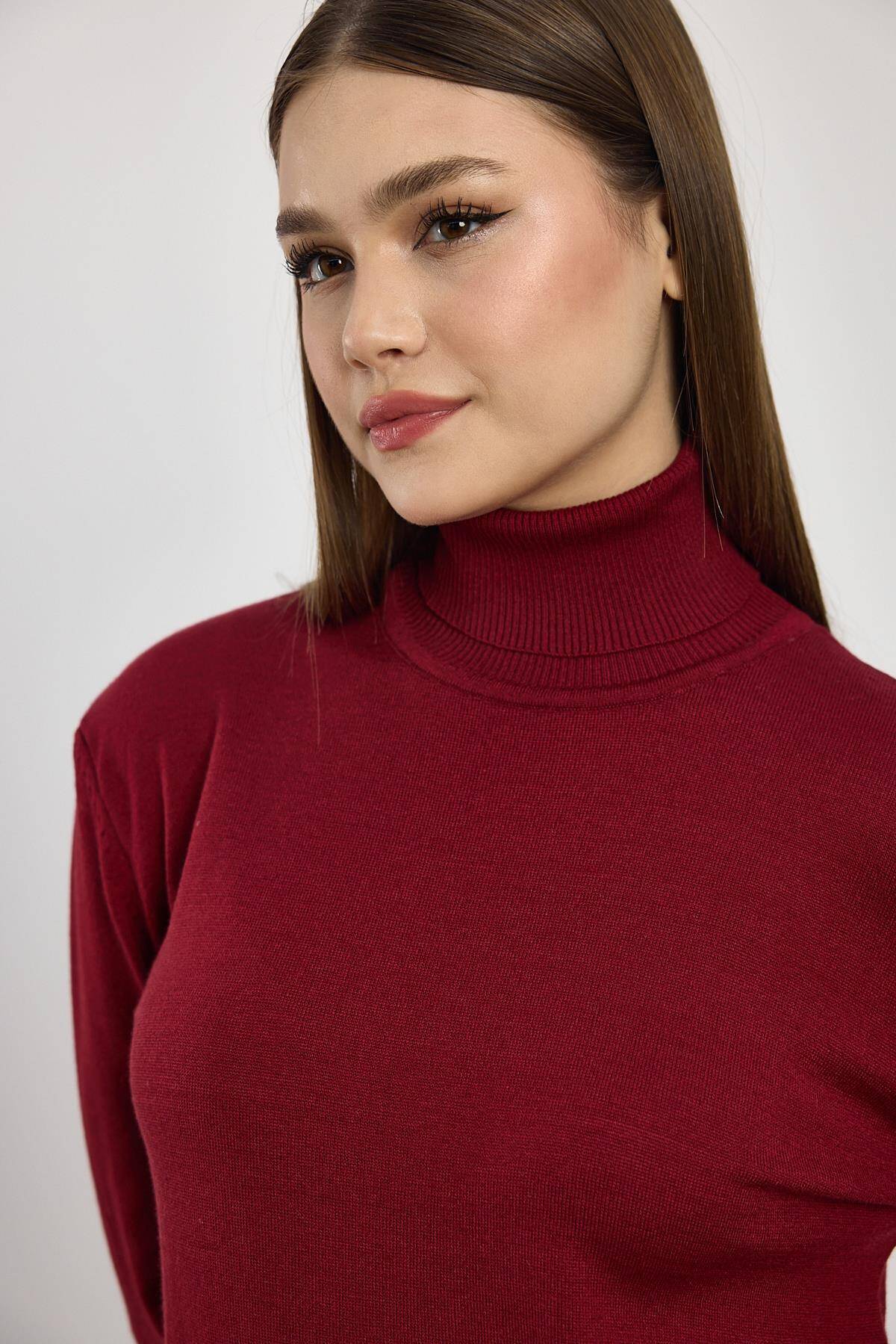 24369 Balıkçı Yaka Kol Detay Kazak Bordo