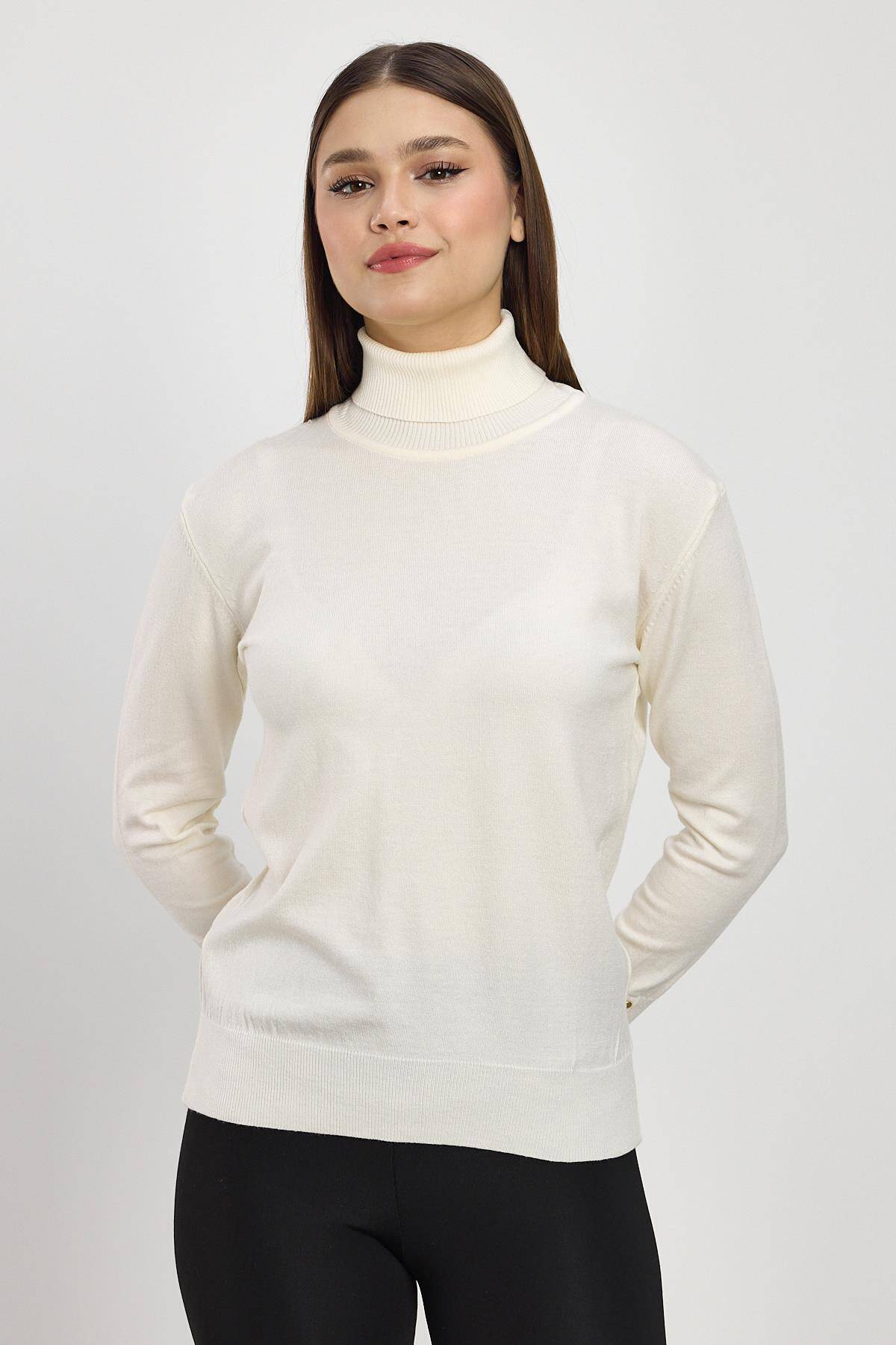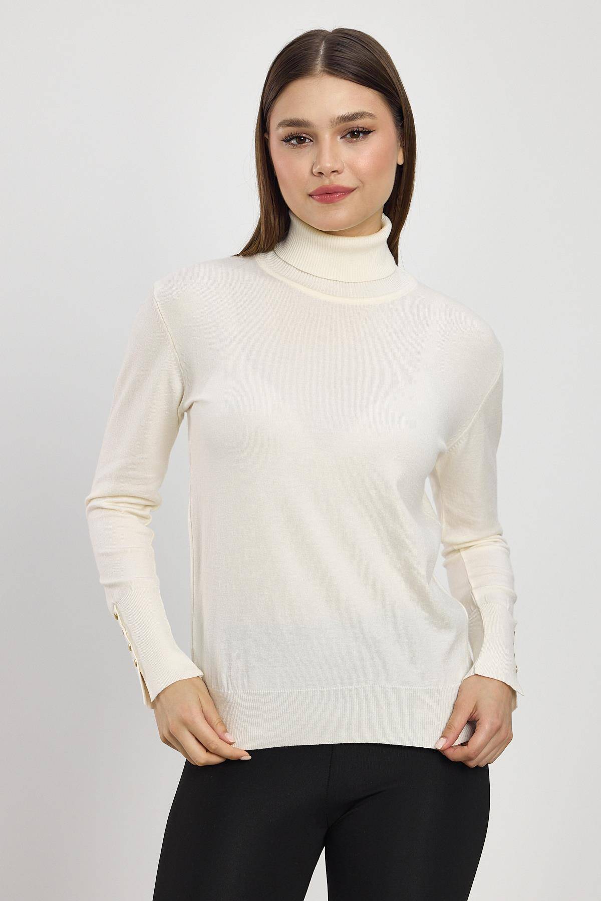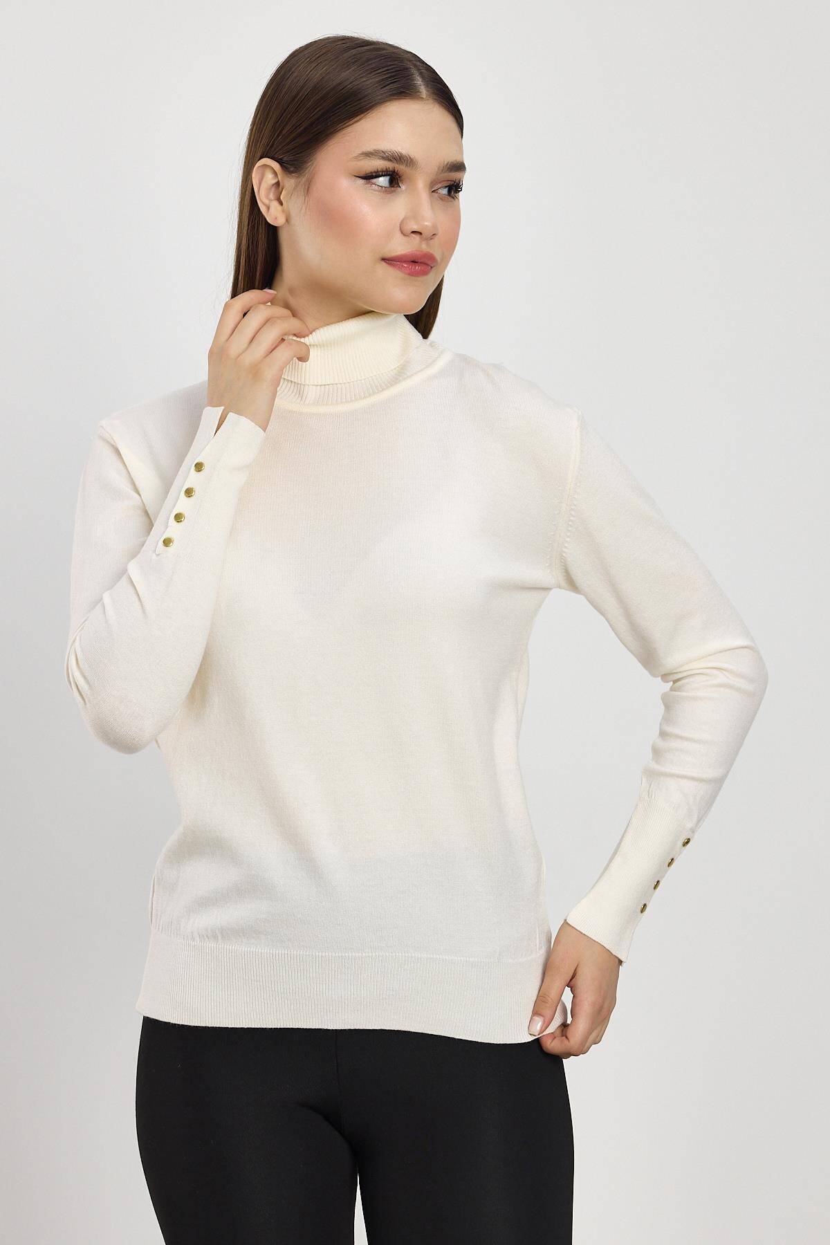 24369 Balıkçı Yaka Kol Detay Kazak Ekru