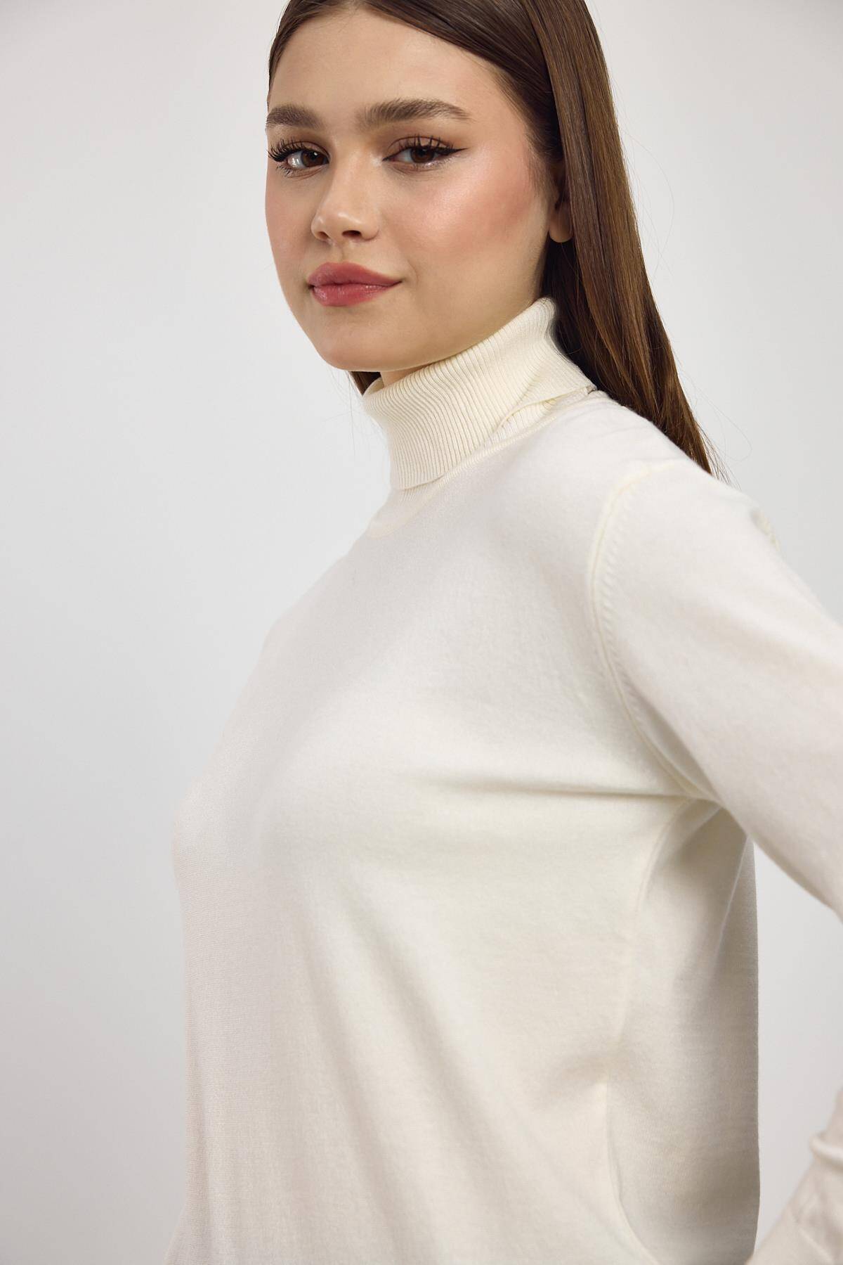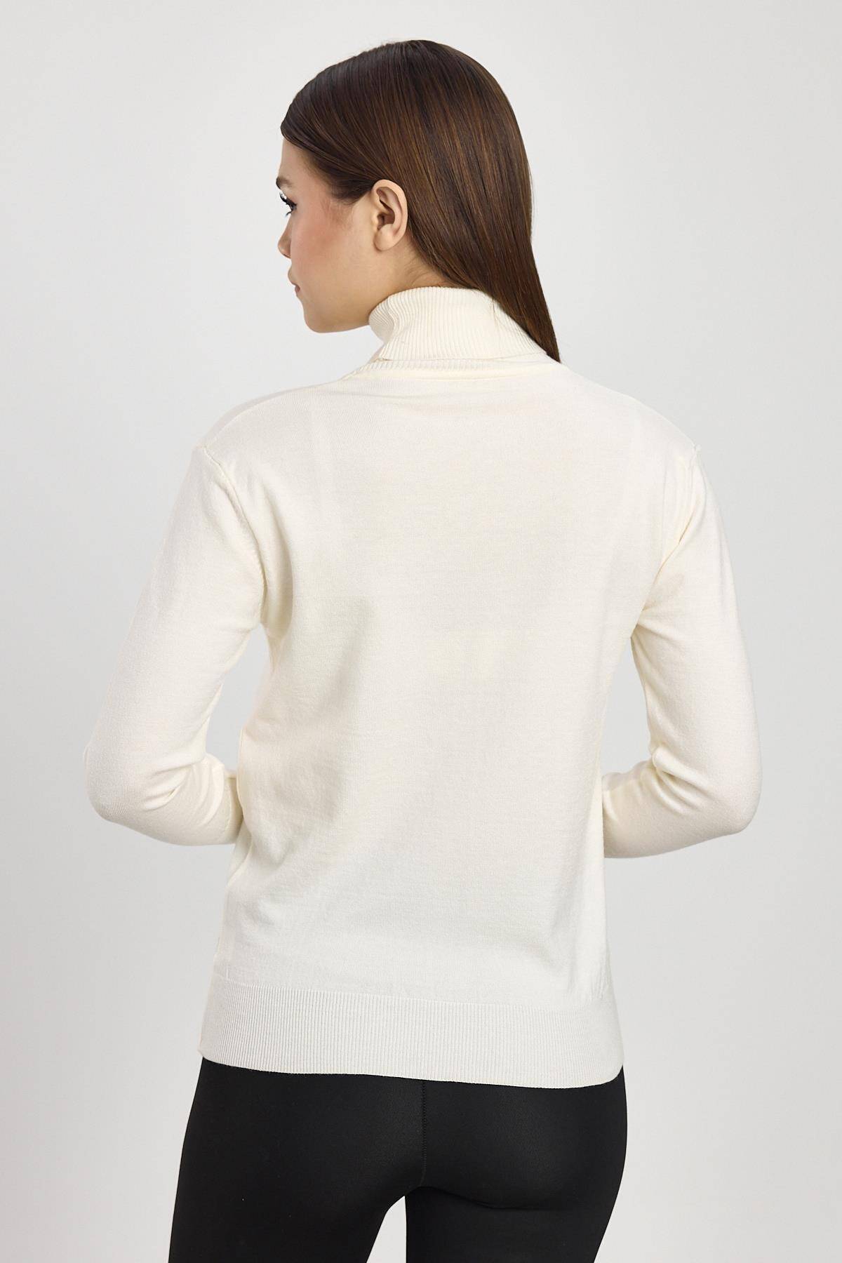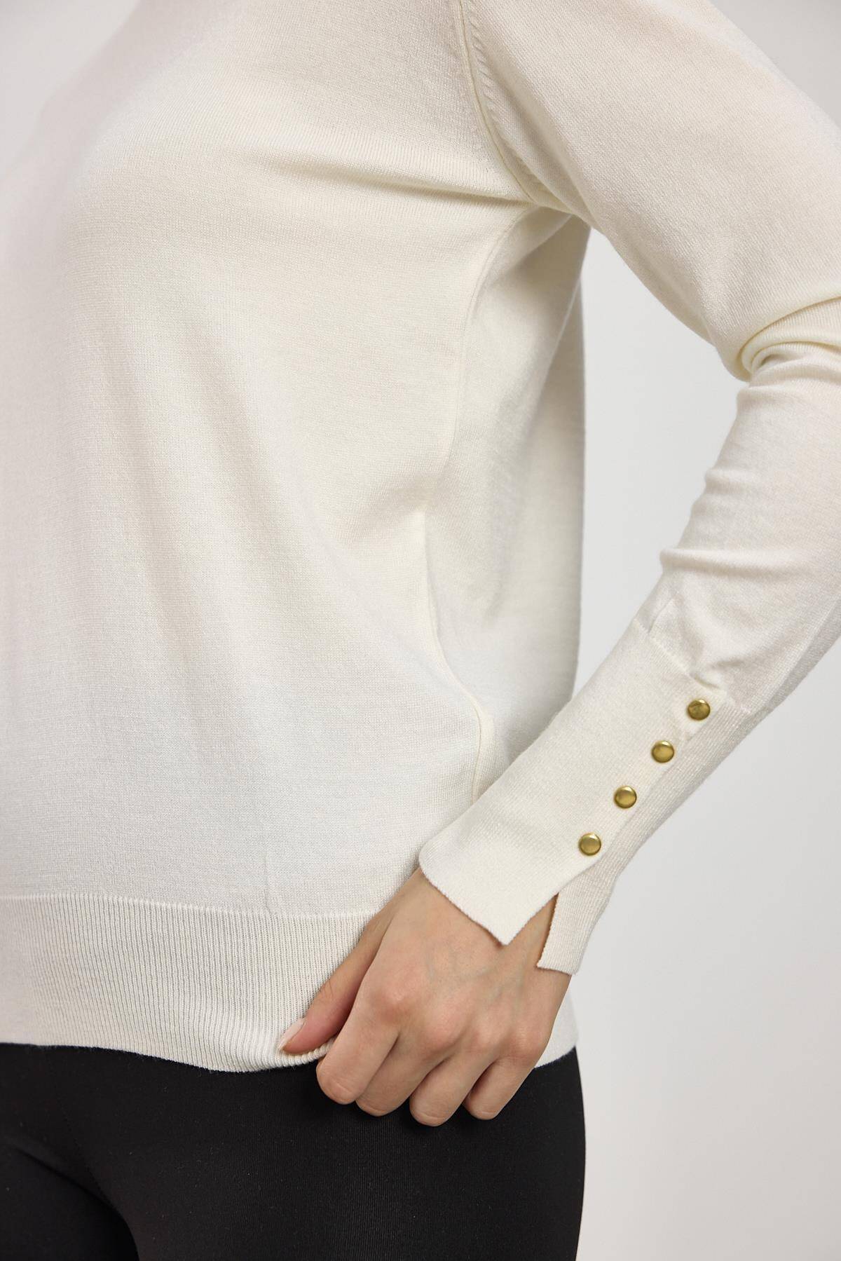 24369 Balıkçı Yaka Kol Detay Kazak Ekru