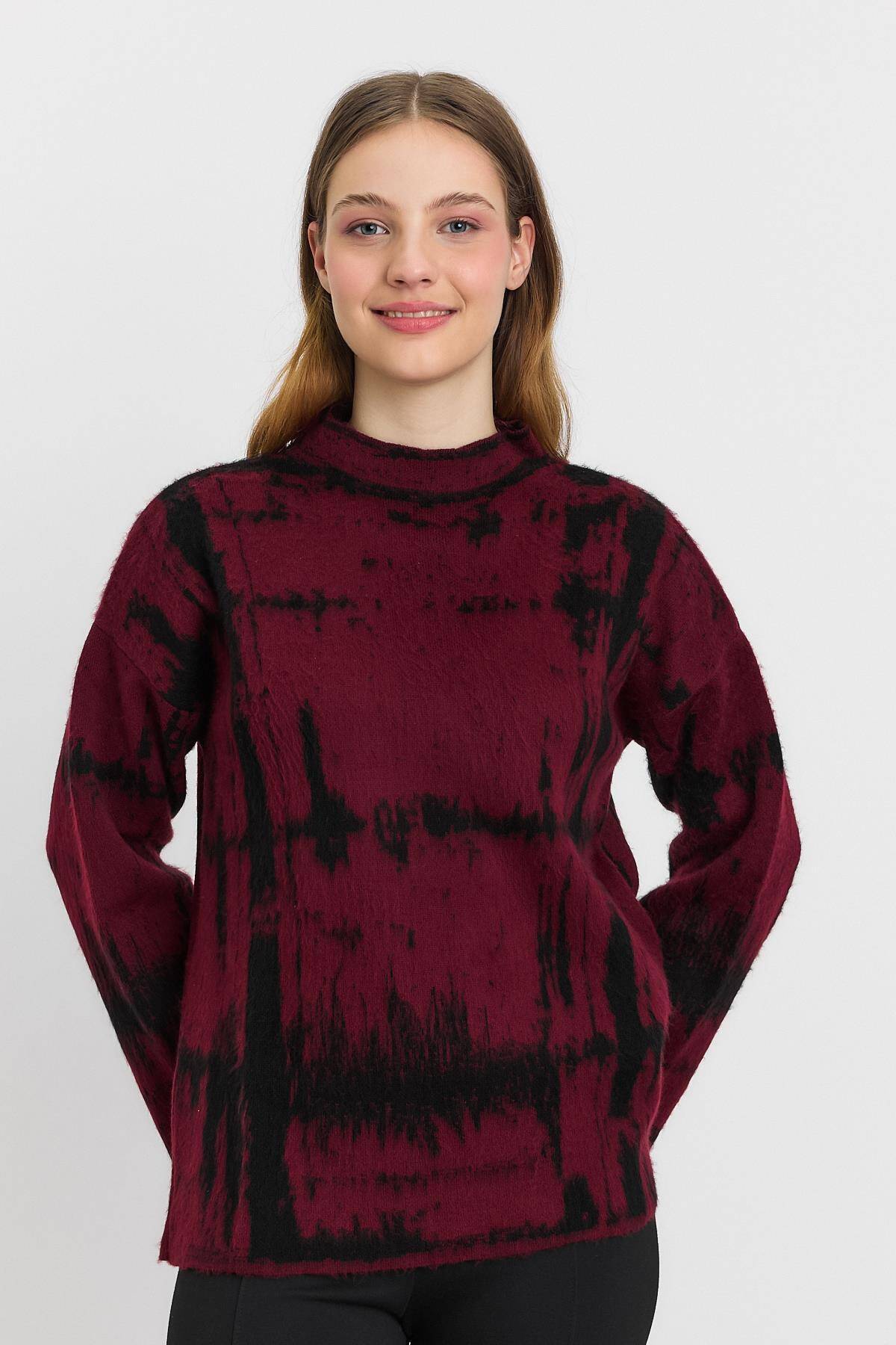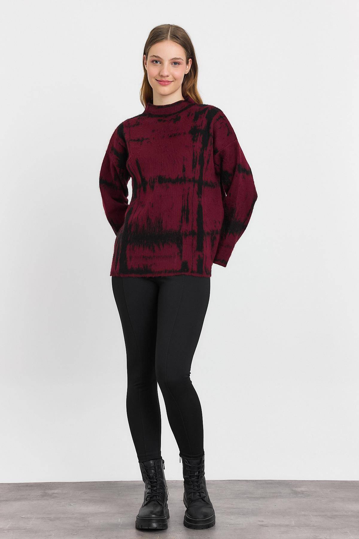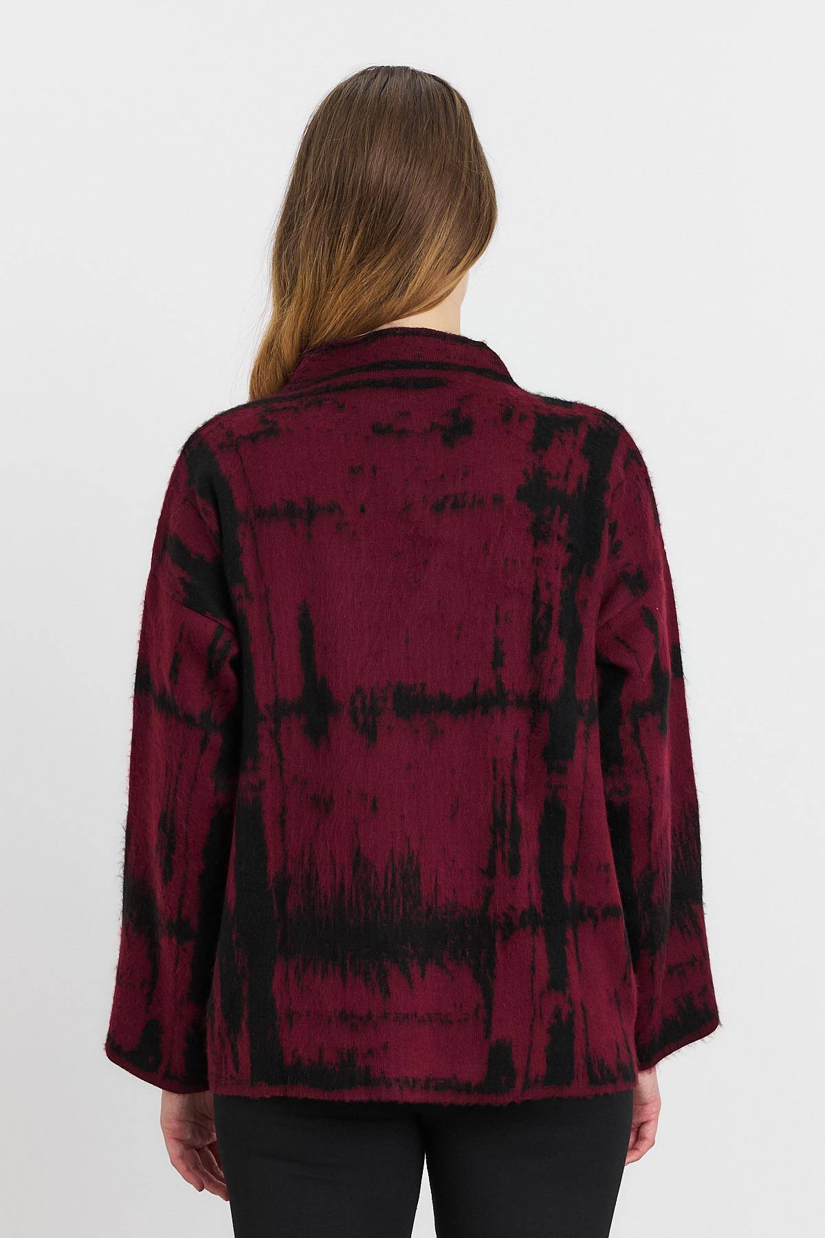 24378 Yarım Boğaz Şardonlu Kazak Bordo-Siyah