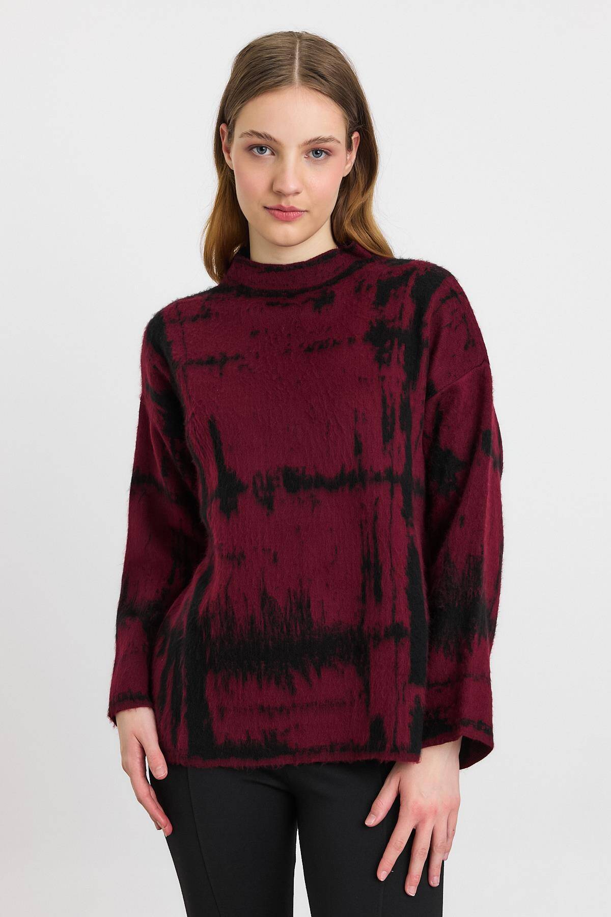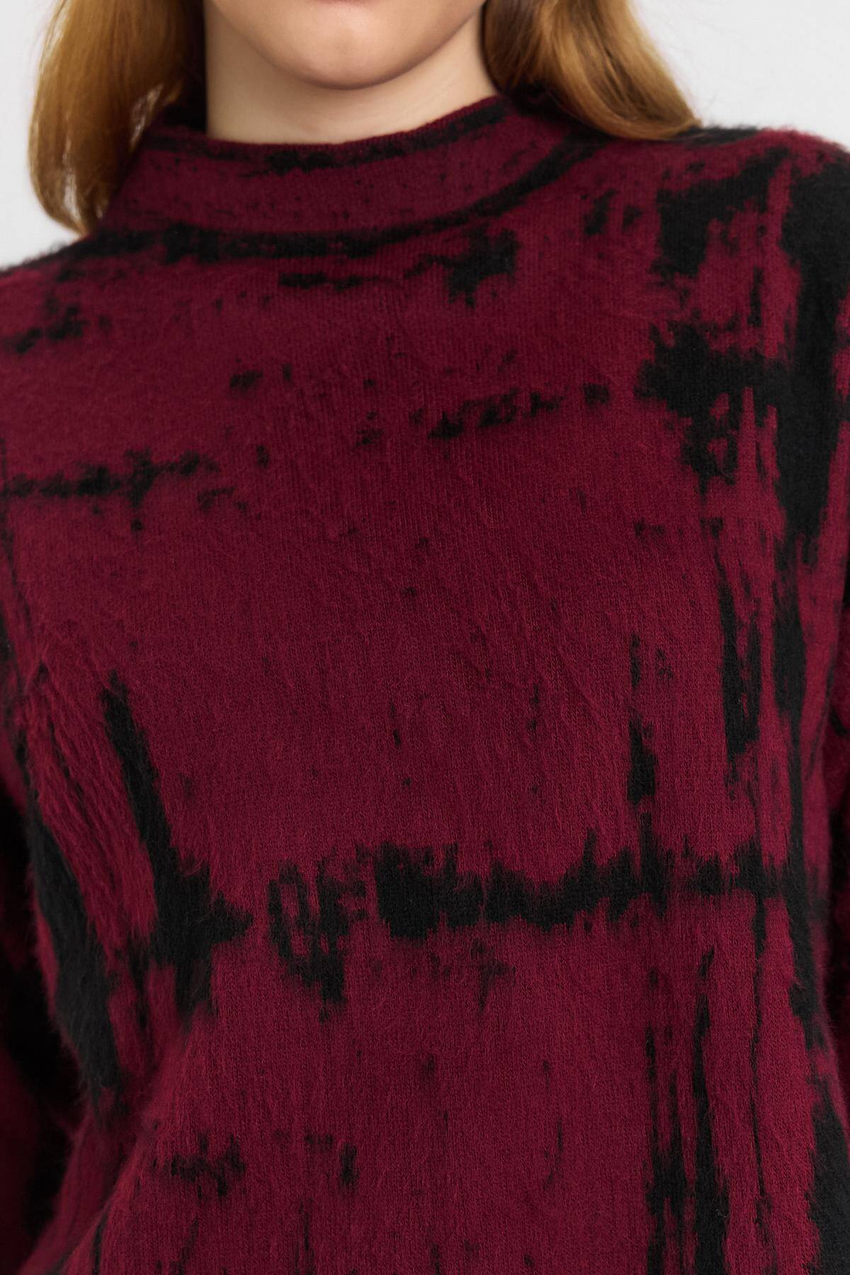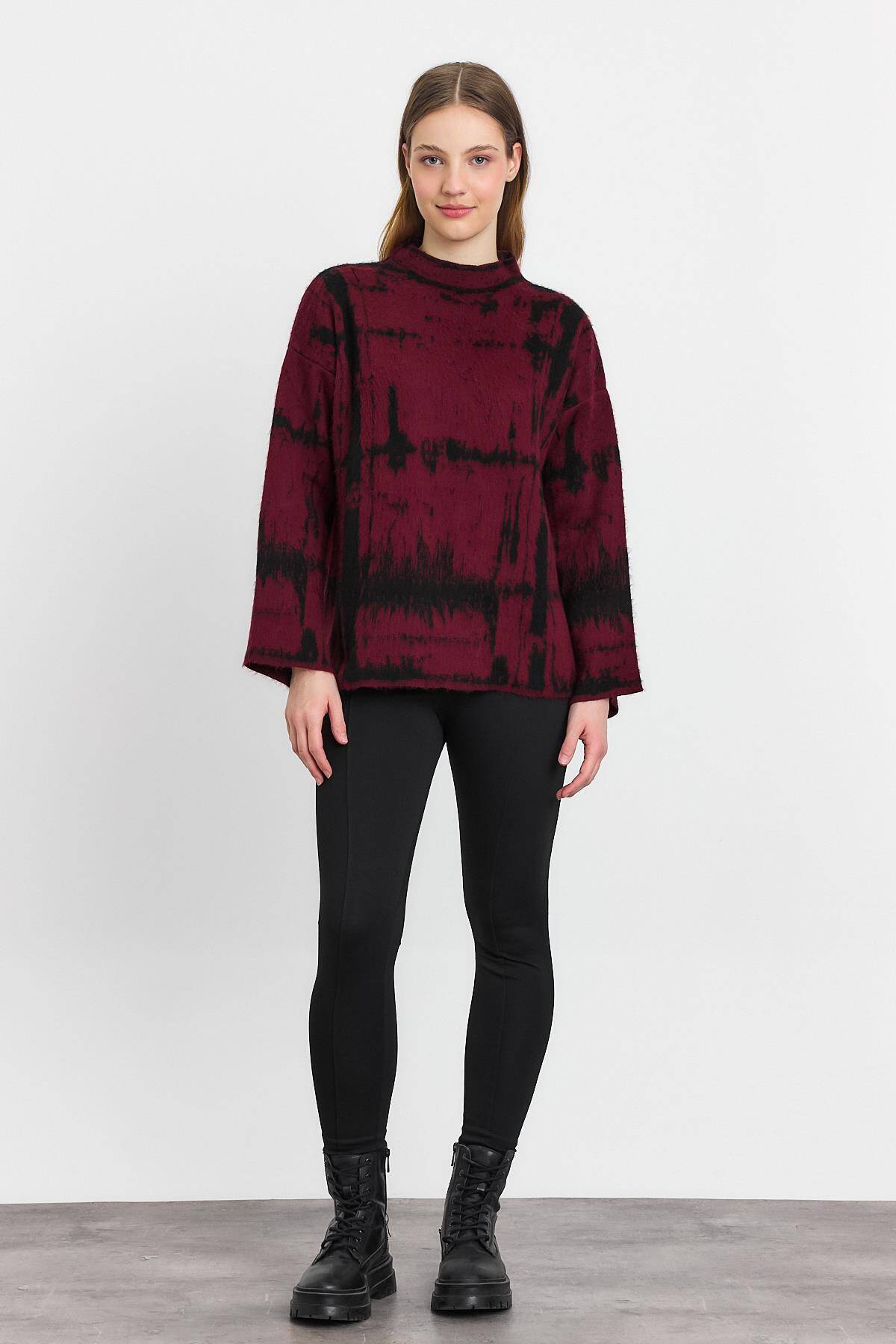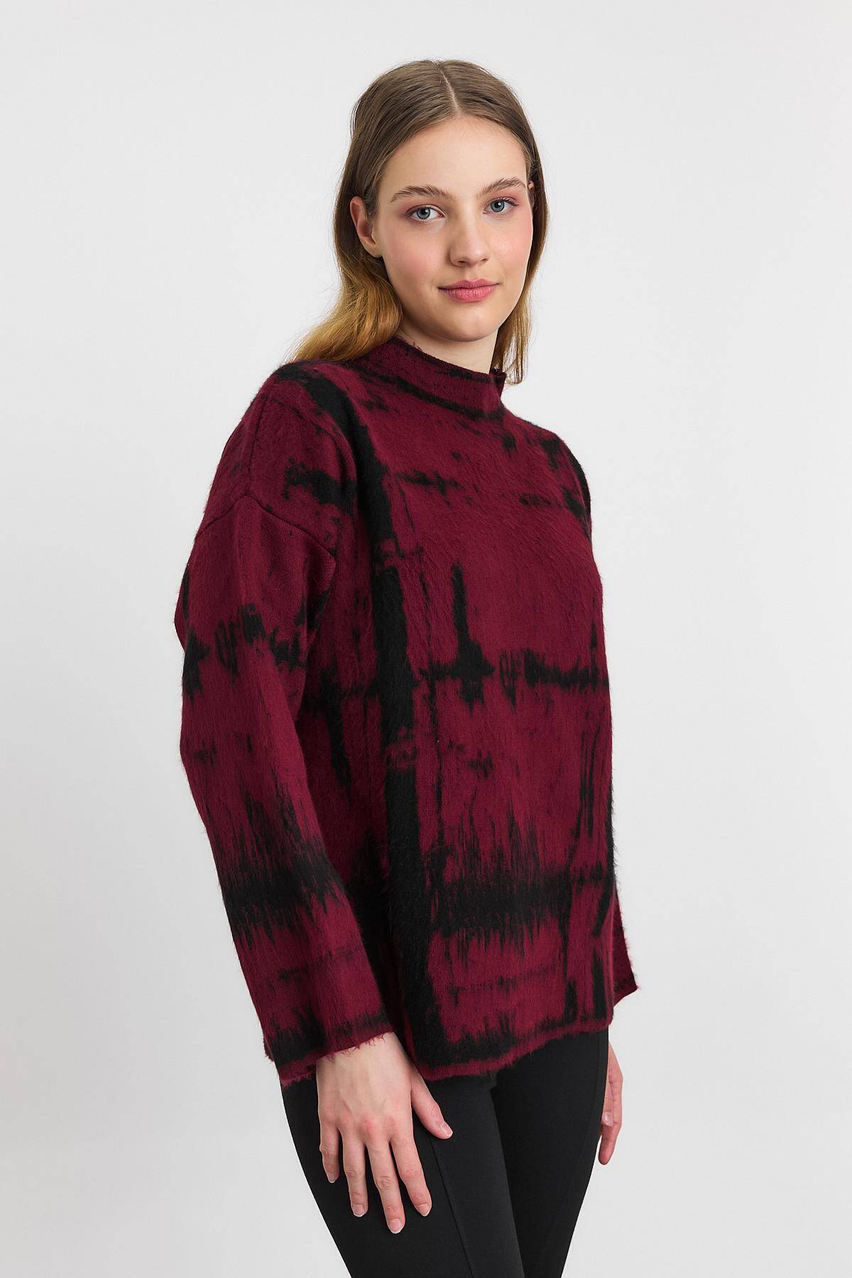 24378 Yarım Boğaz Şardonlu Kazak Bordo-Siyah
