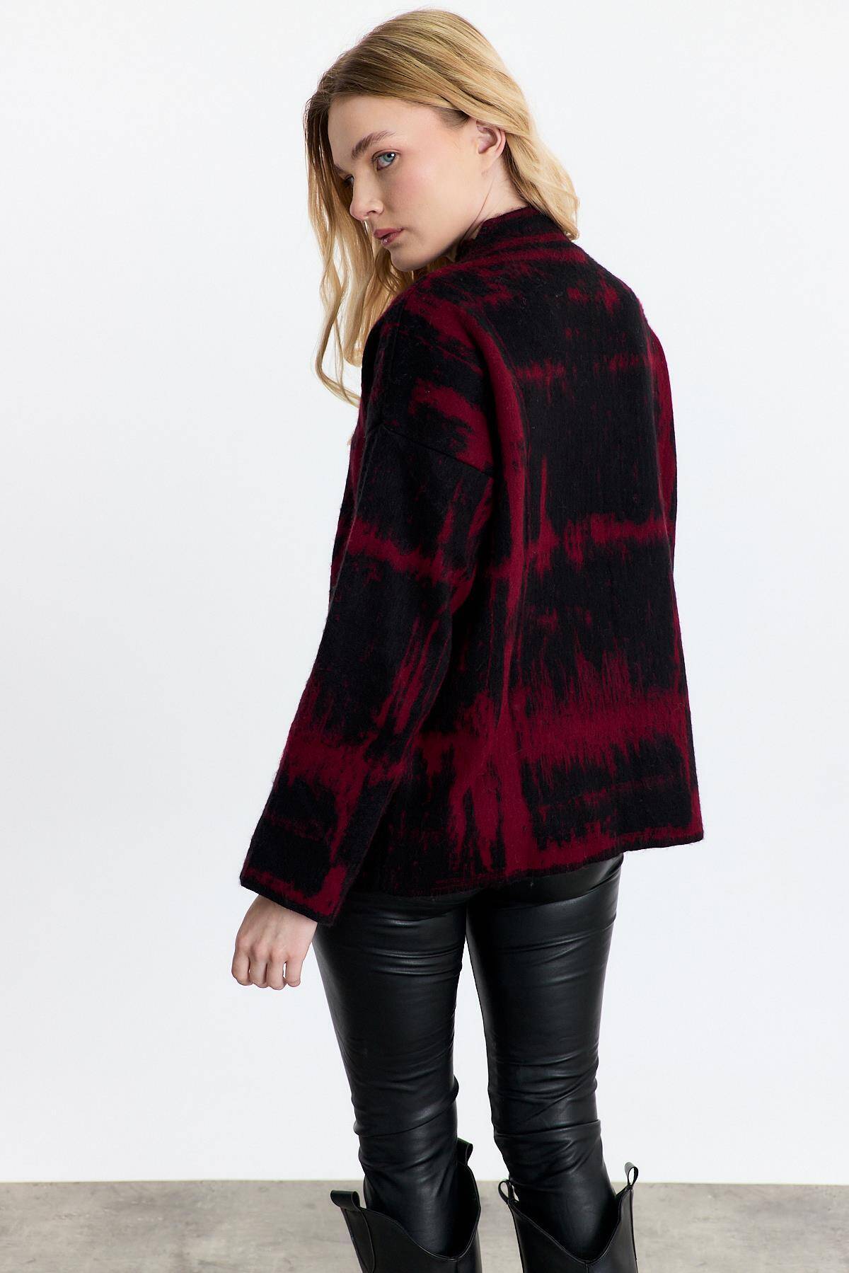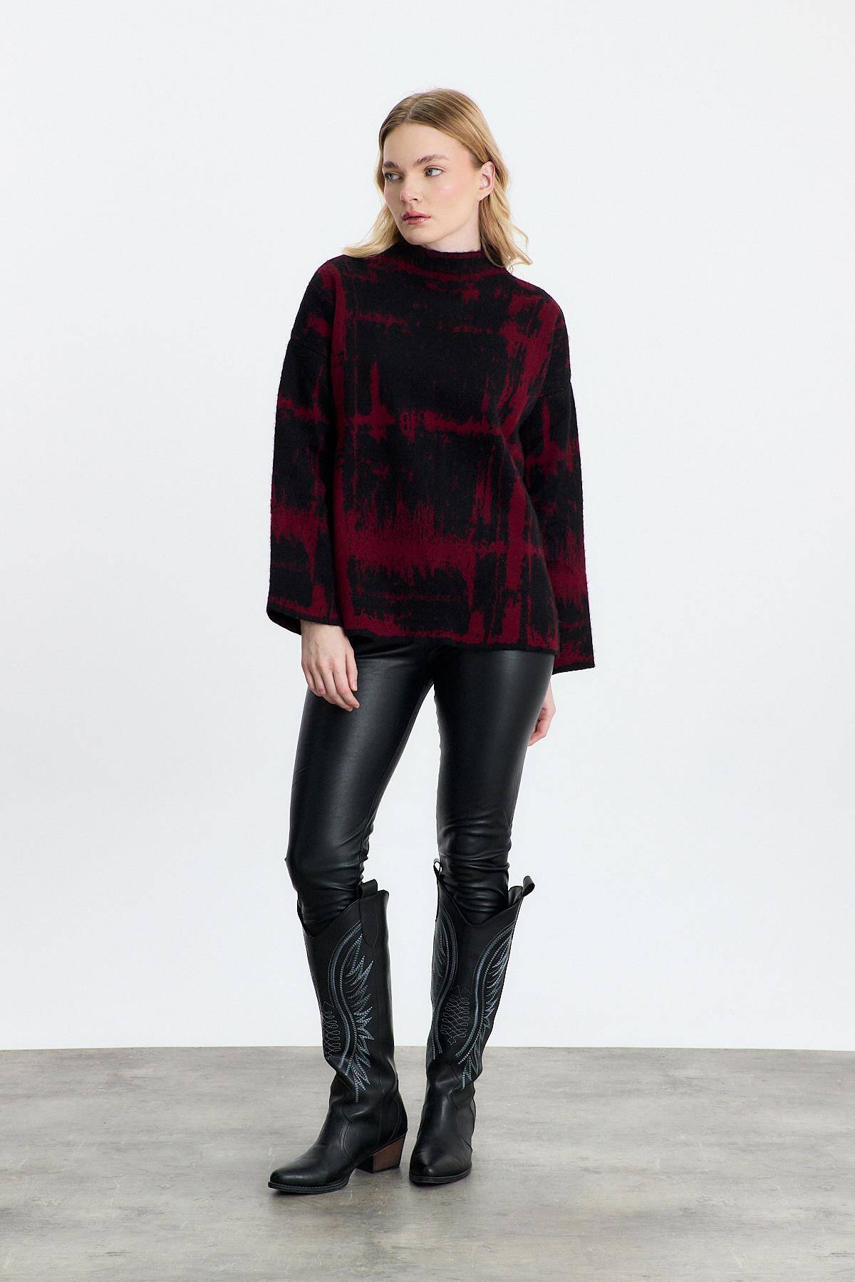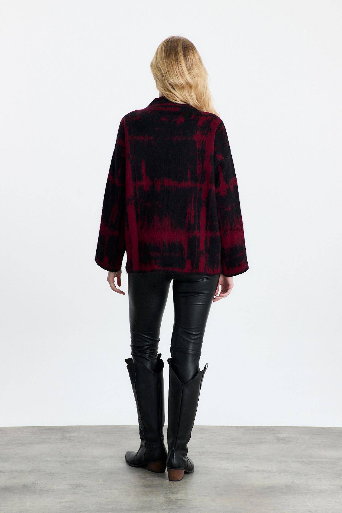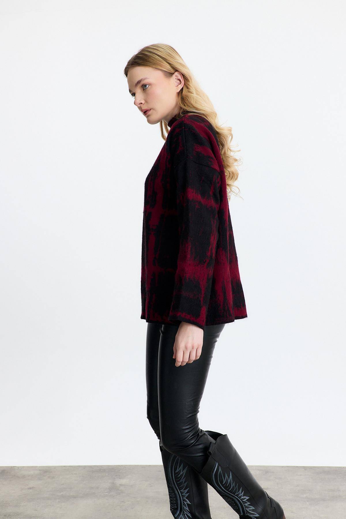 24378 Yarım Boğaz Şardonlu Kazak Siyah-Bordo