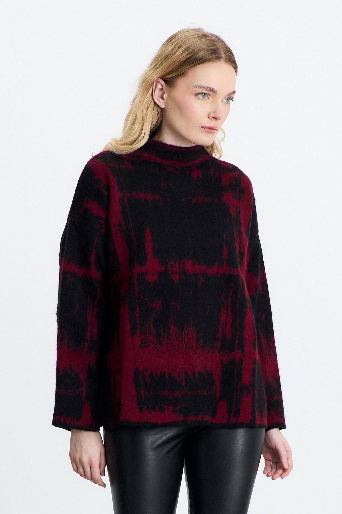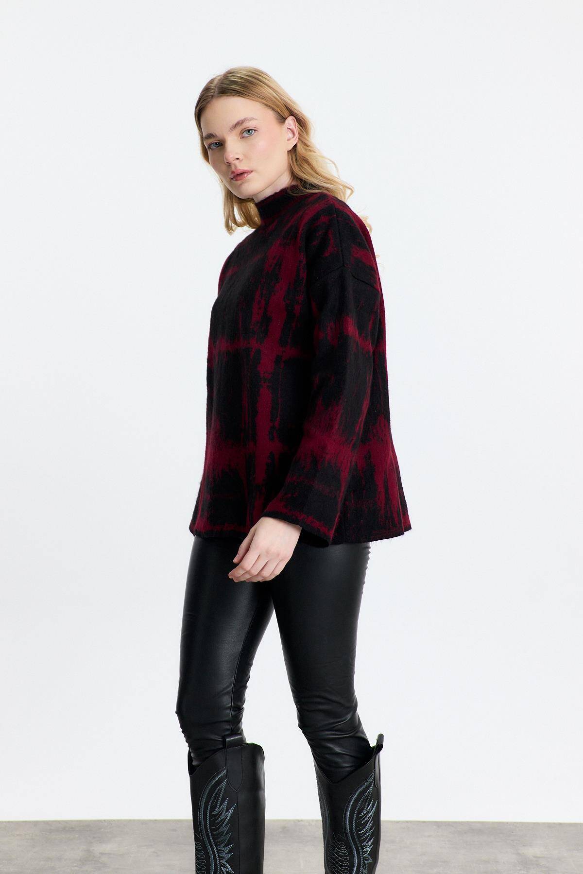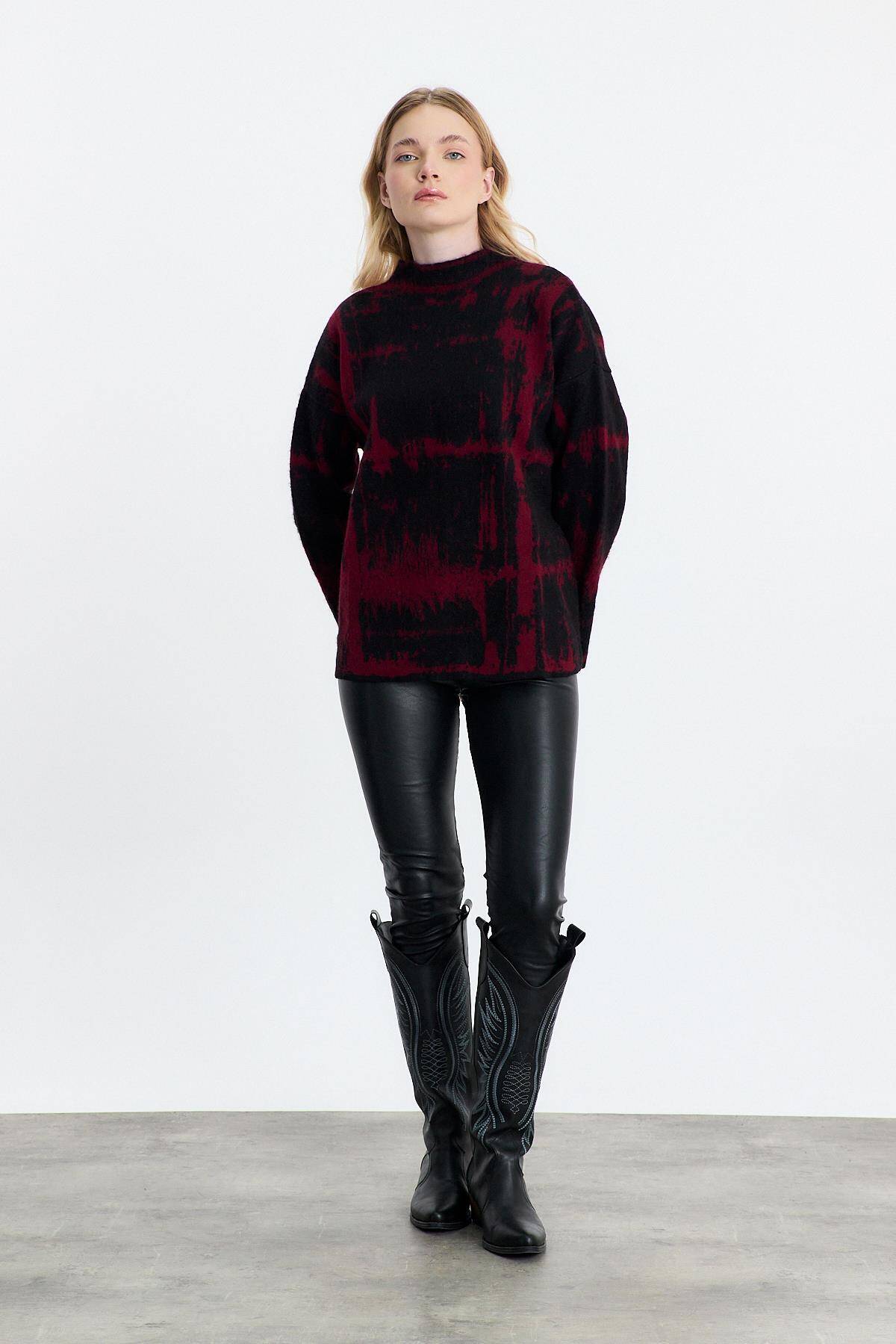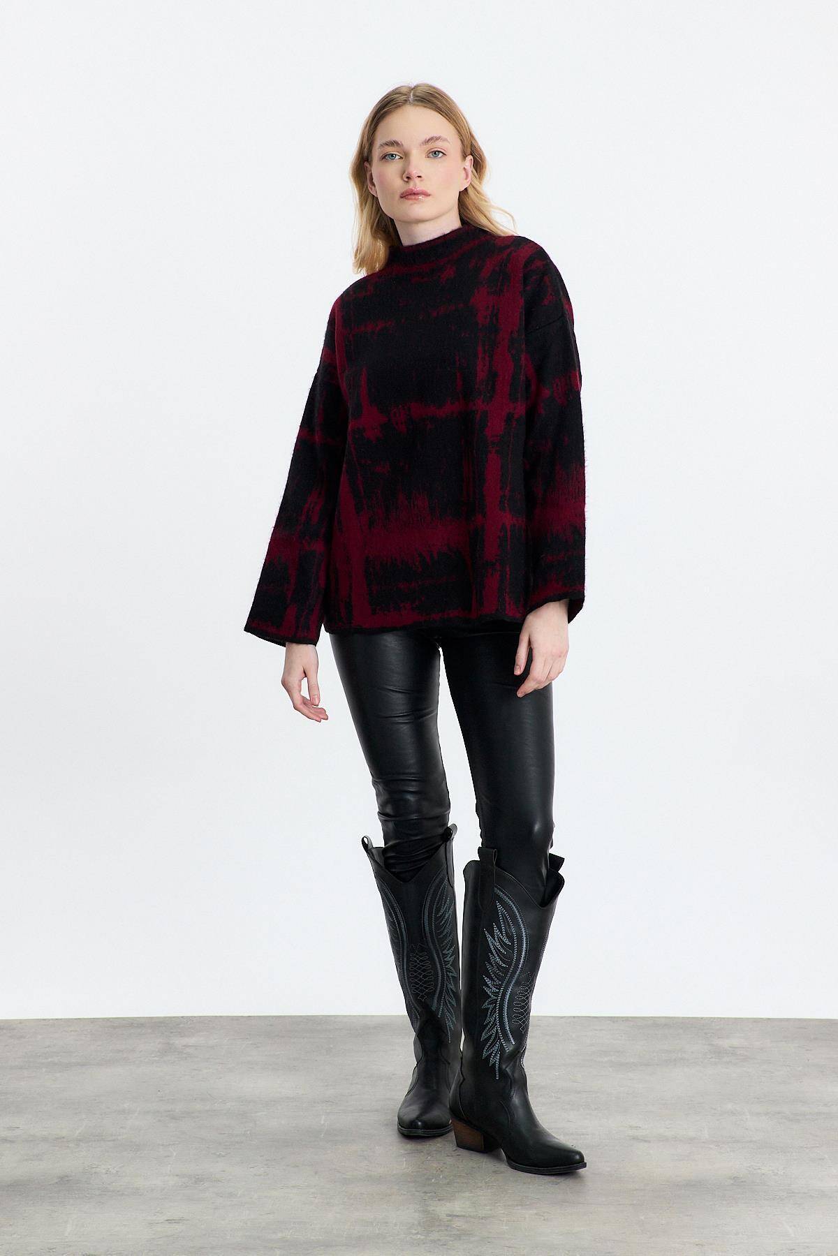 24378 Yarım Boğaz Şardonlu Kazak Siyah-Bordo