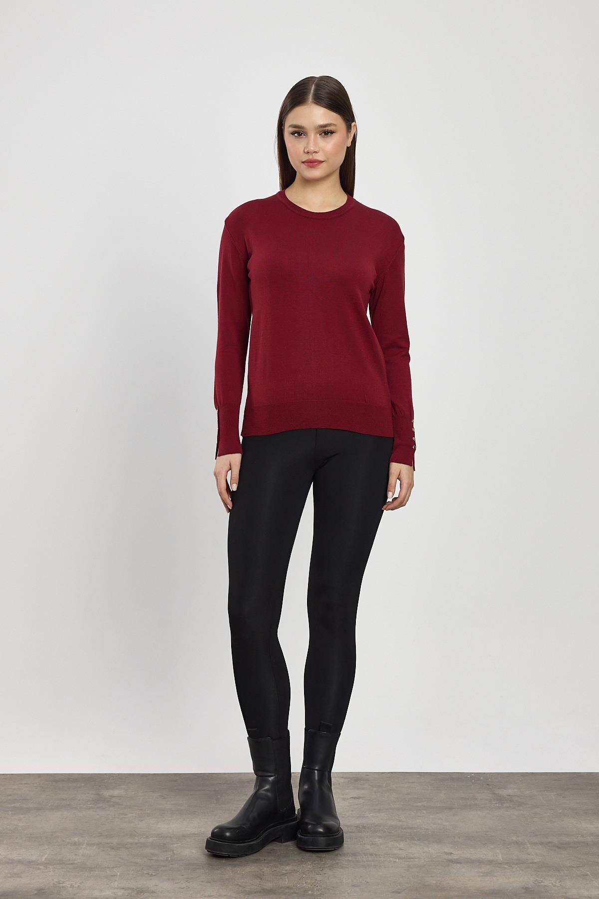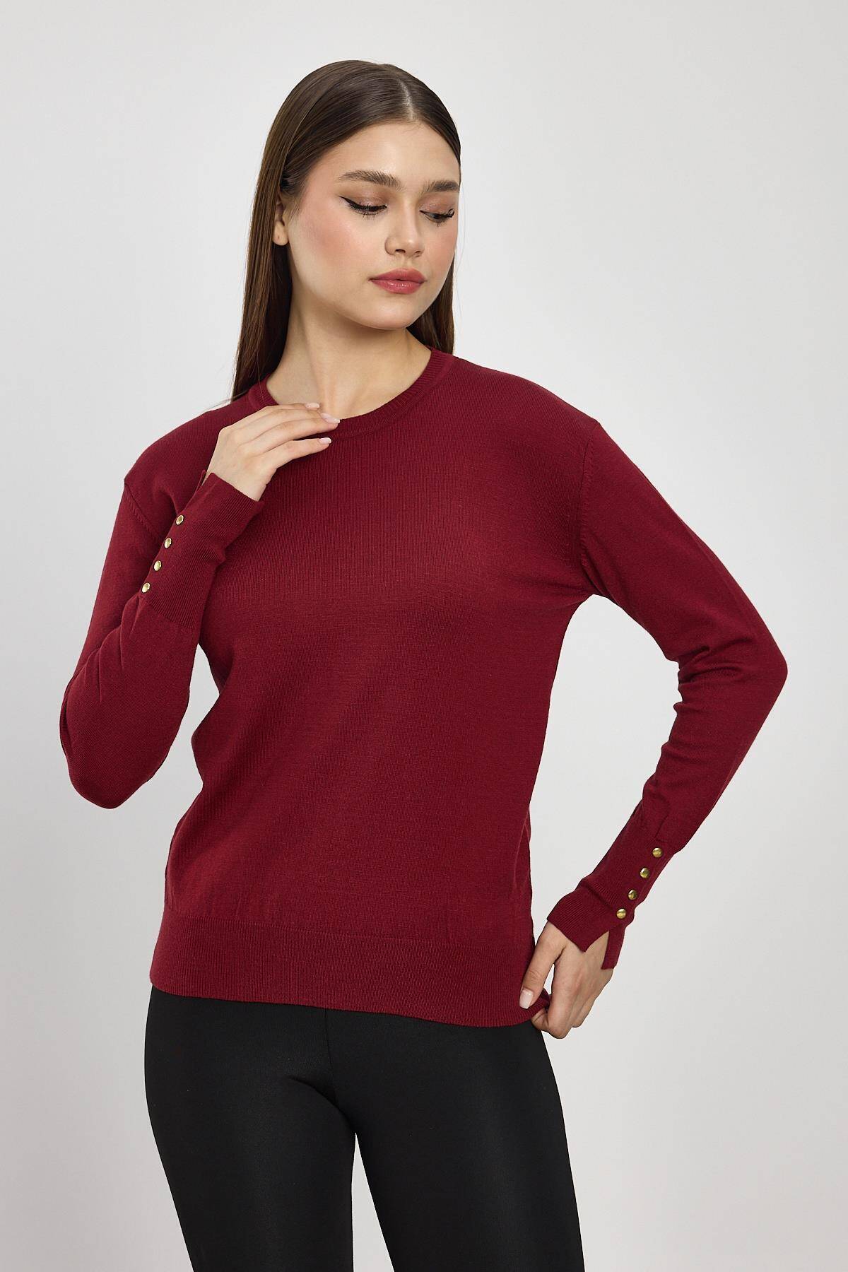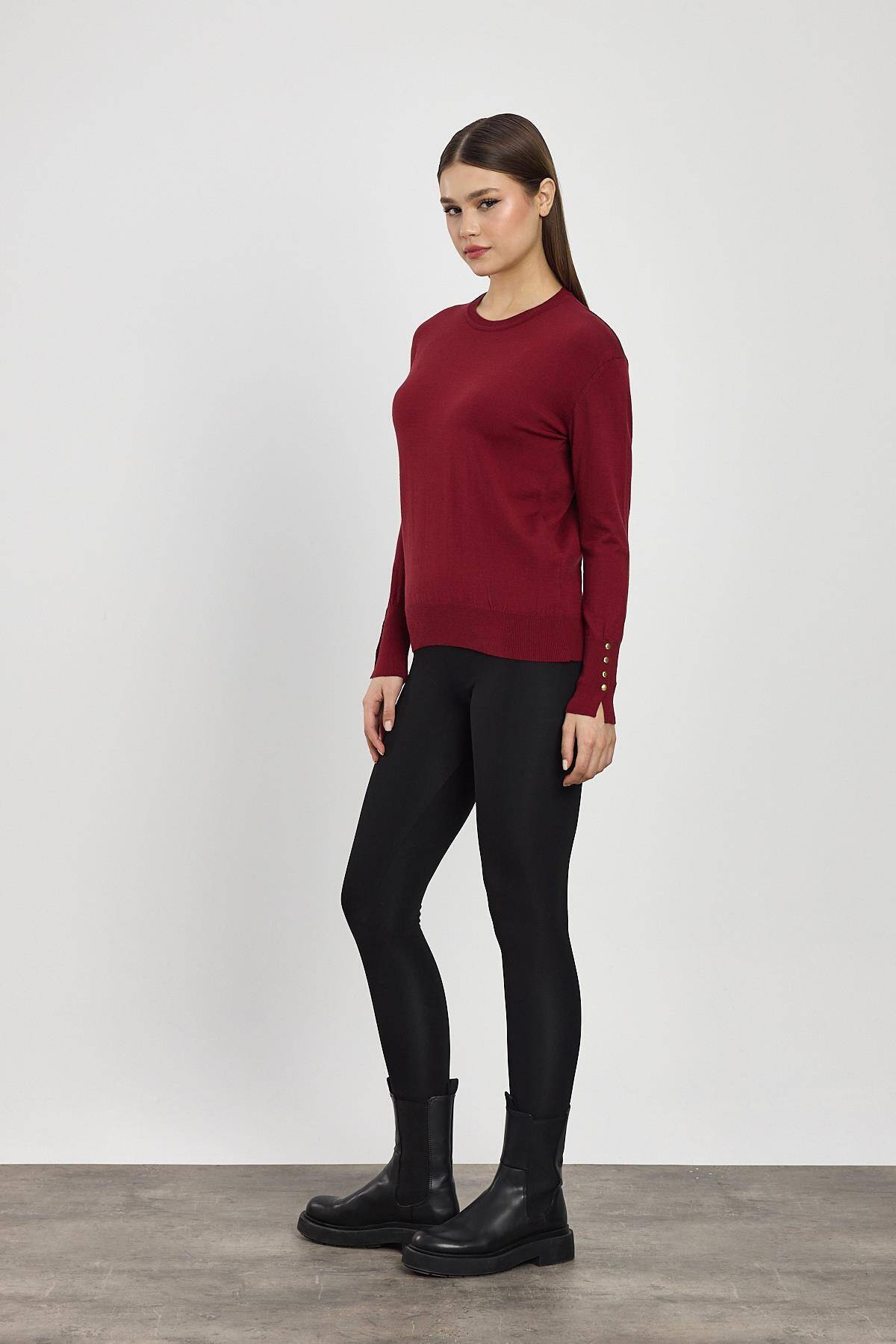 2455 Kol Yırtmaç Detay Kazak Bordo