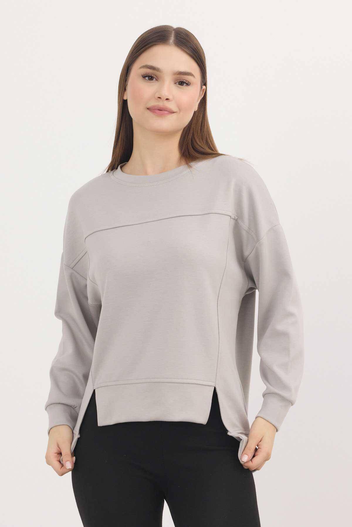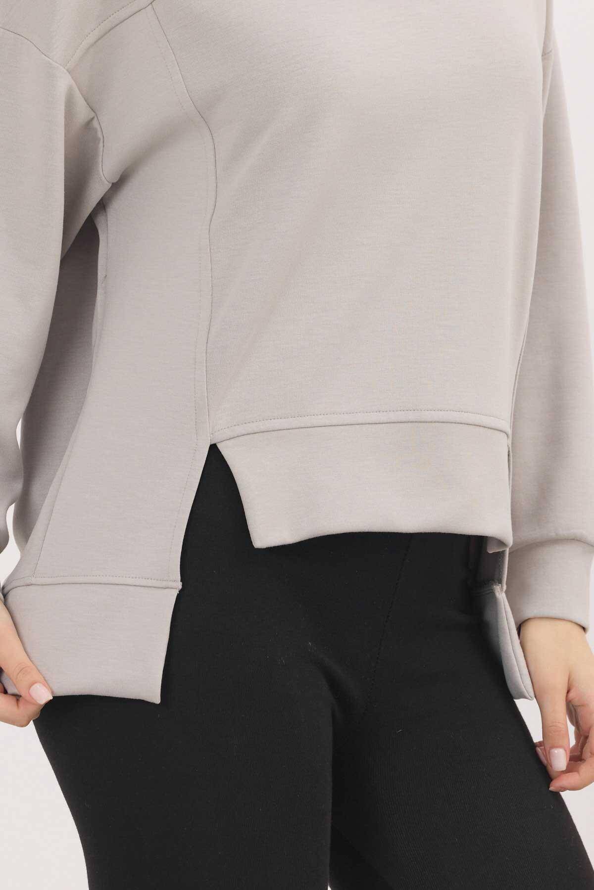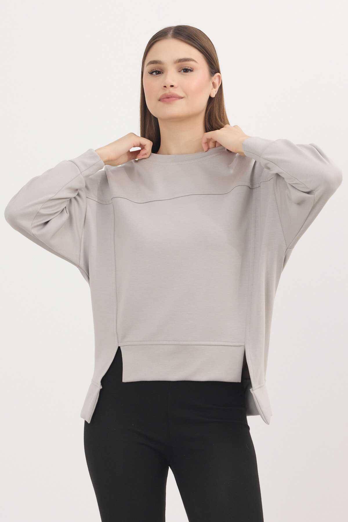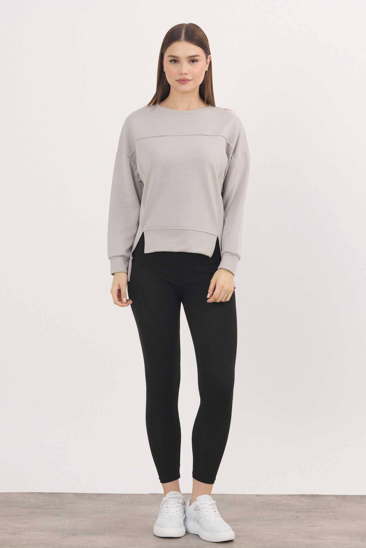 3000 Bisiklet Yaka Parçalı Sweat Açık Gri