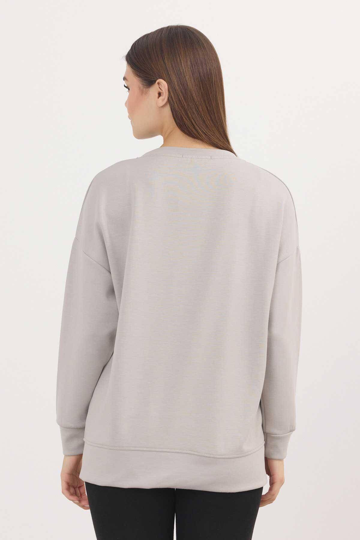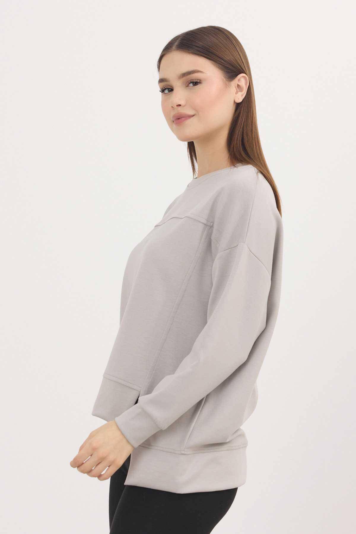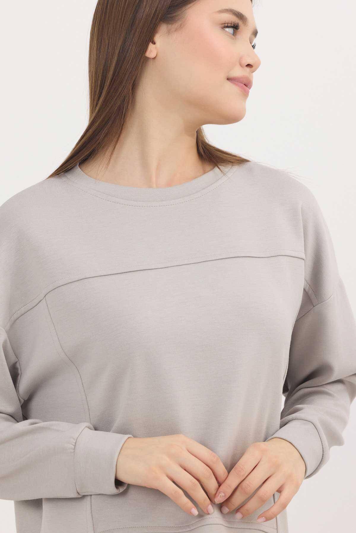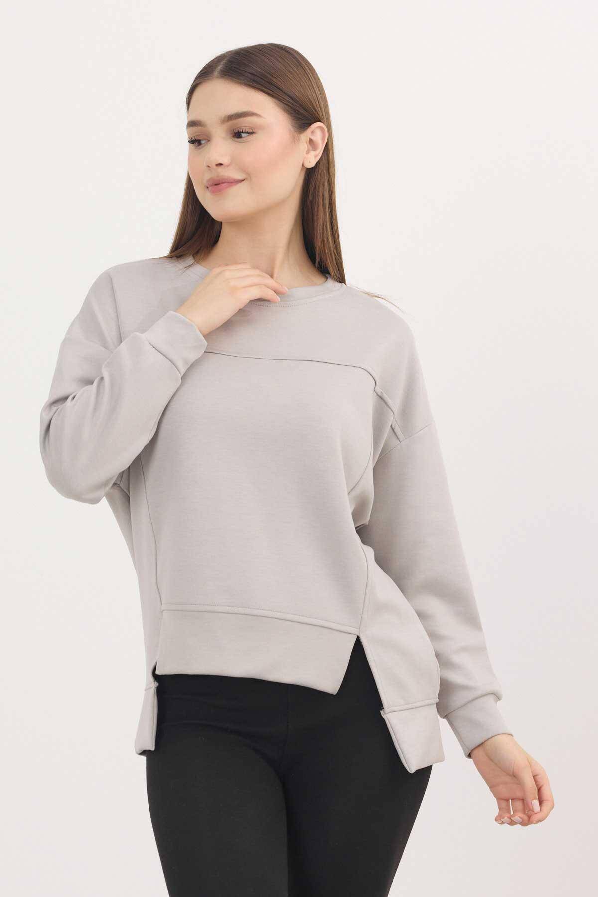 3000 Bisiklet Yaka Parçalı Sweat Açık Gri