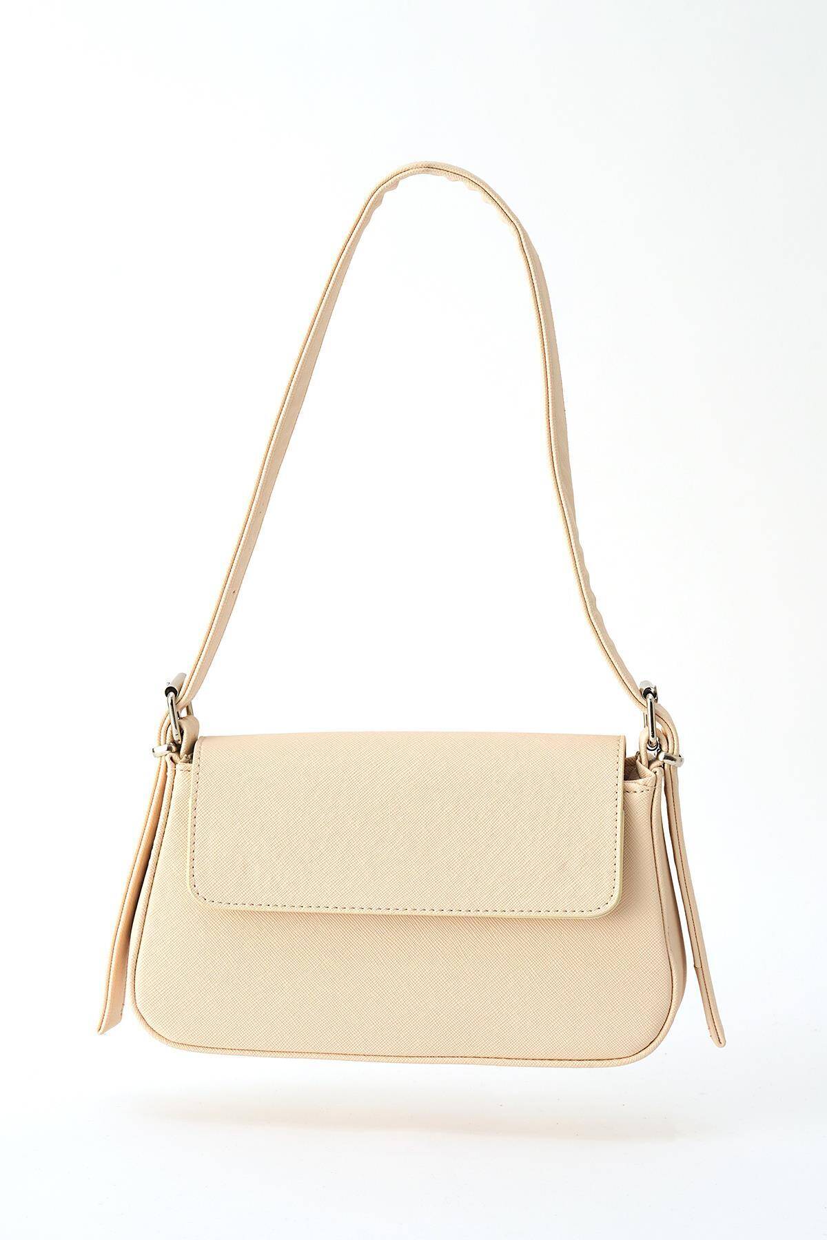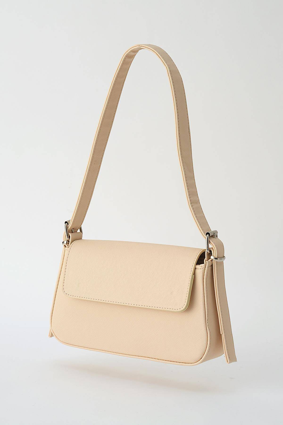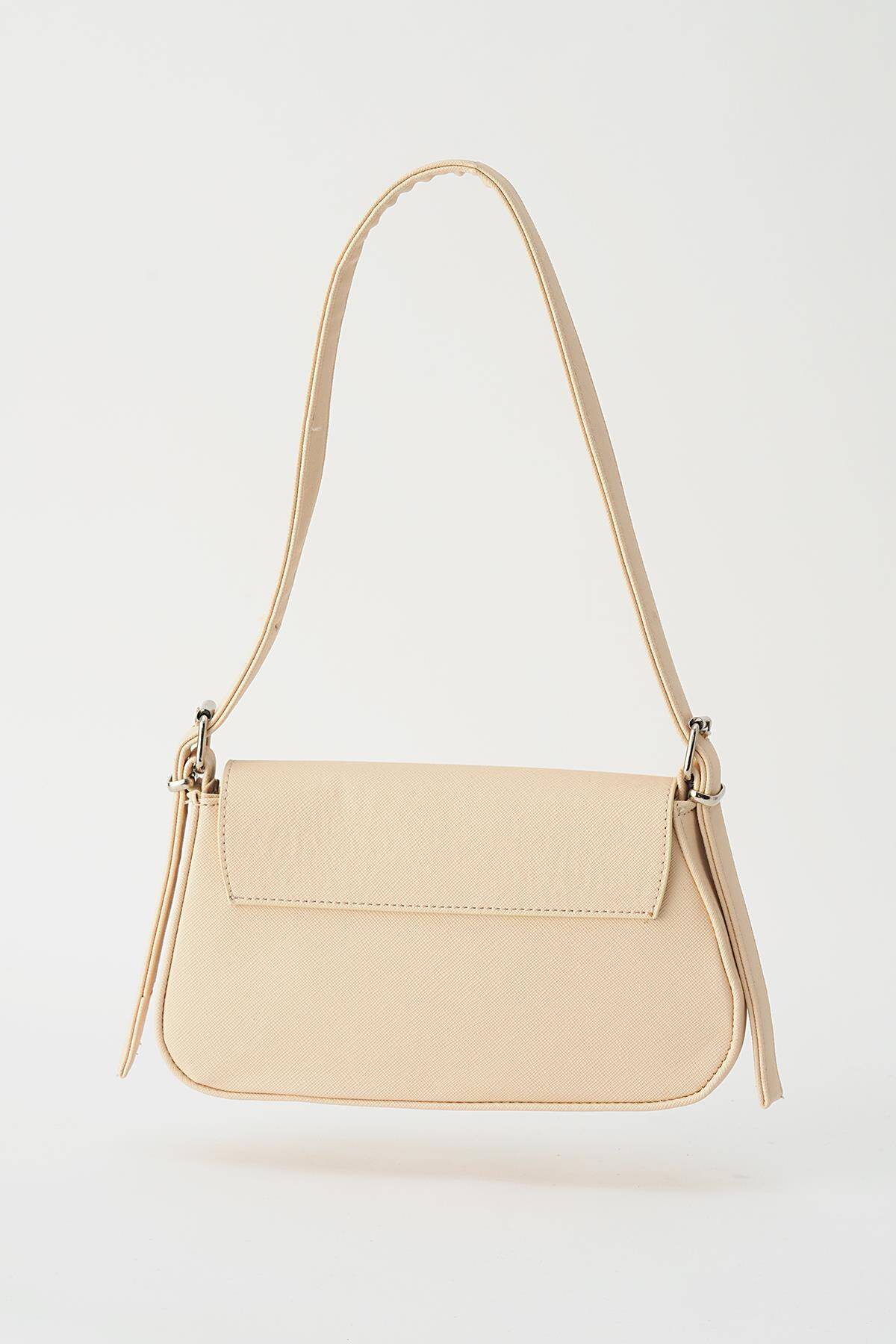 3005 Kapak Detay Omuz Çantası Krem