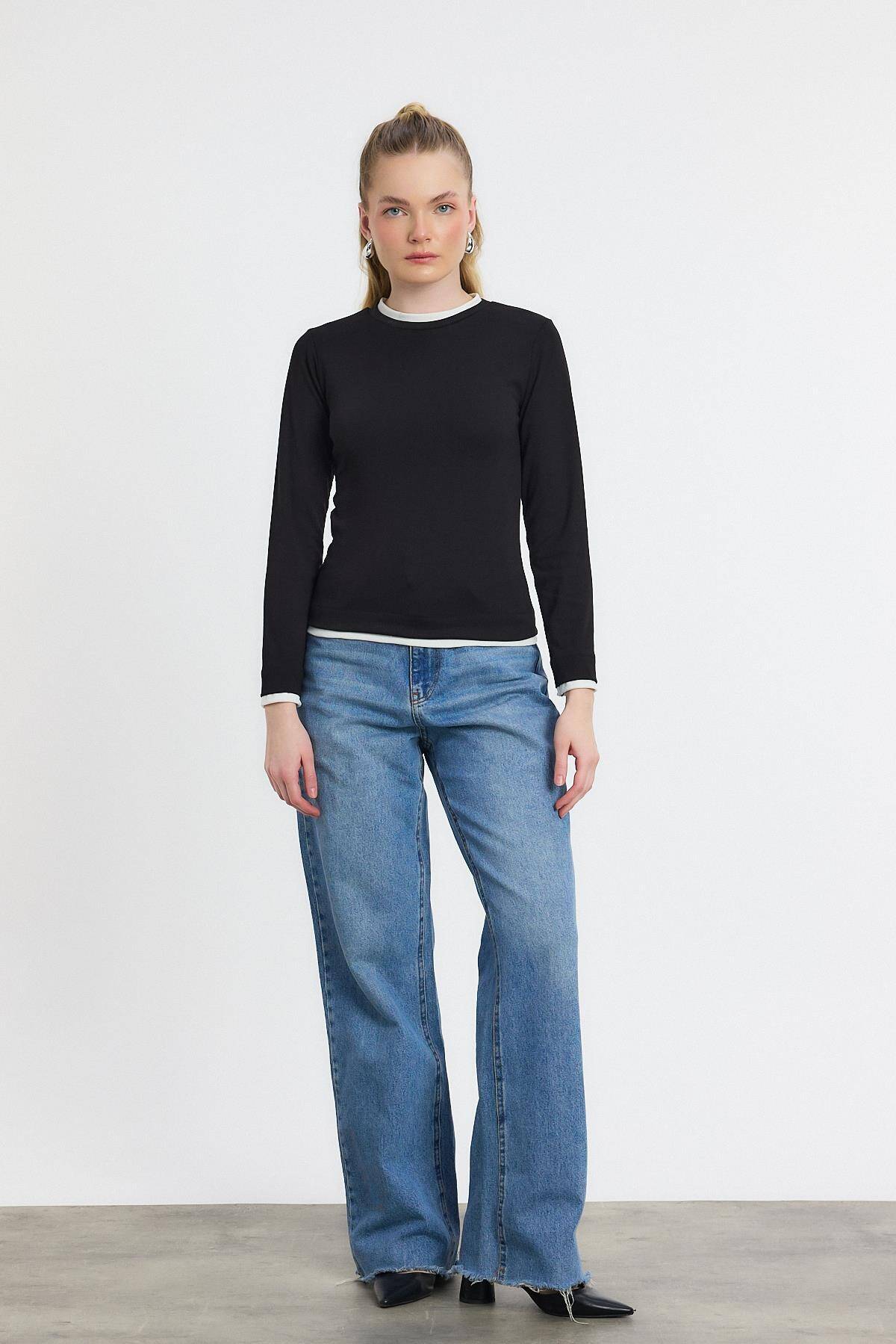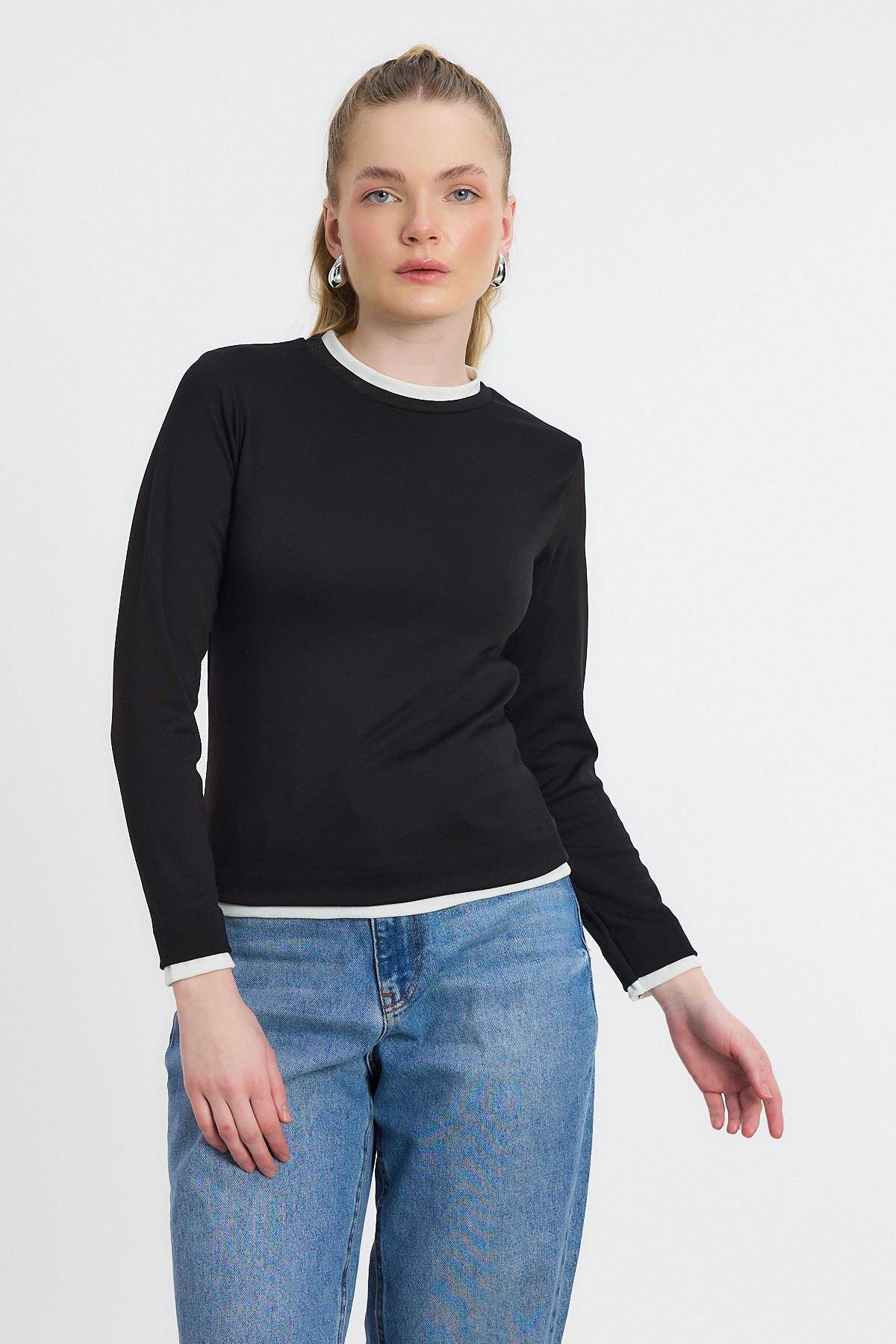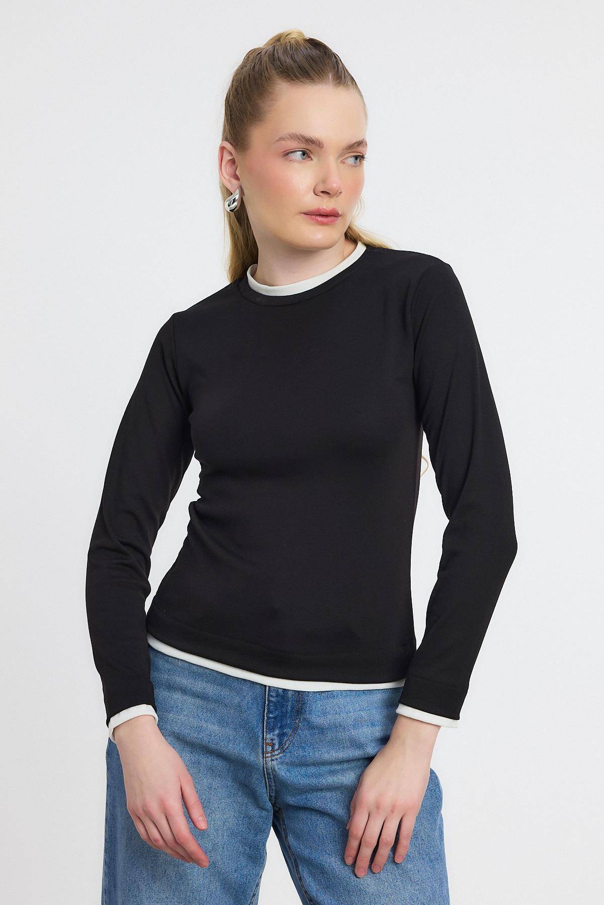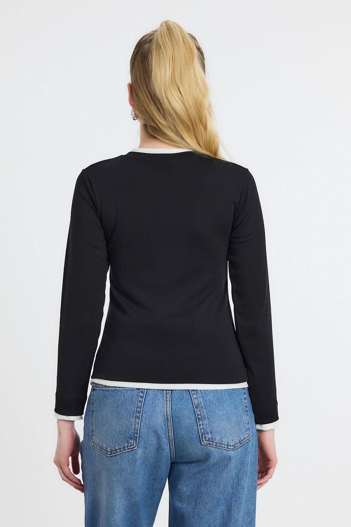 3011 Ribana Detay Uzun Kollu Bluz Siyah
