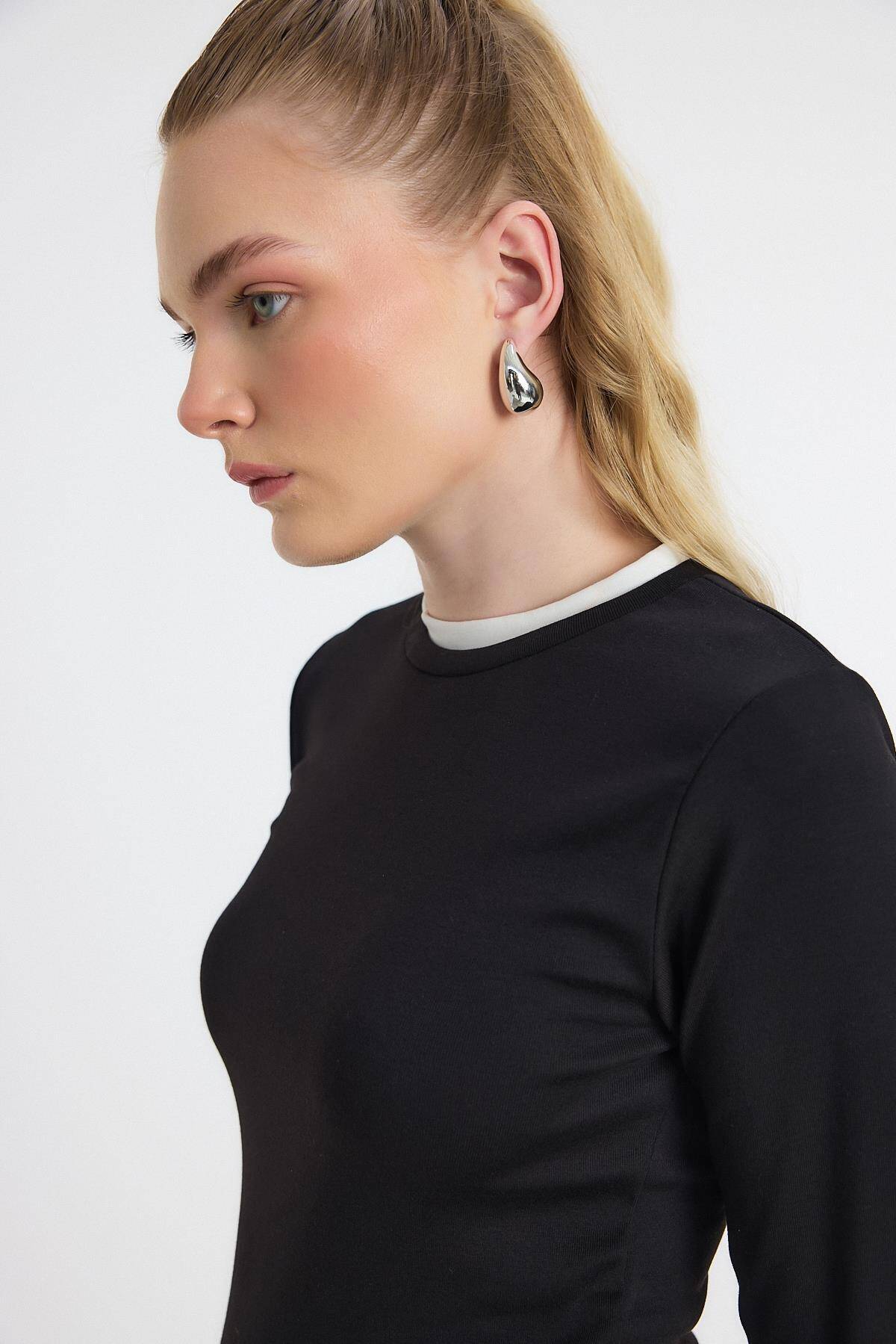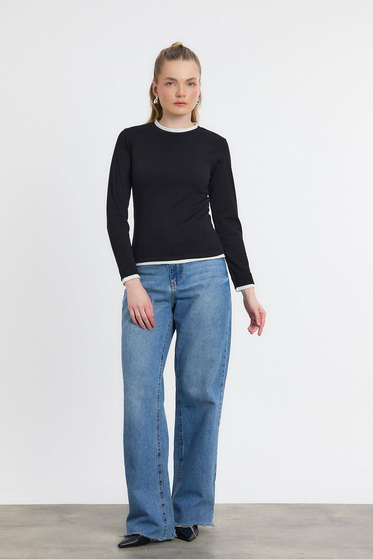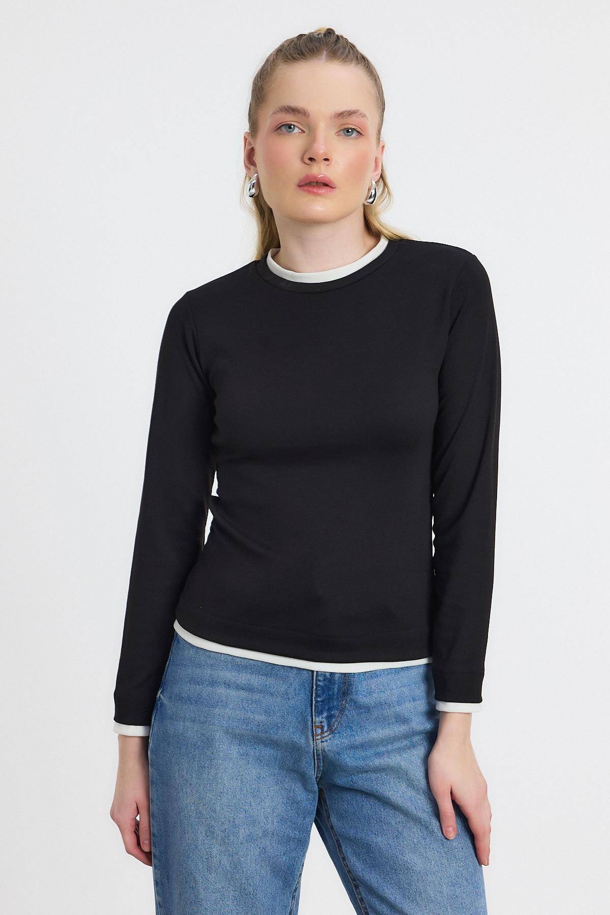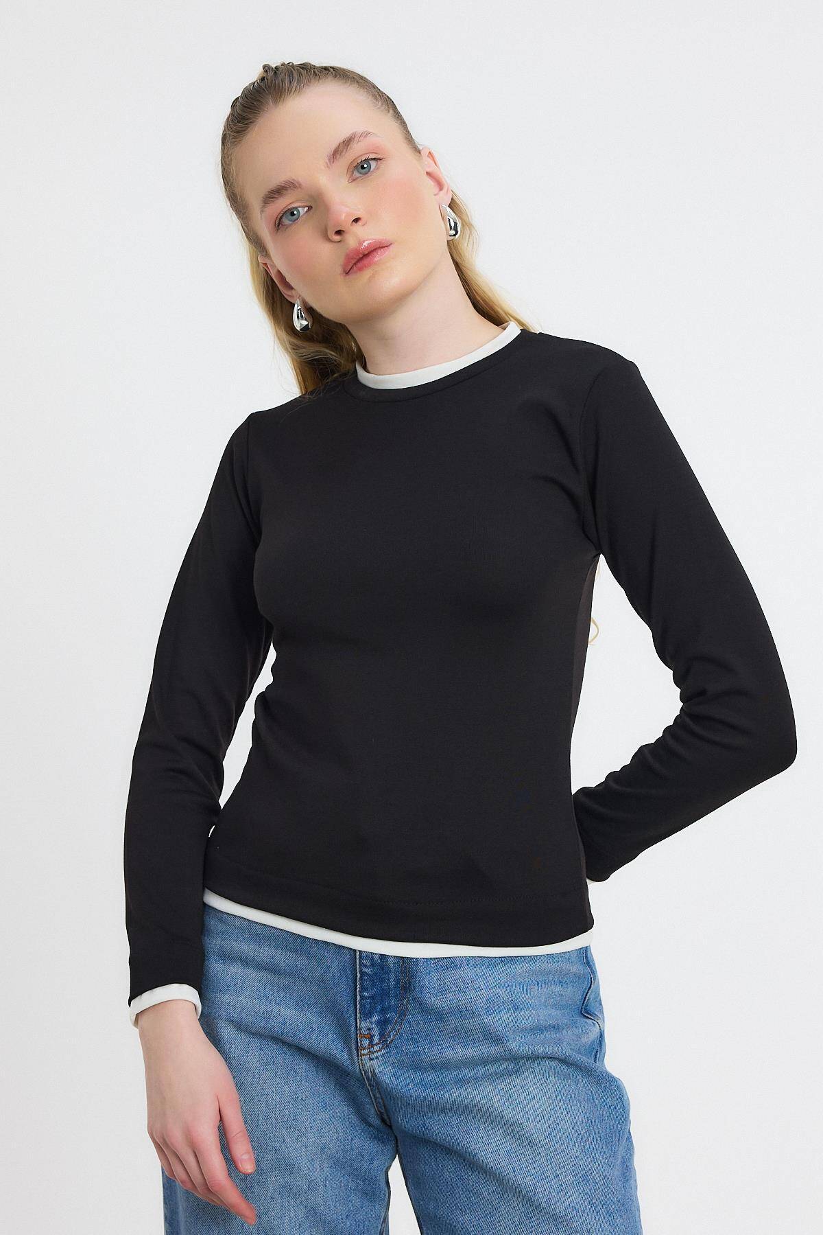 3011 Ribana Detay Uzun Kollu Bluz Siyah