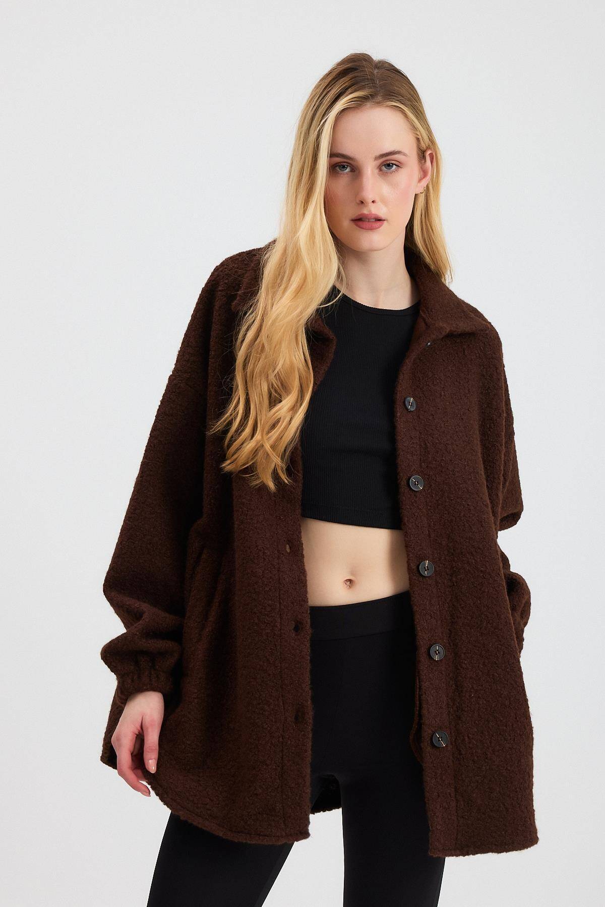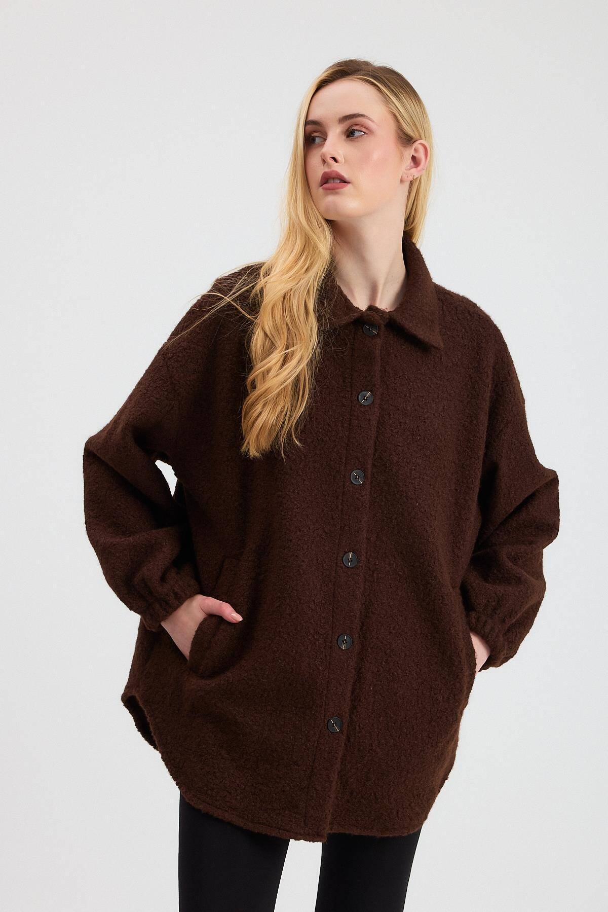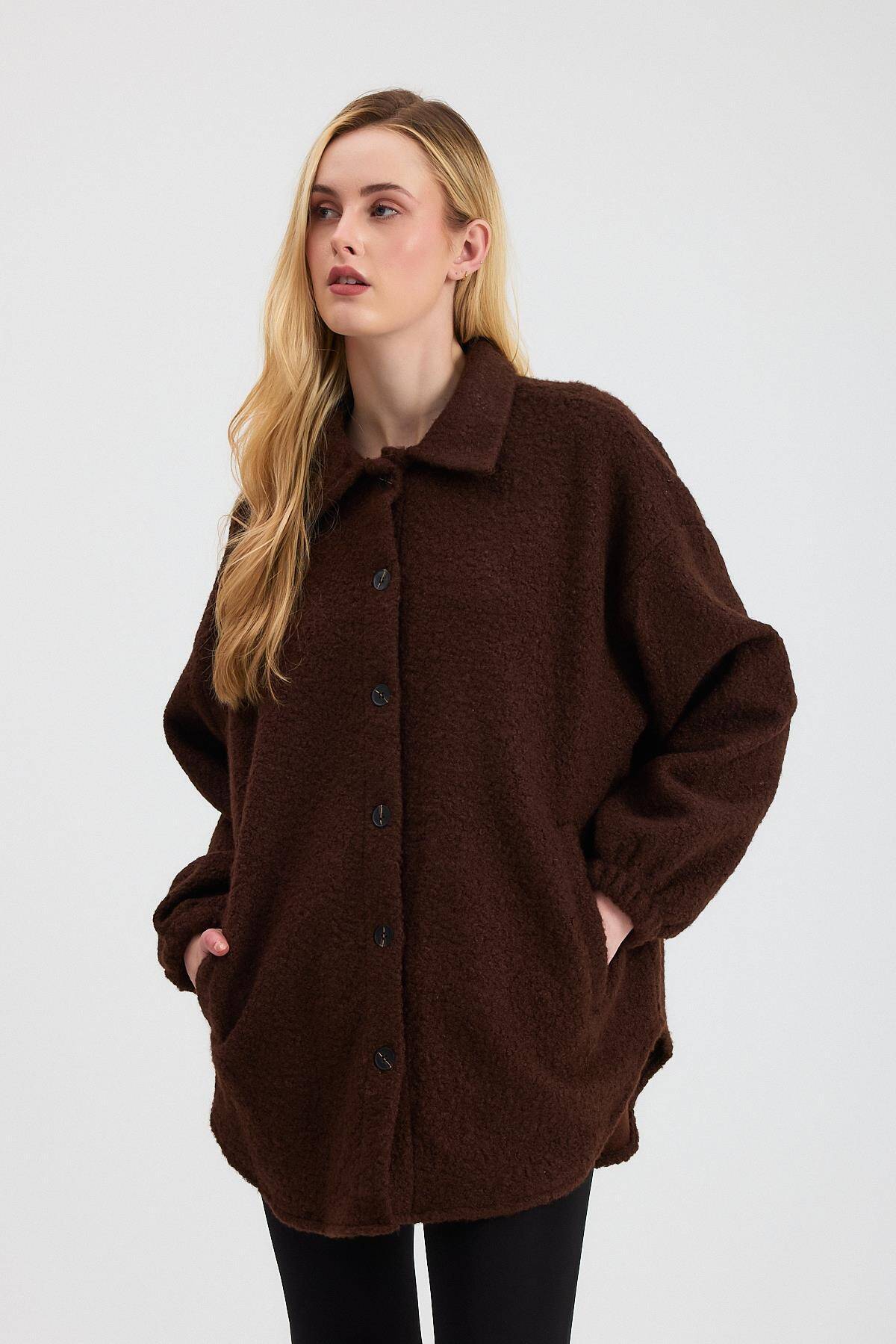 3014A Gömlek Yaka Düğmeli Ceket Kahve
