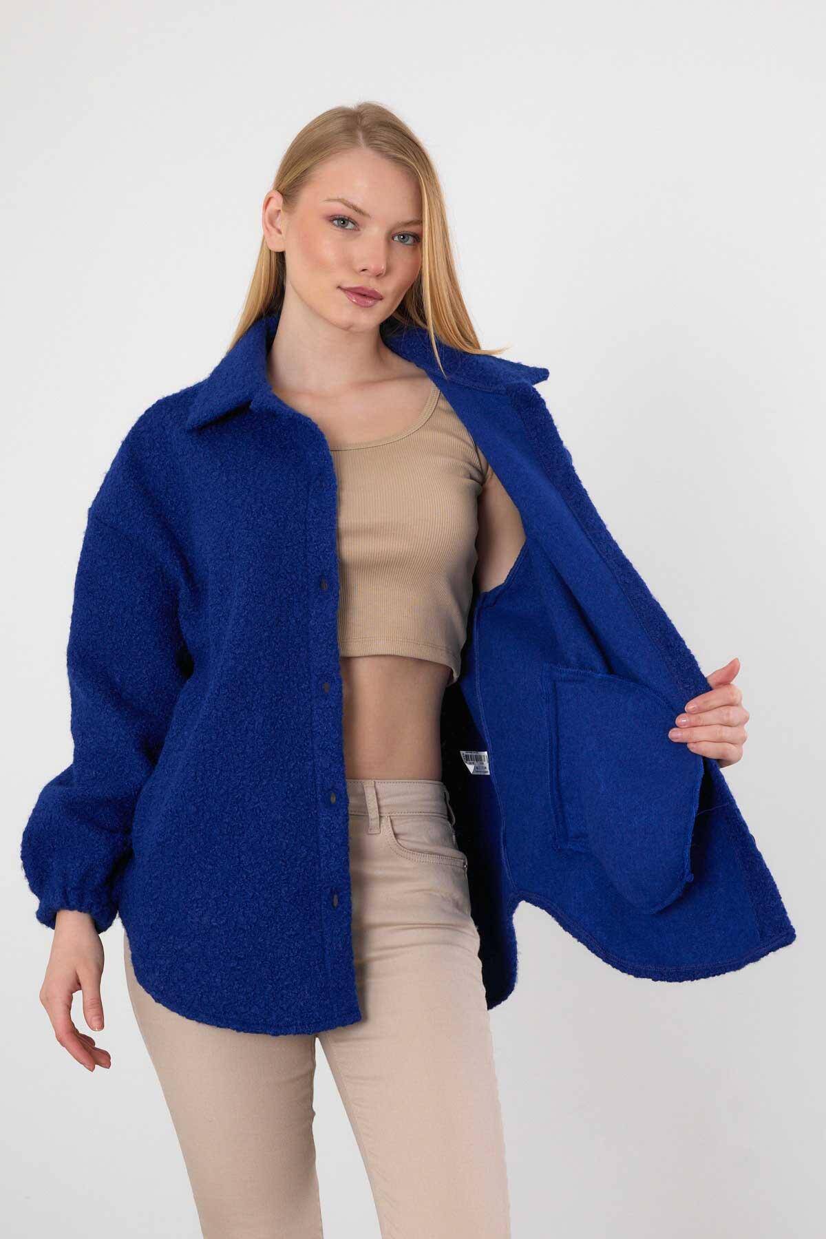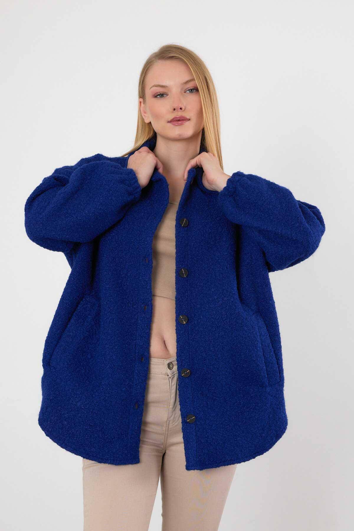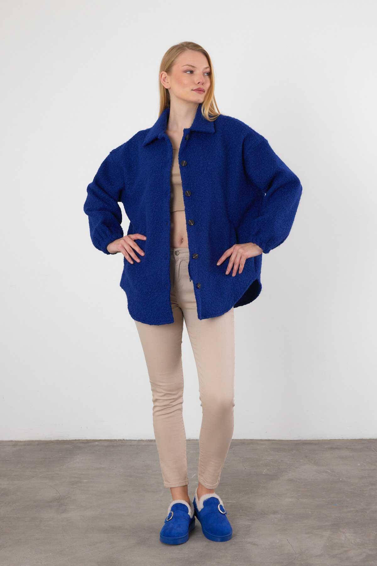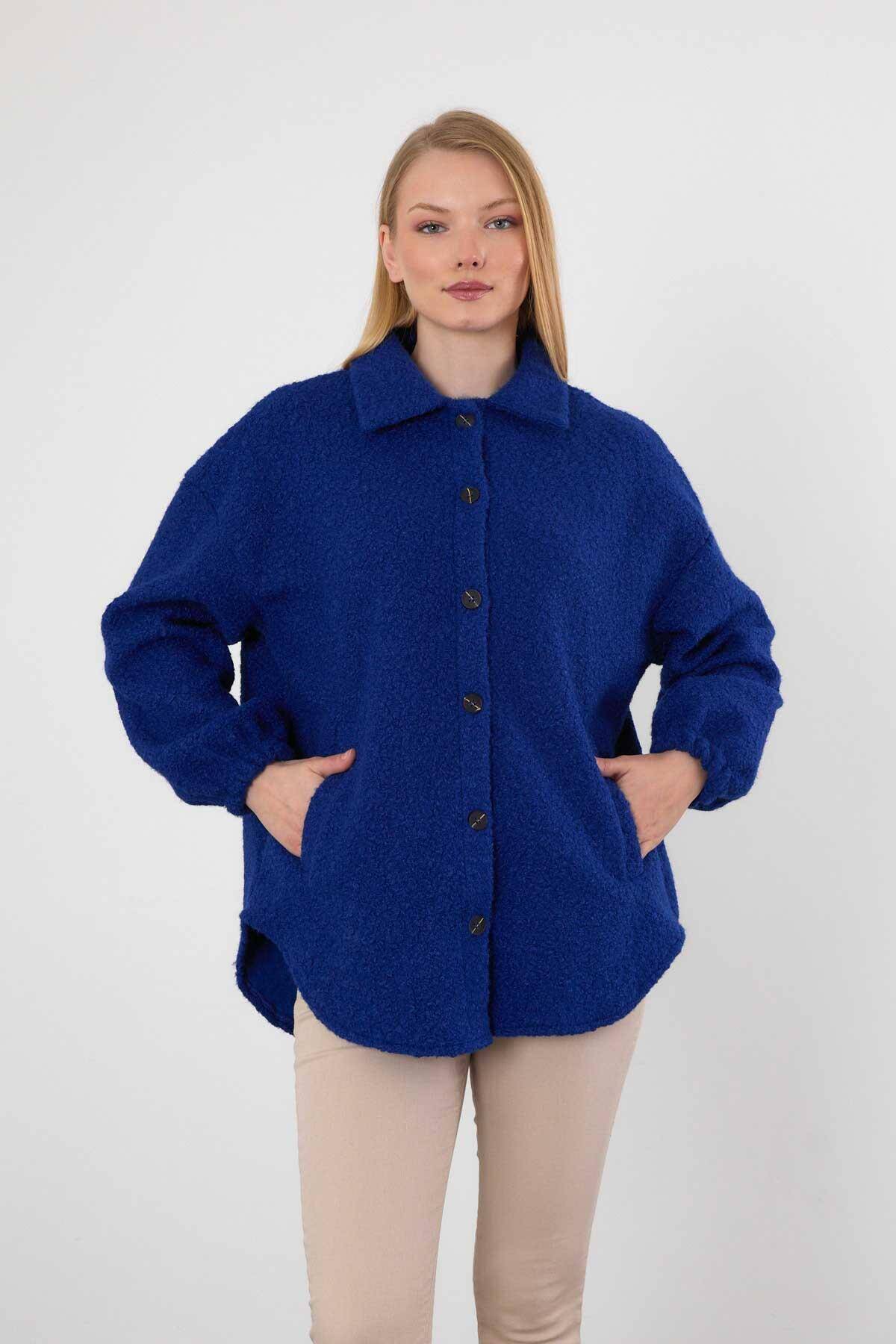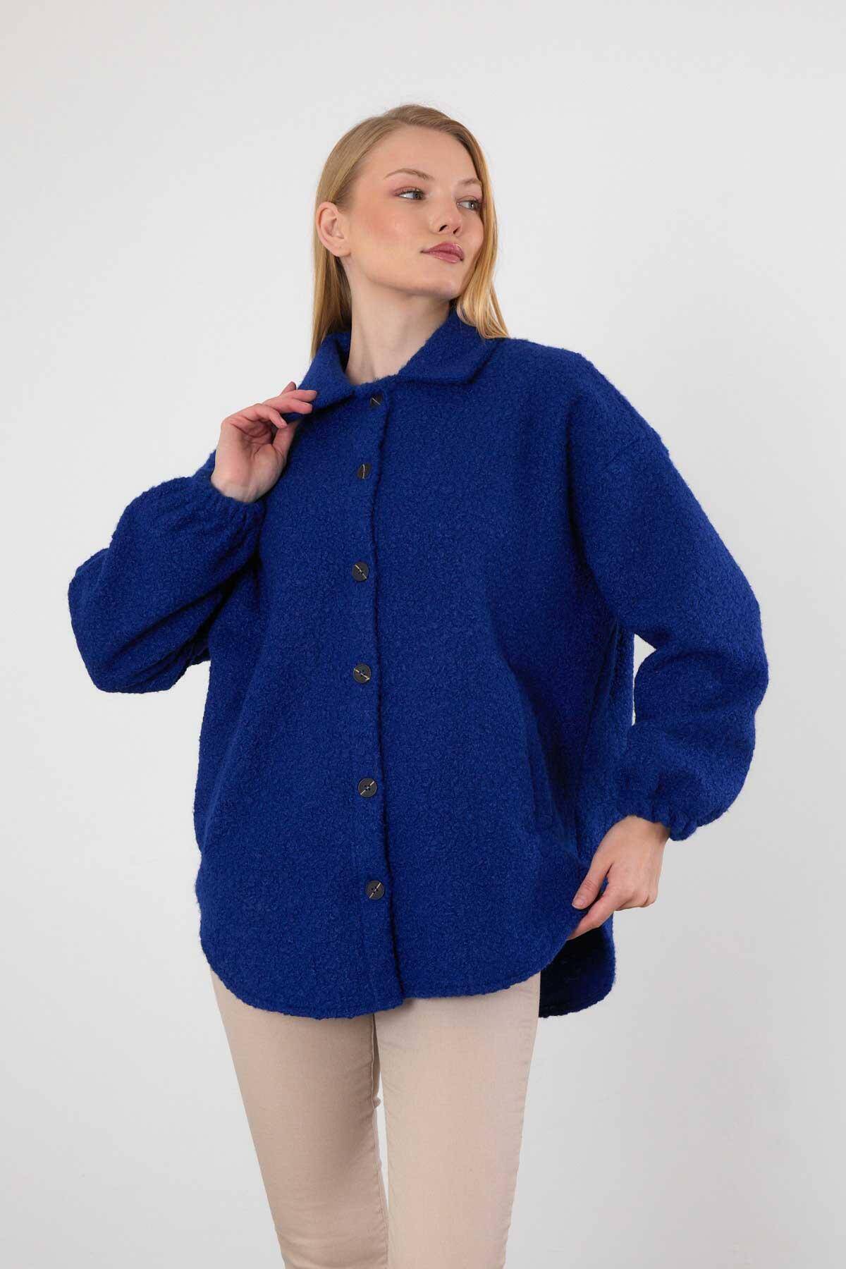 3014A Gömlek Yaka Düğmeli Ceket Saks