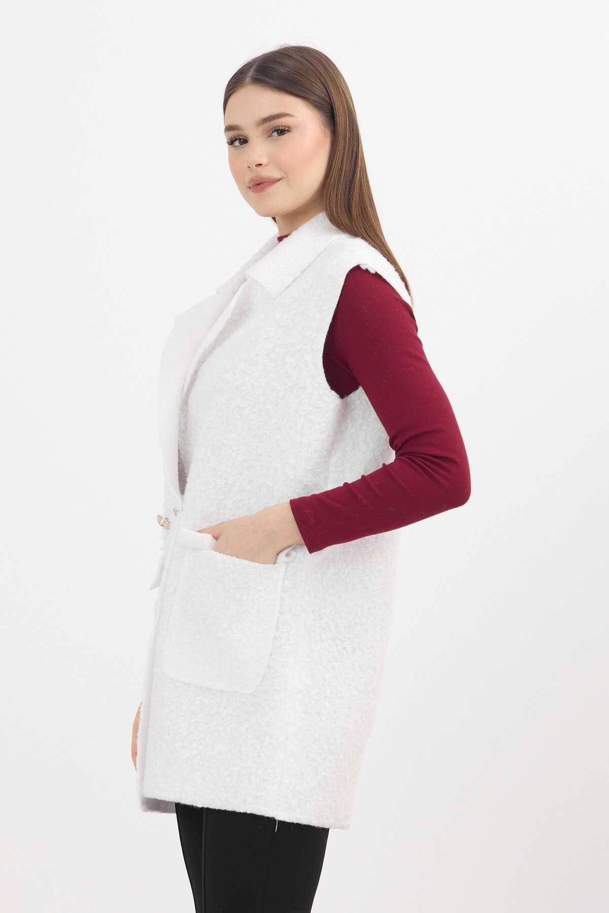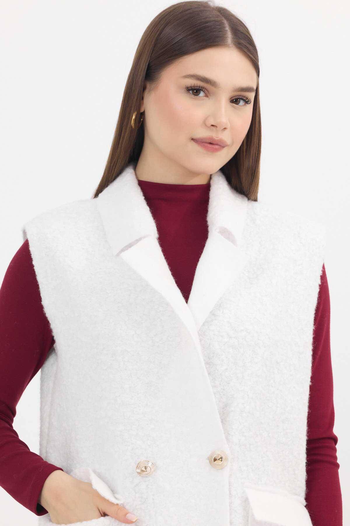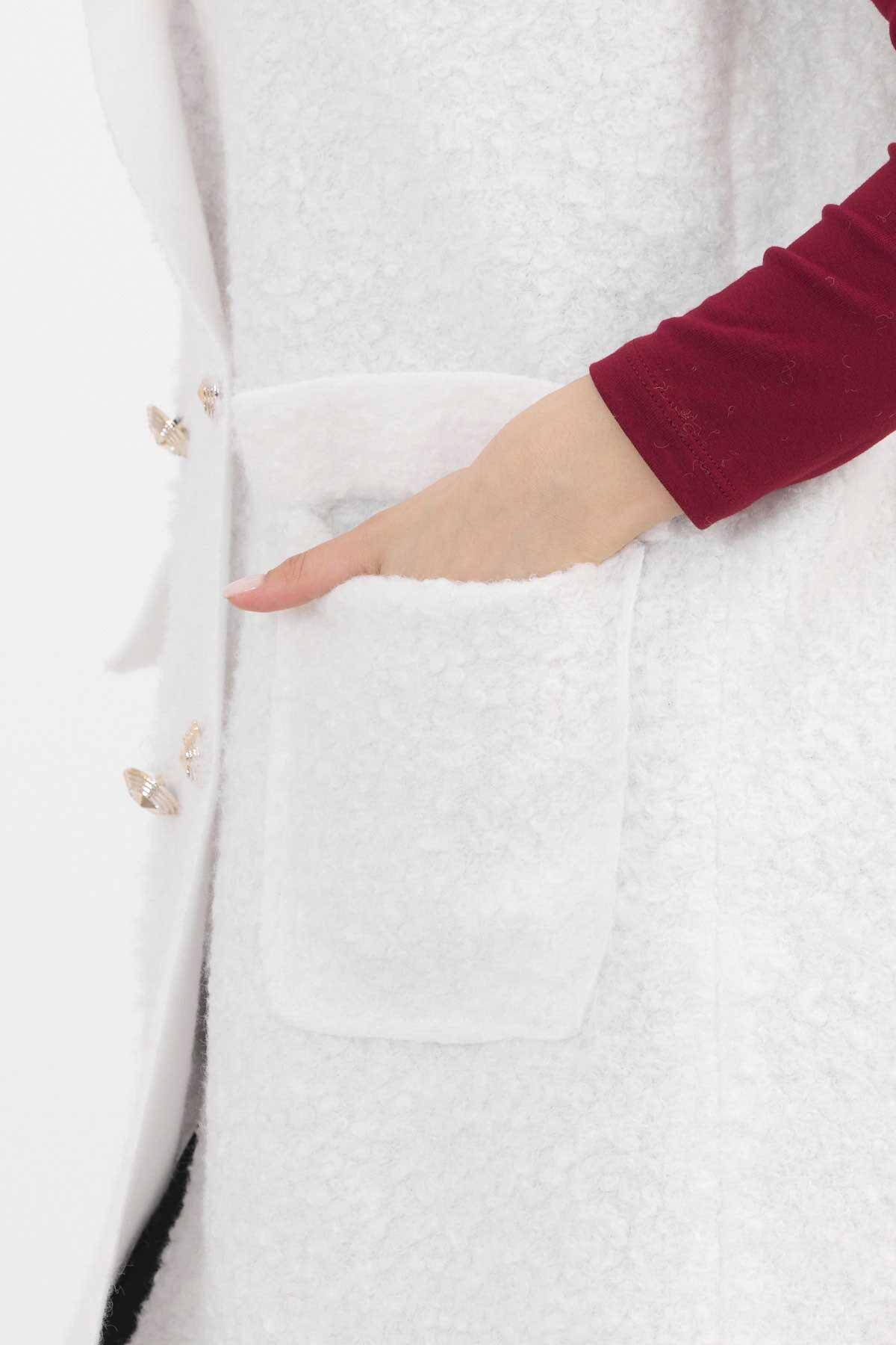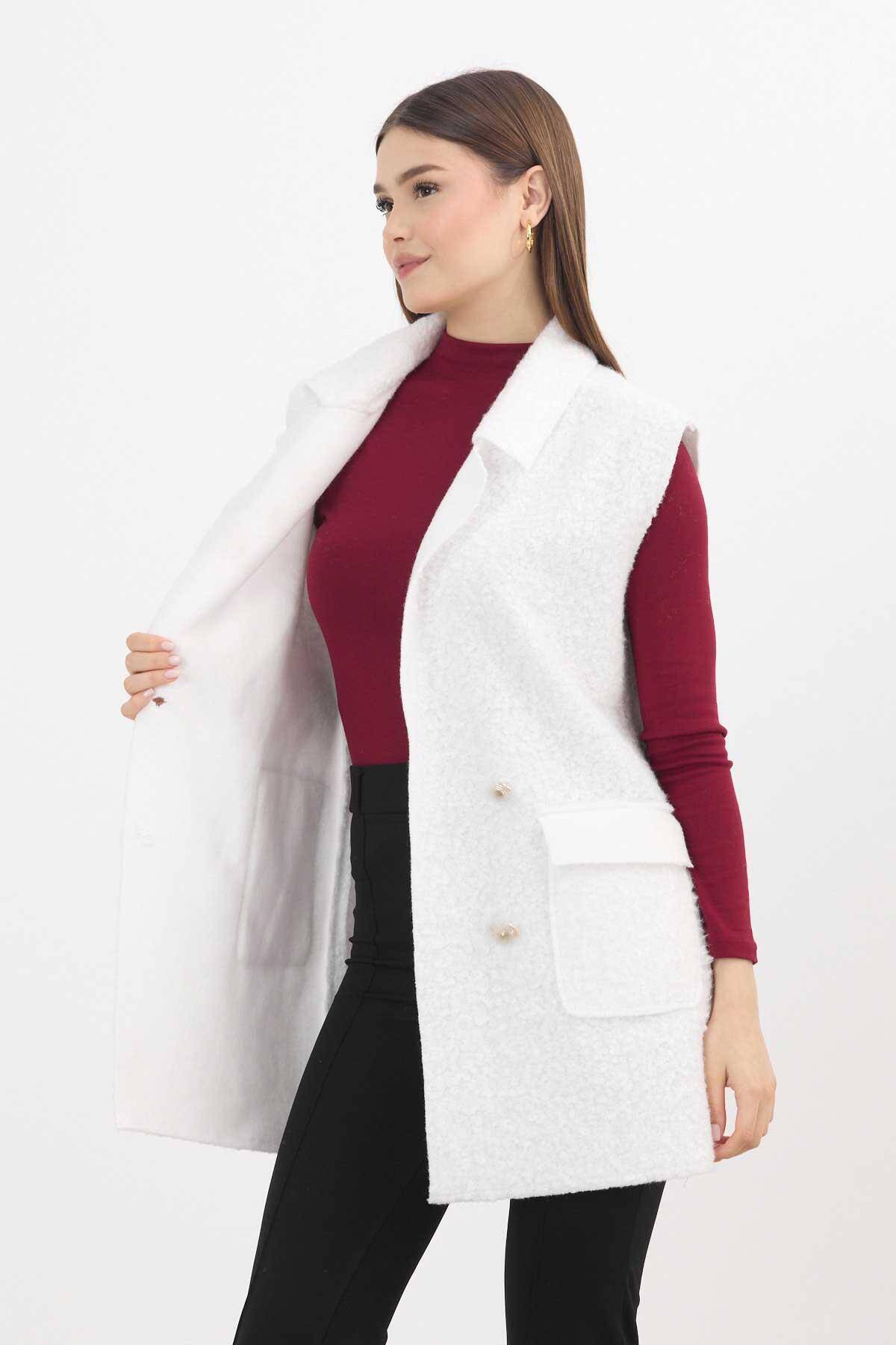 3016A Düğme Detay Buklet Yelek Ekru