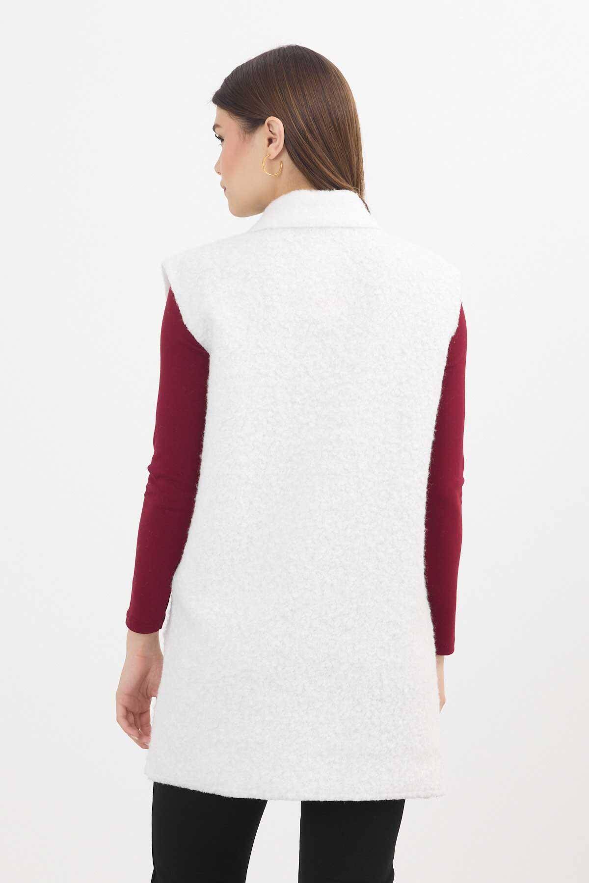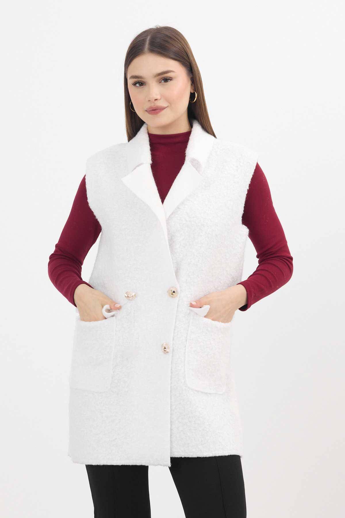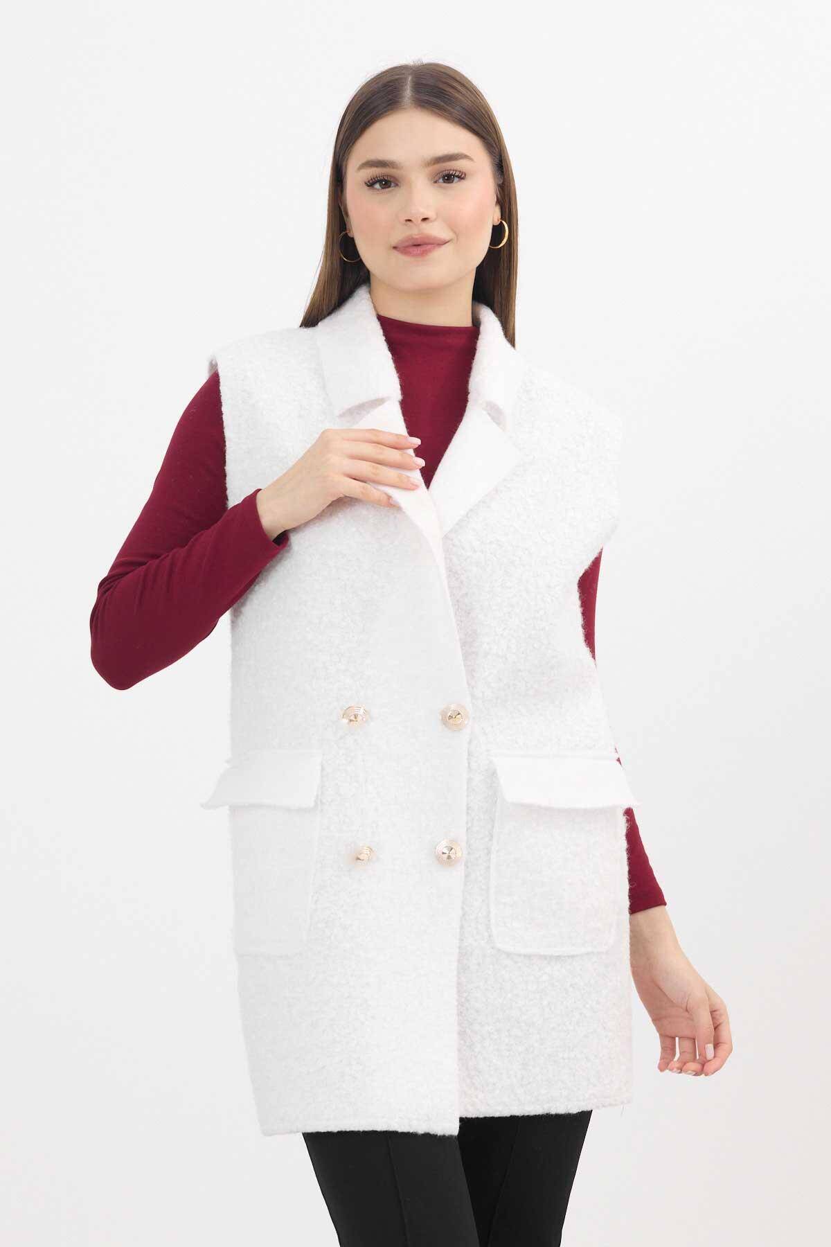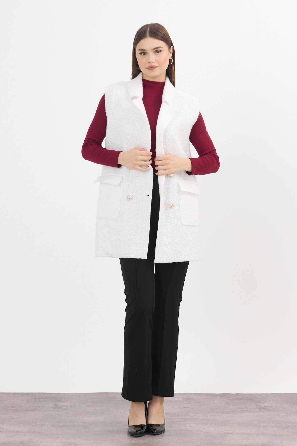 3016A Düğme Detay Buklet Yelek Ekru