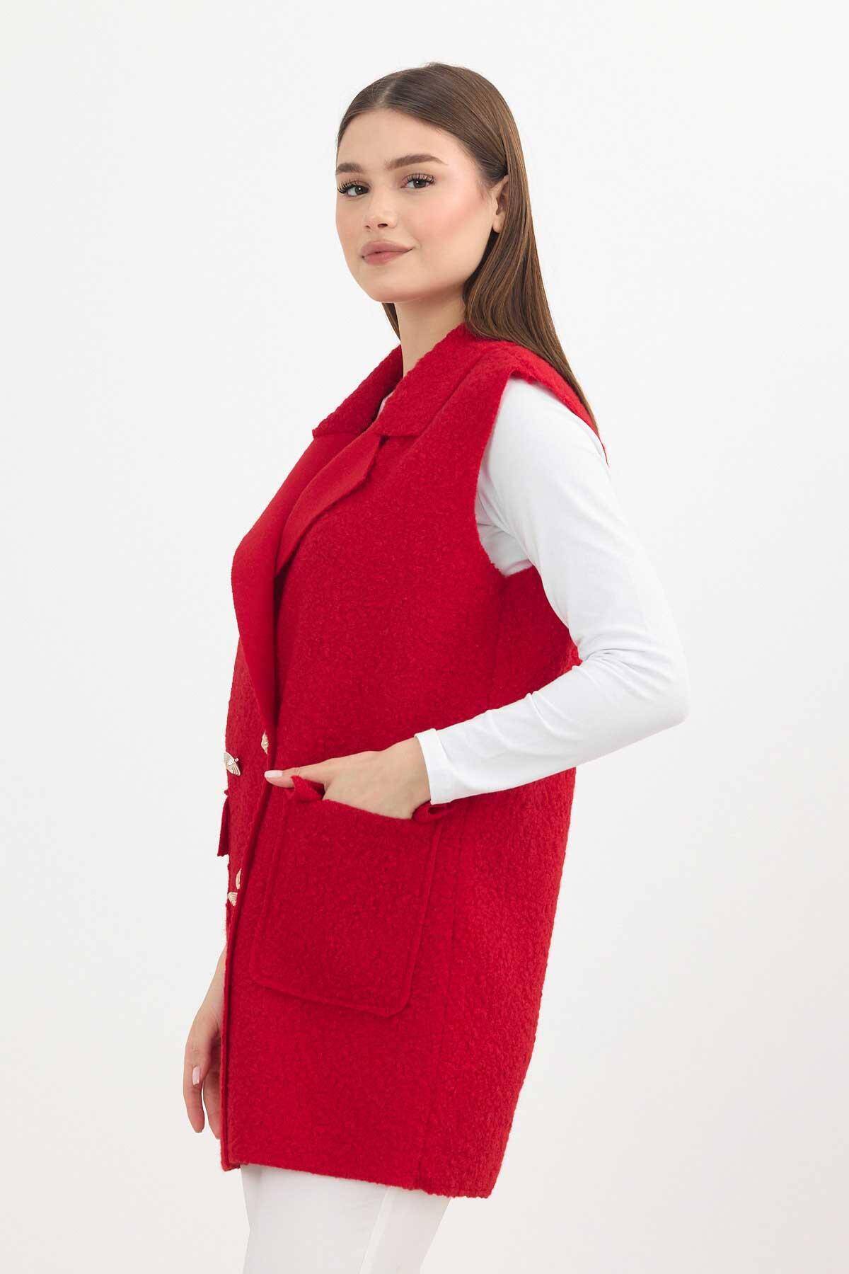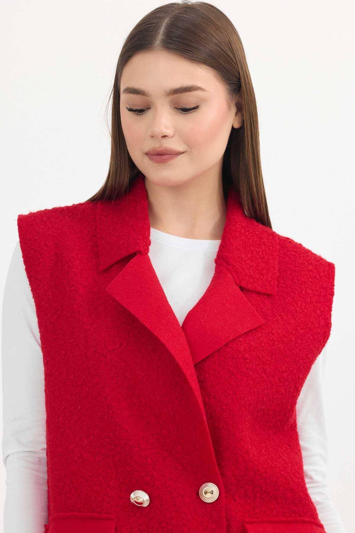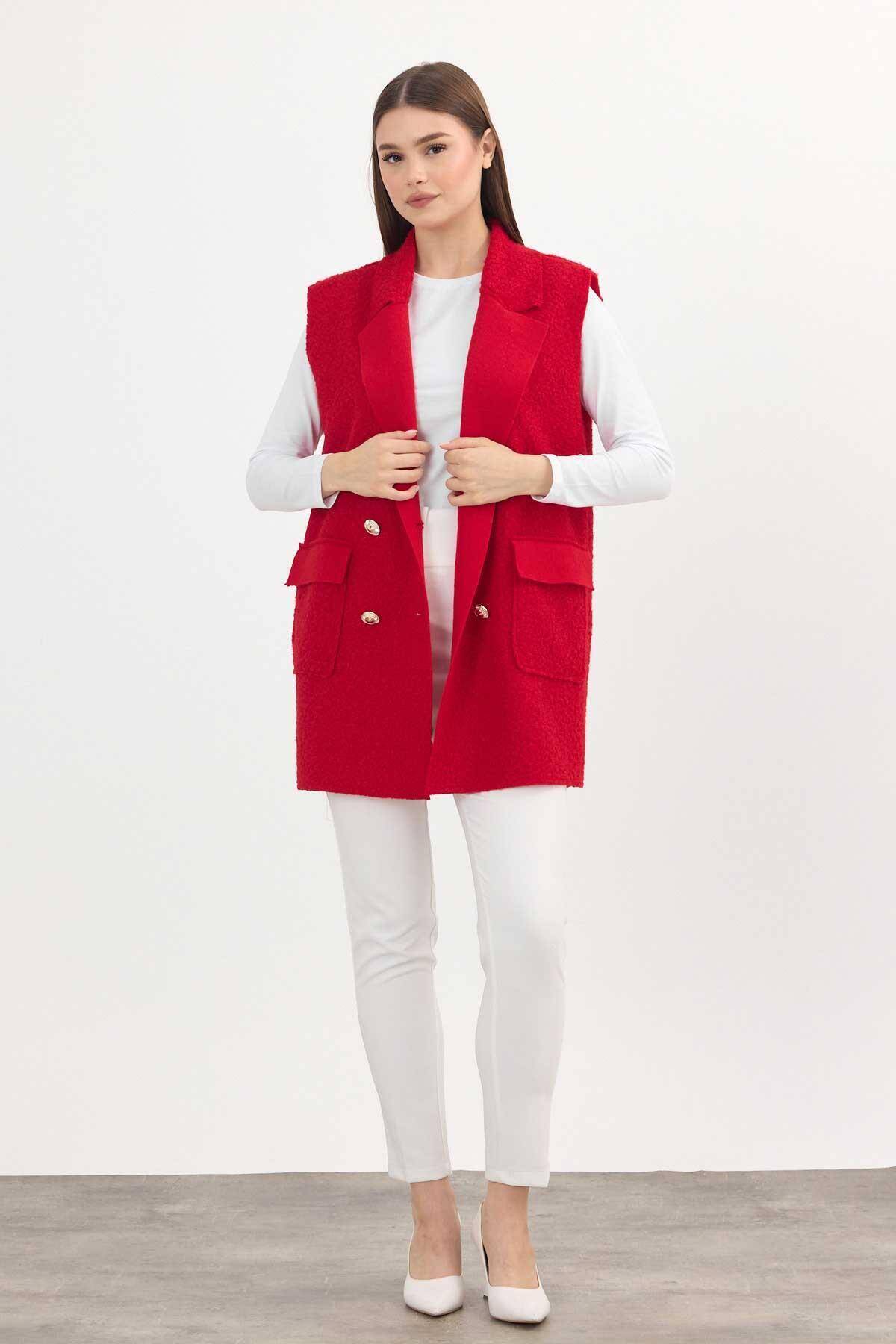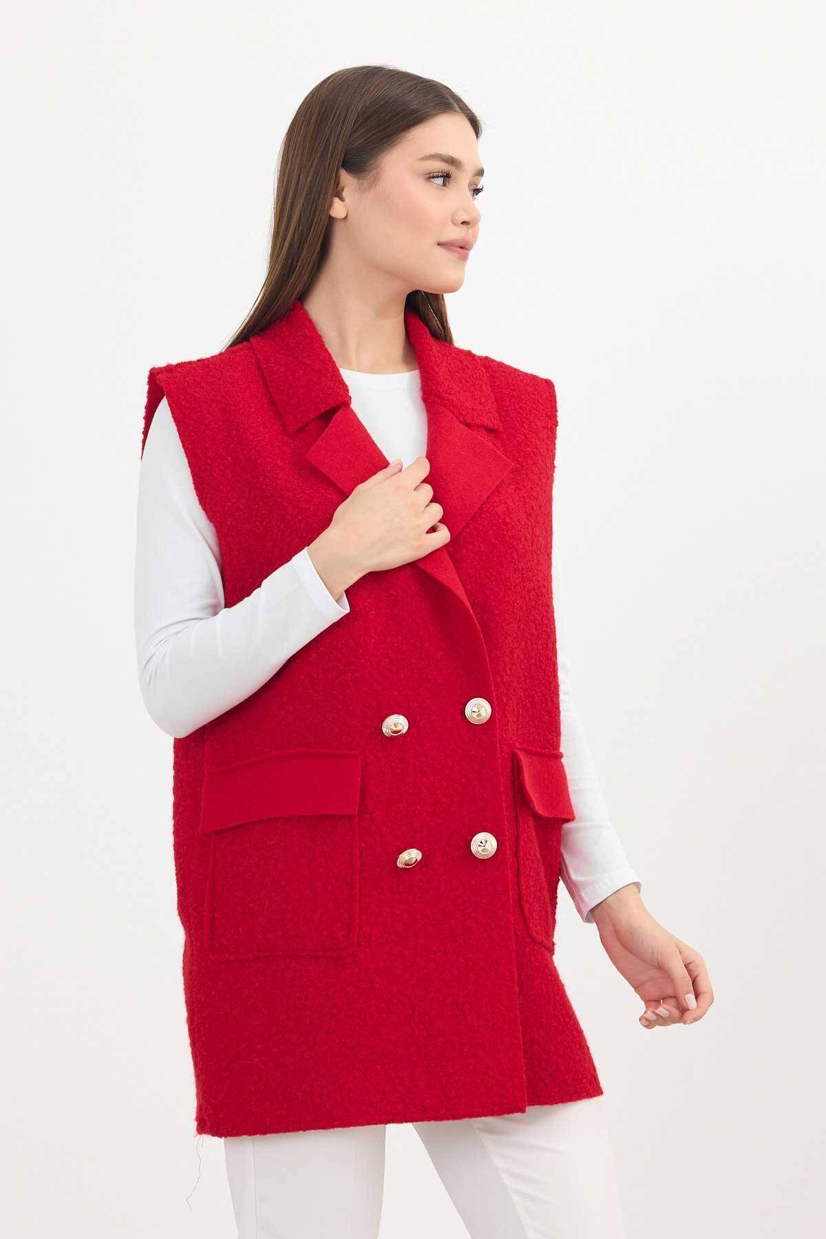 3016A Düğme Detay Buklet Yelek Kırmızı