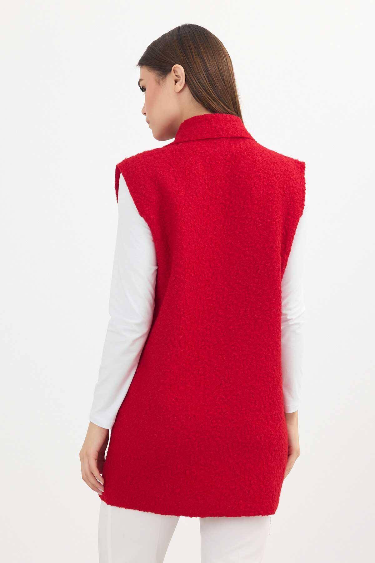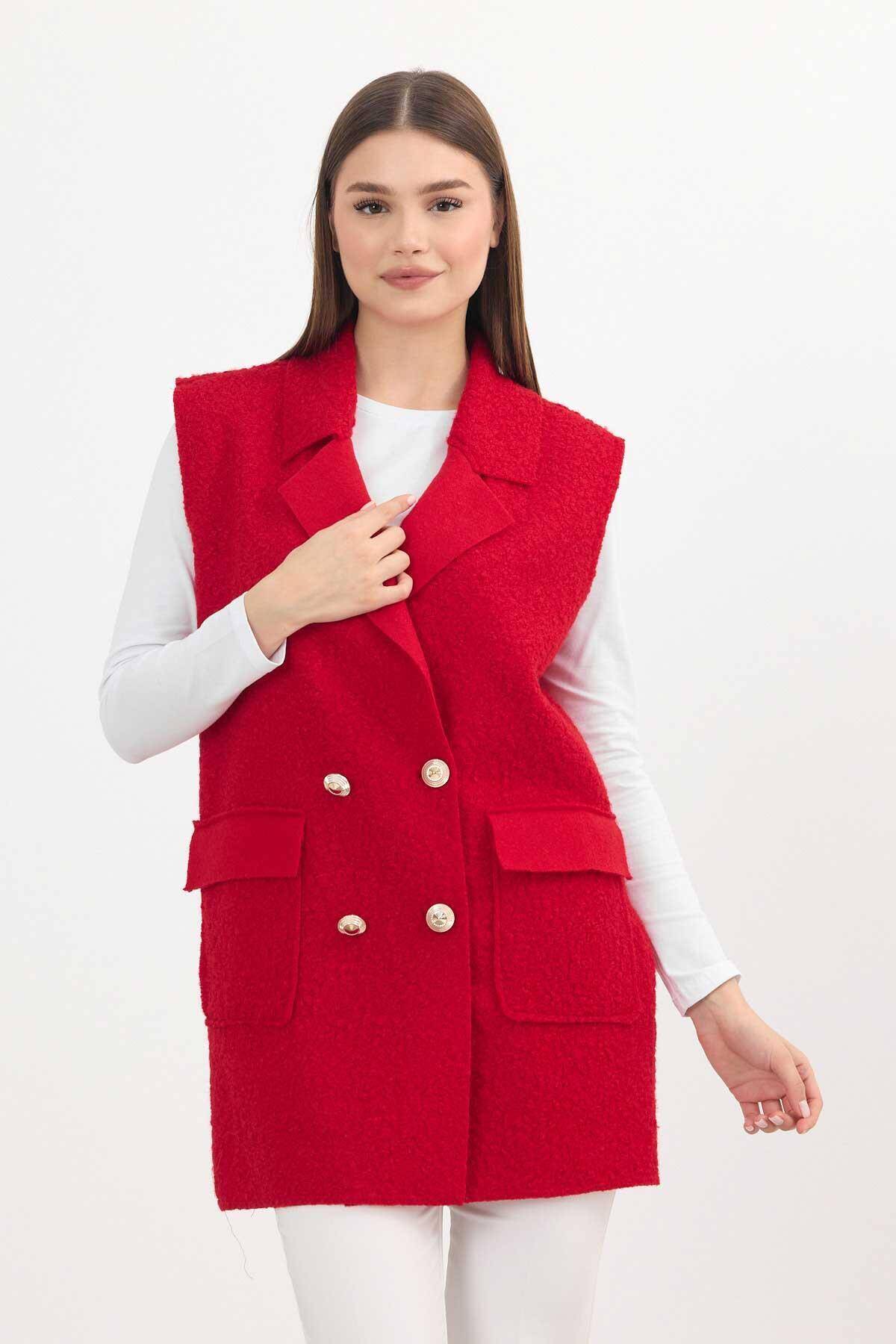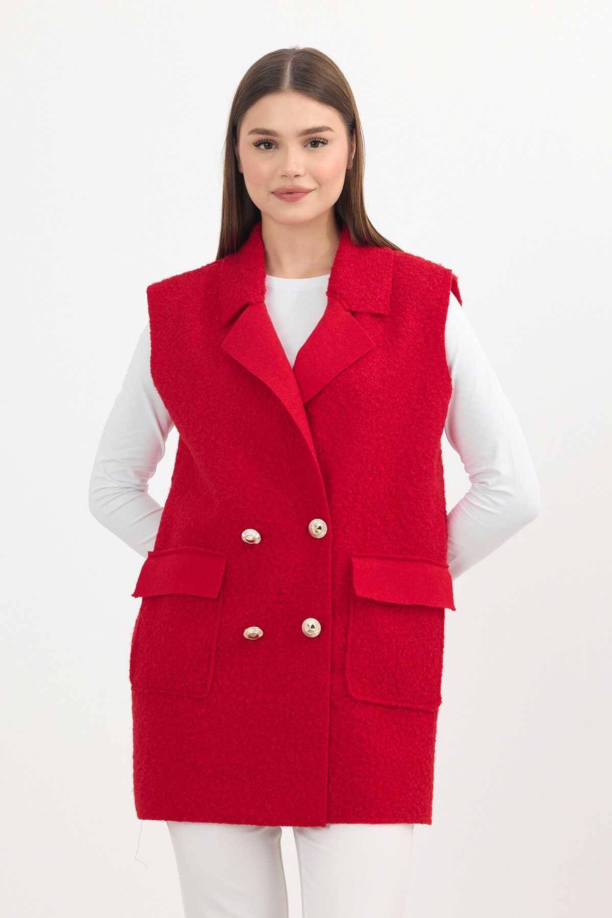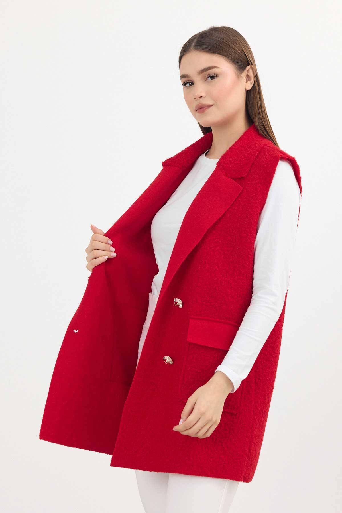 3016A Düğme Detay Buklet Yelek Kırmızı