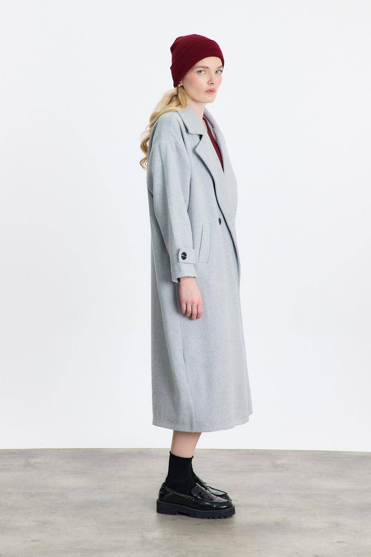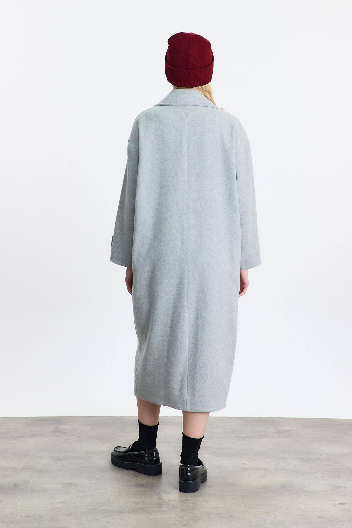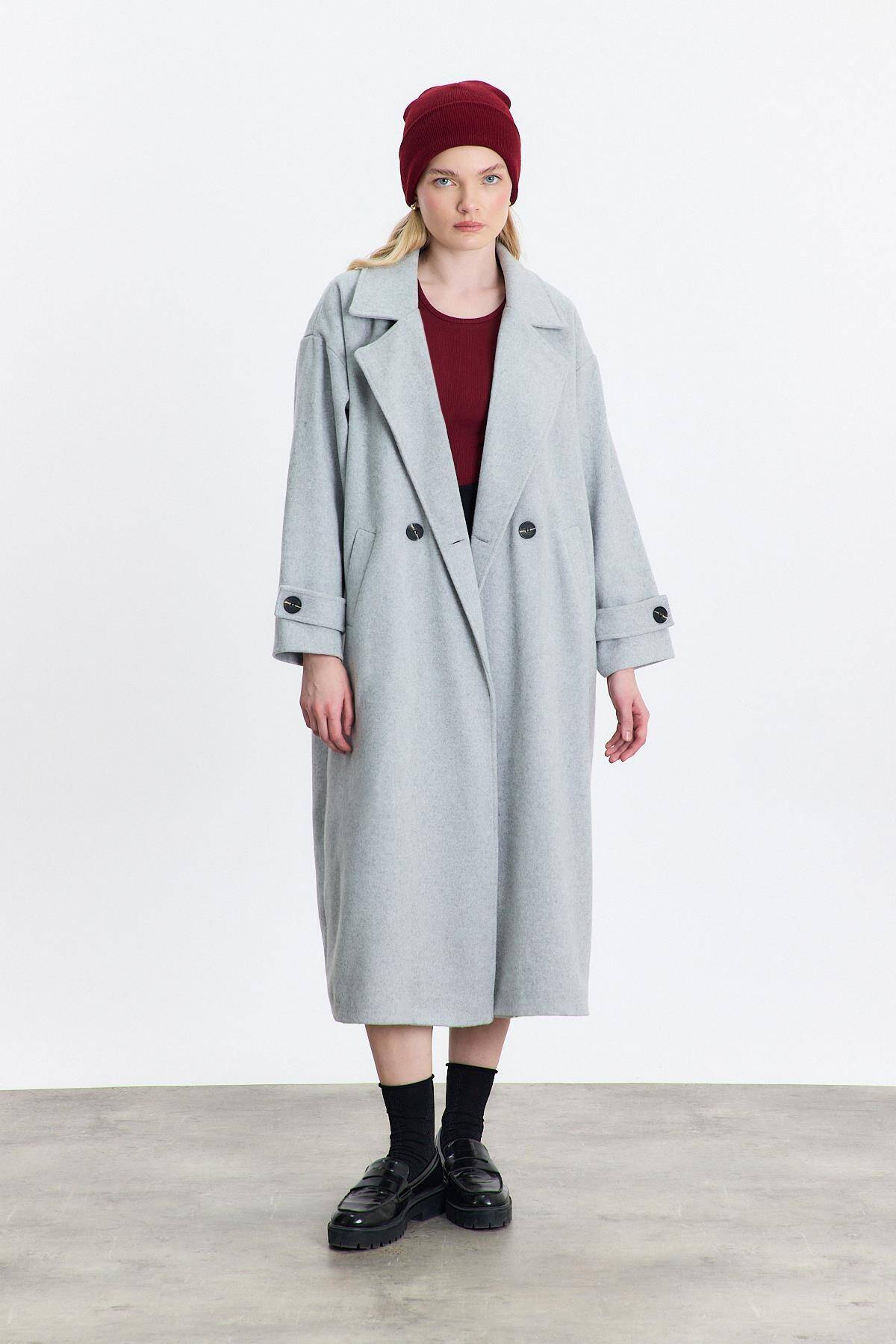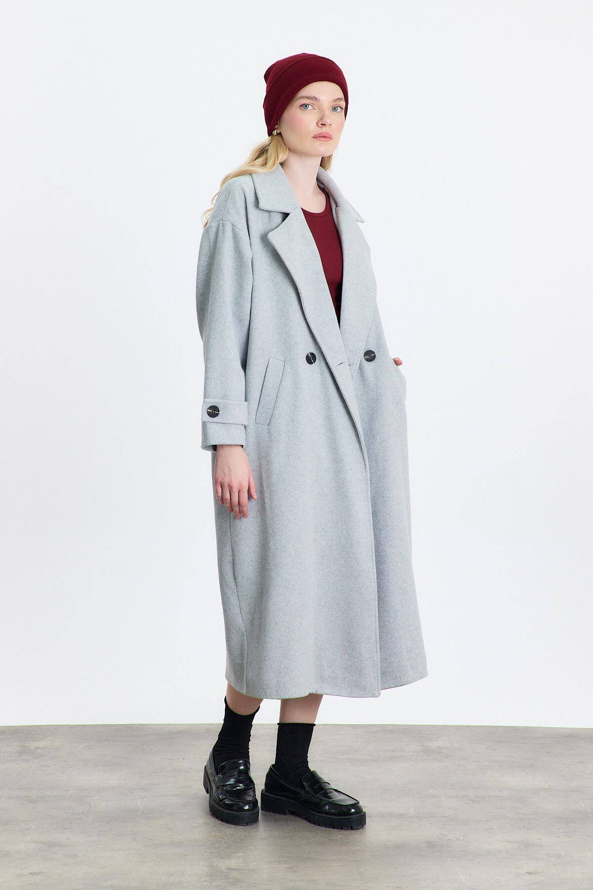 3025A Çift Düğme Cepli Uzun Kaban Gri