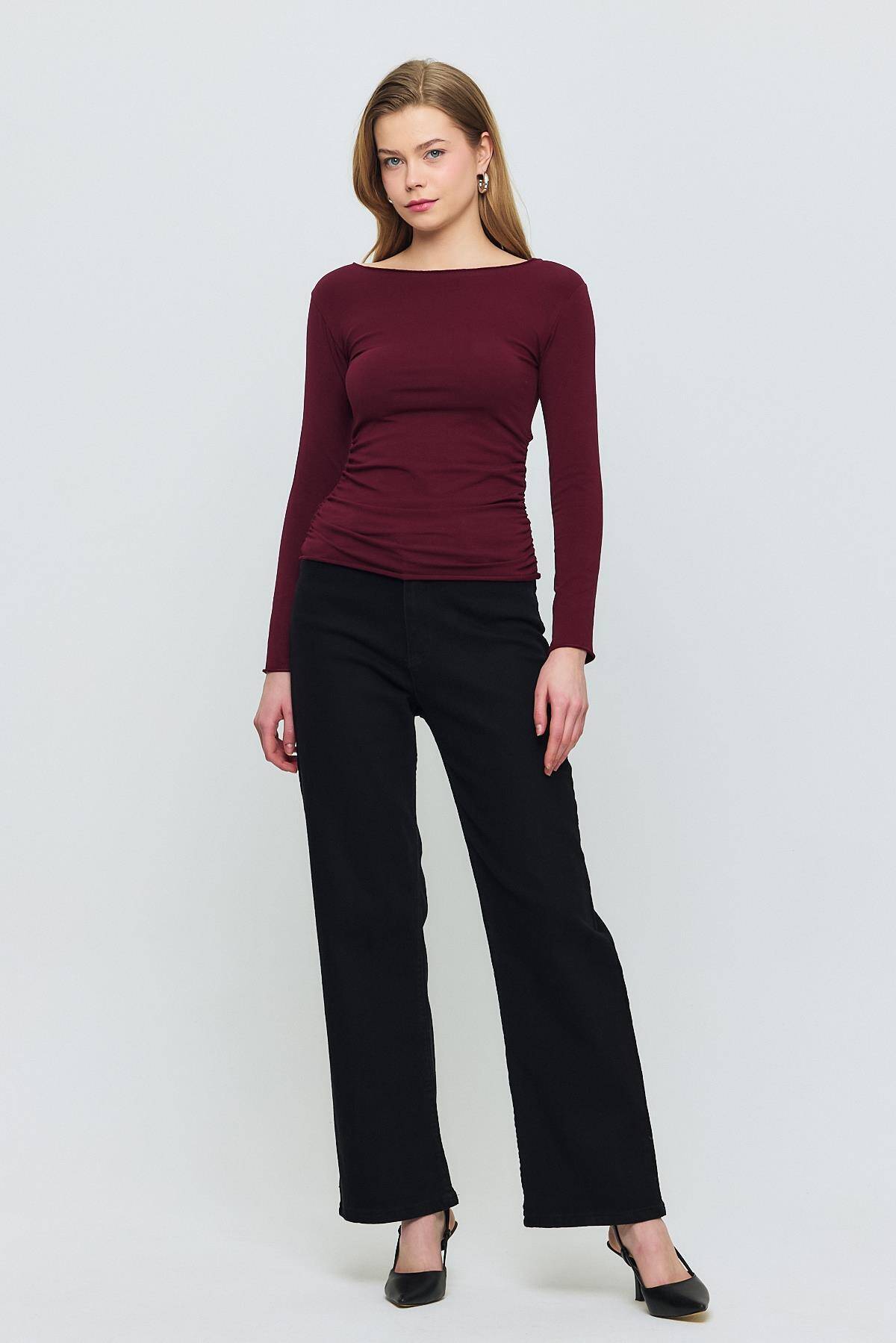 7149A Belden Bağlamalı Uzun Kaşe Kaban Siyah