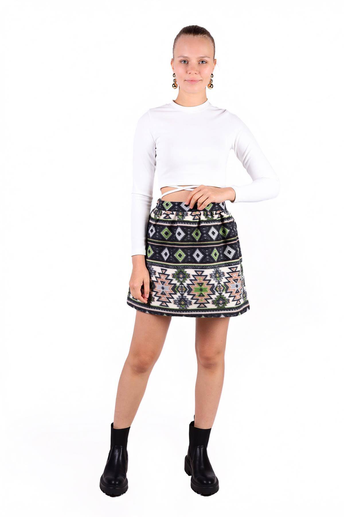 Beyaz Deri Kemer Detaylı Etnik Desenli Kimono 4363A