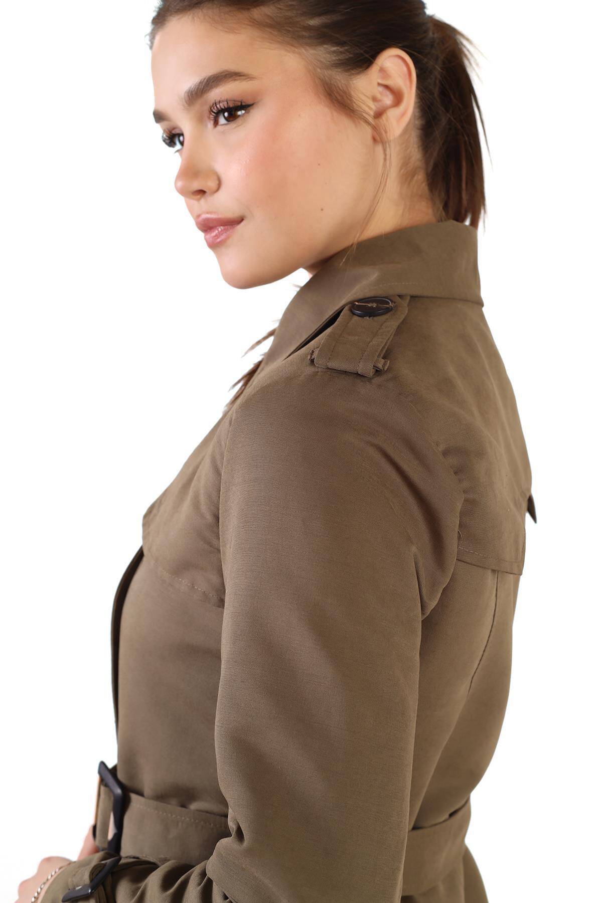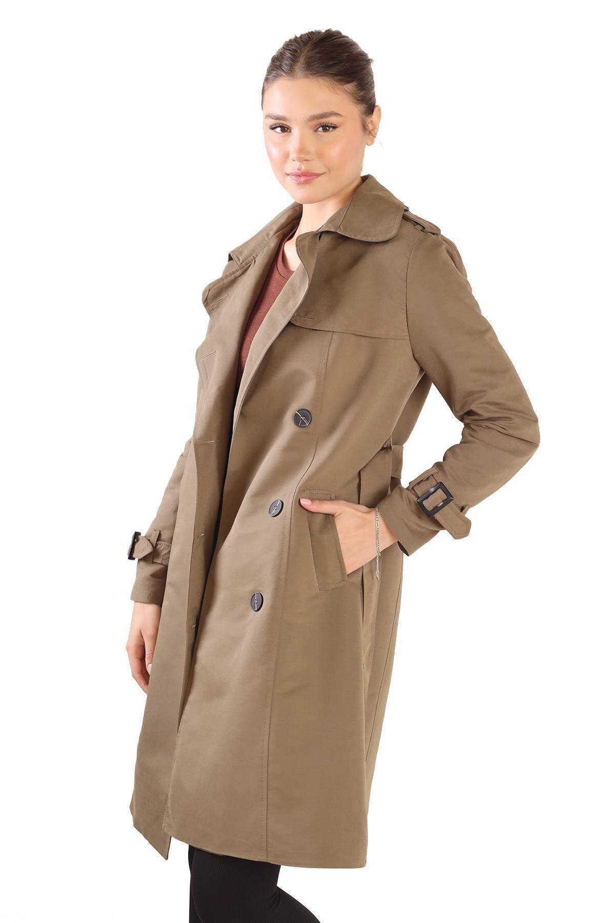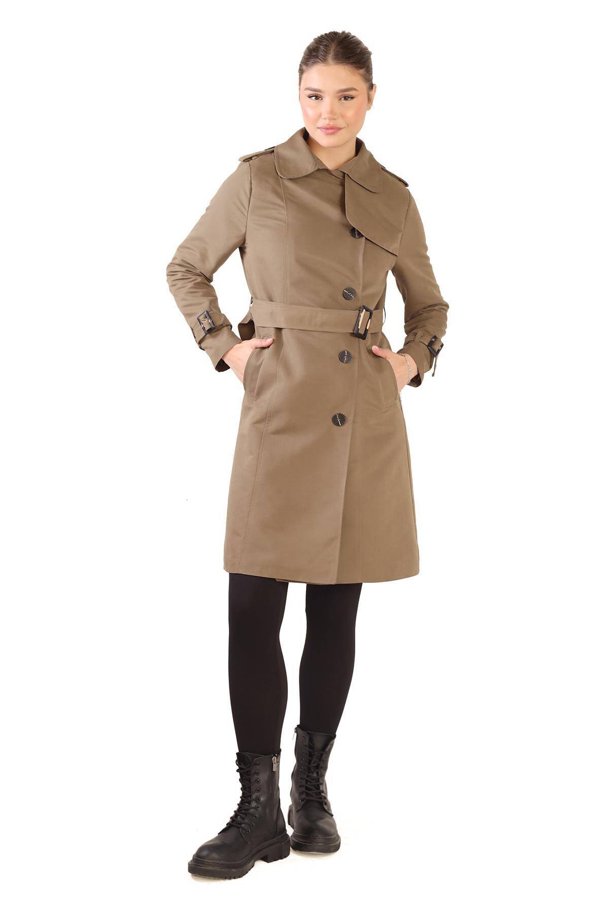 7149A Belden Bağlamalı Uzun Kaşe Kaban Gri