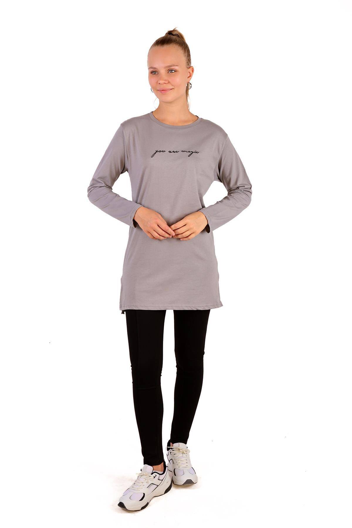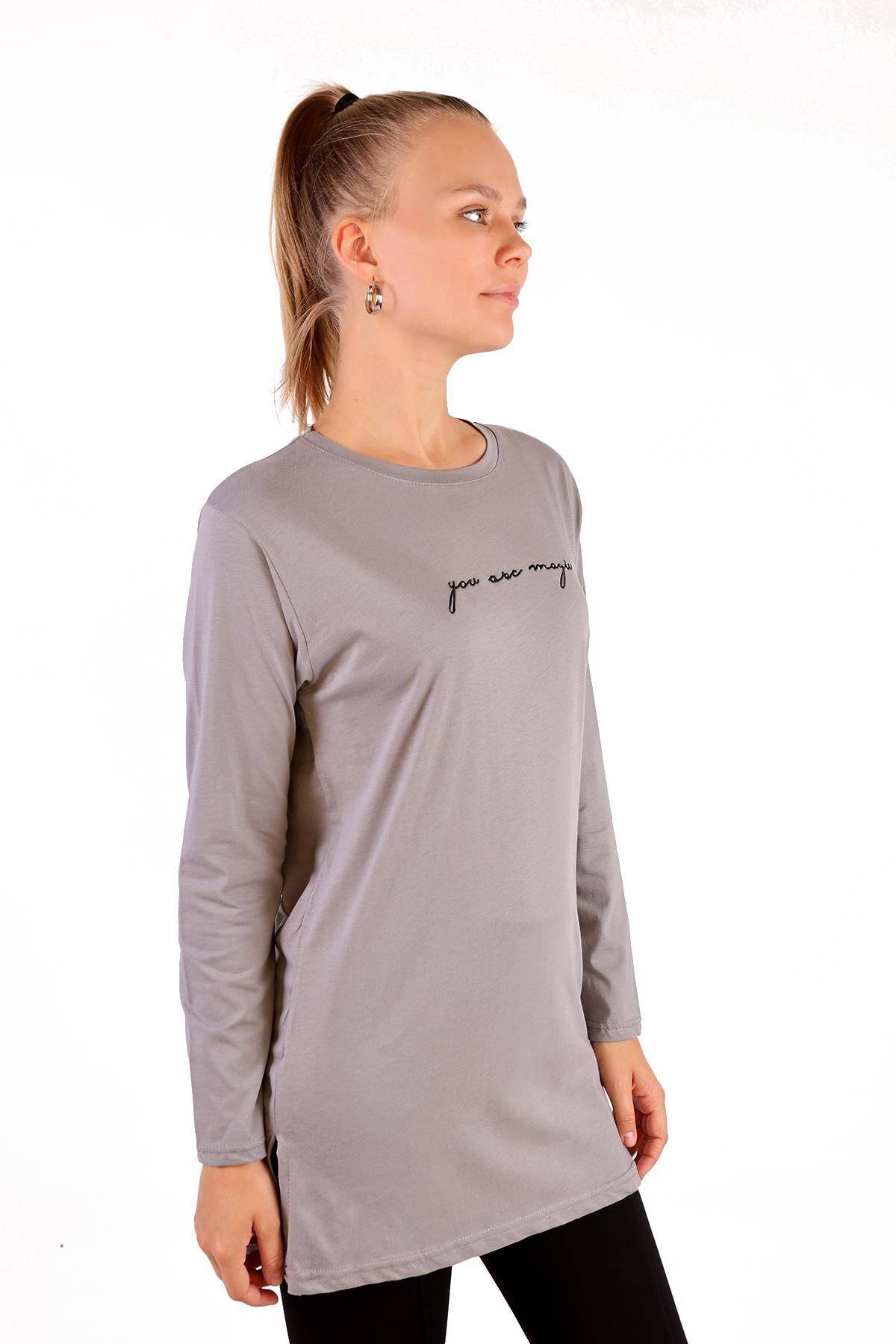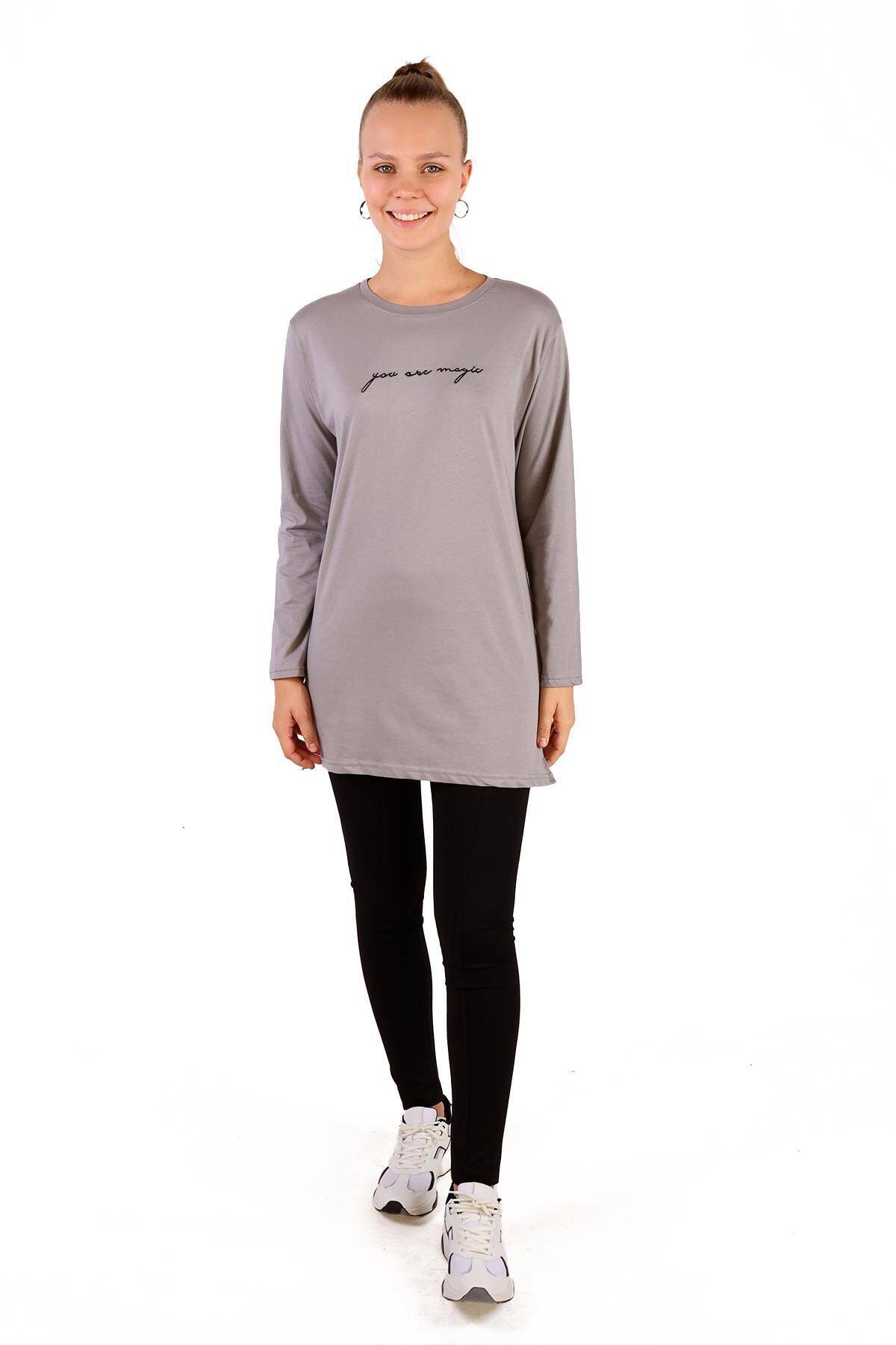 3158 You Are Magic Baskılı Uzun Kol Tişört Gri