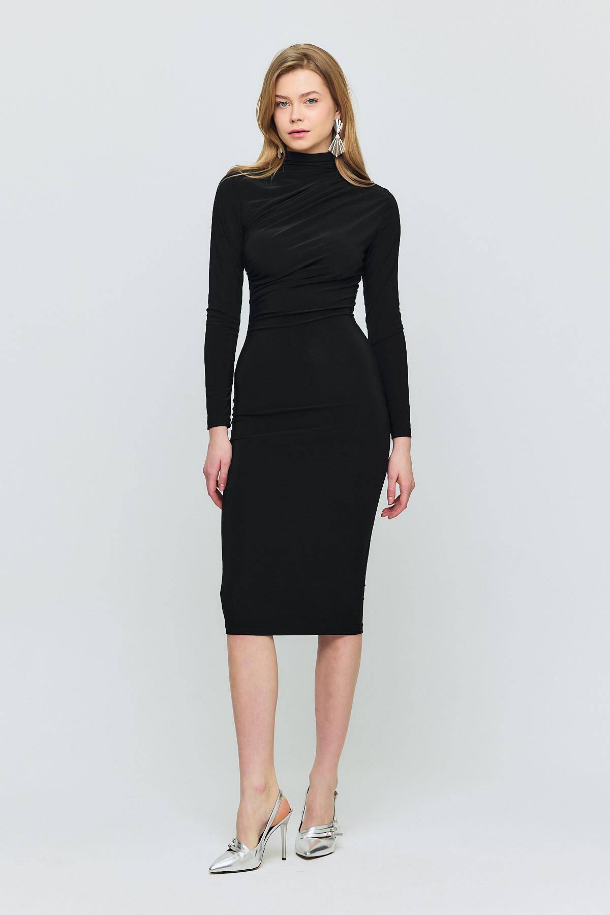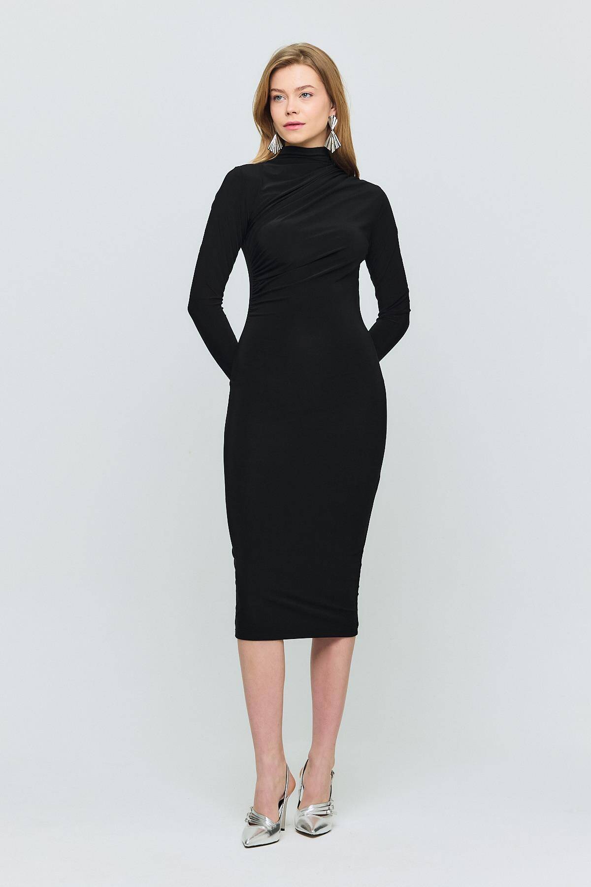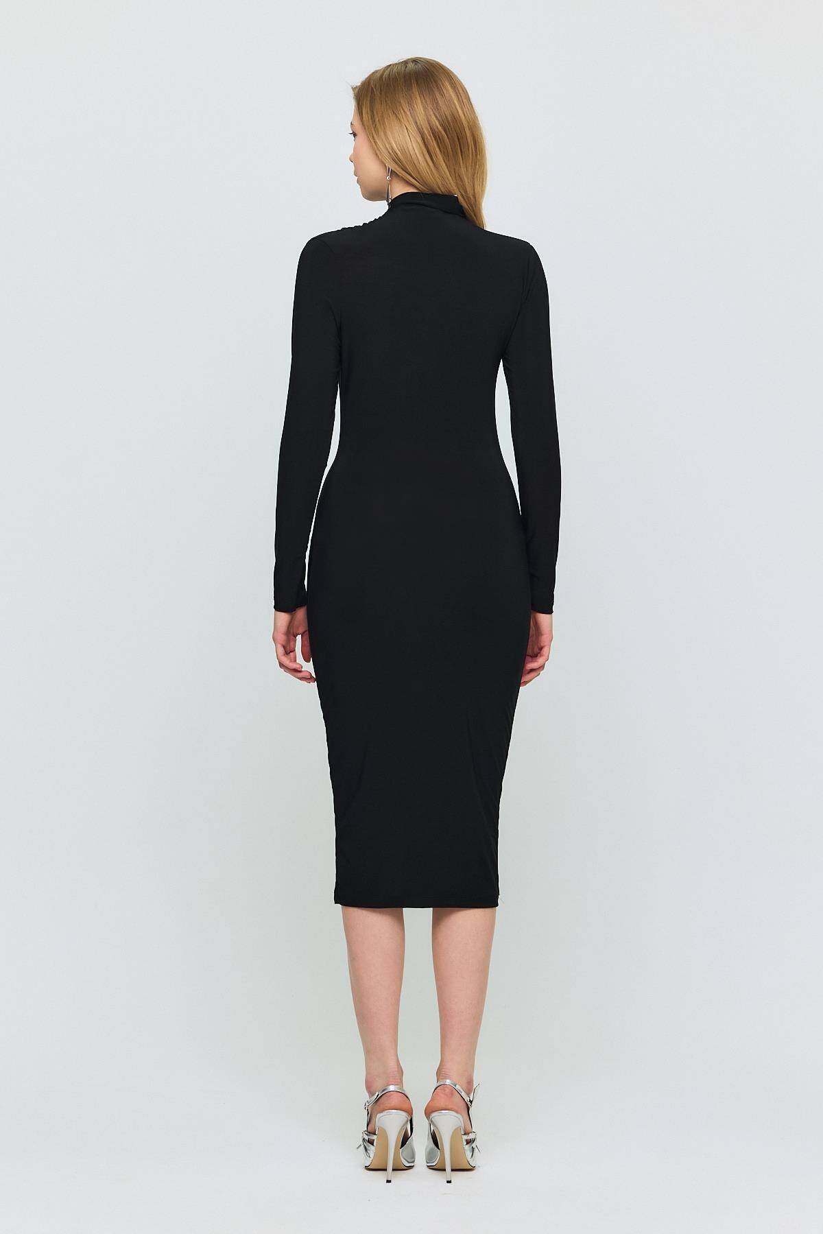 7149A Belden Bağlamalı Uzun Kaşe Kaban Siyah