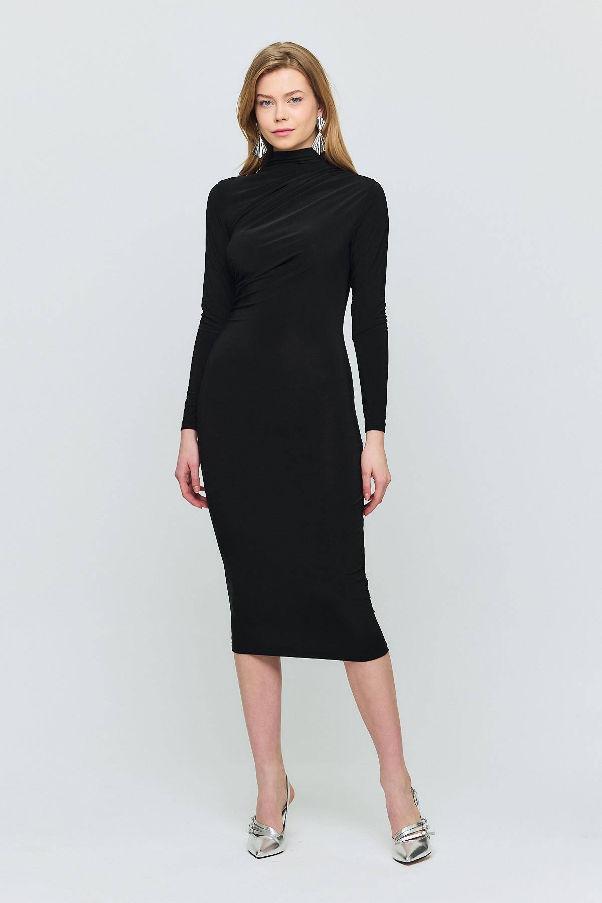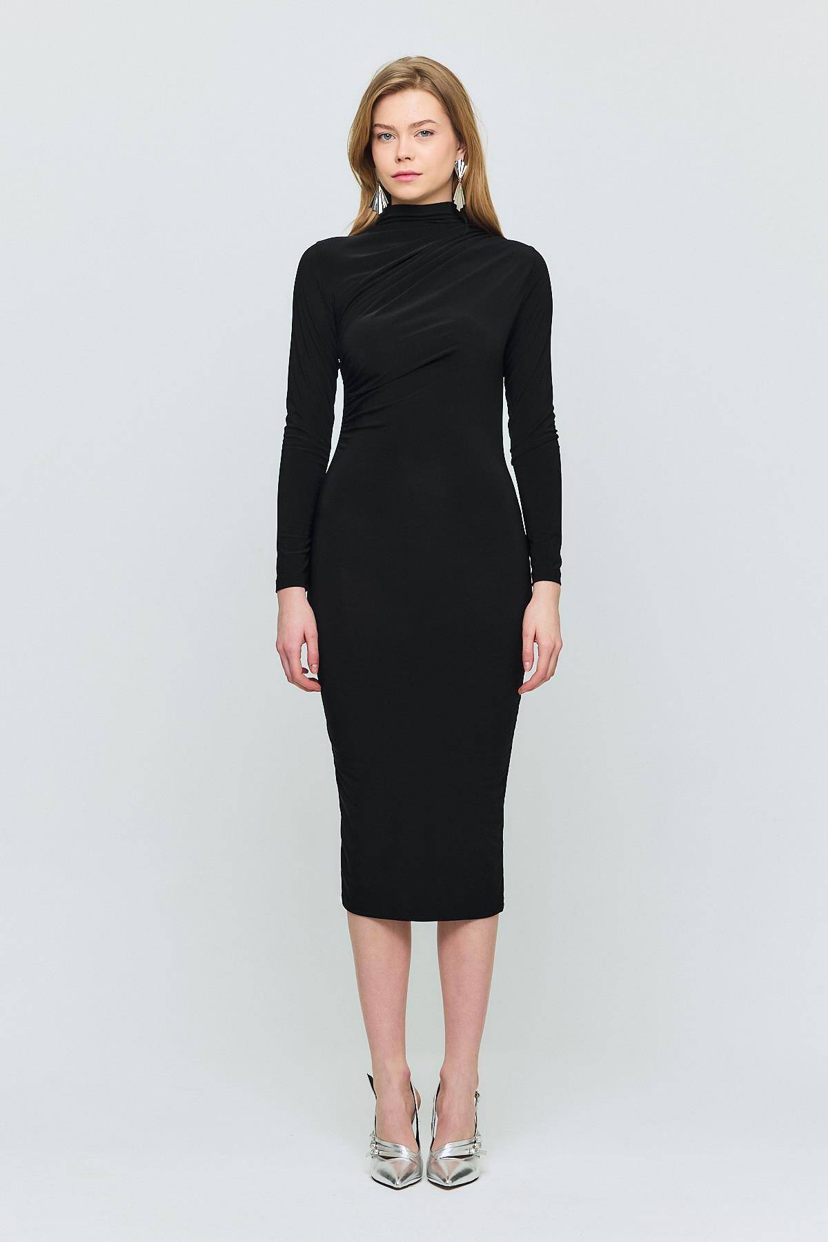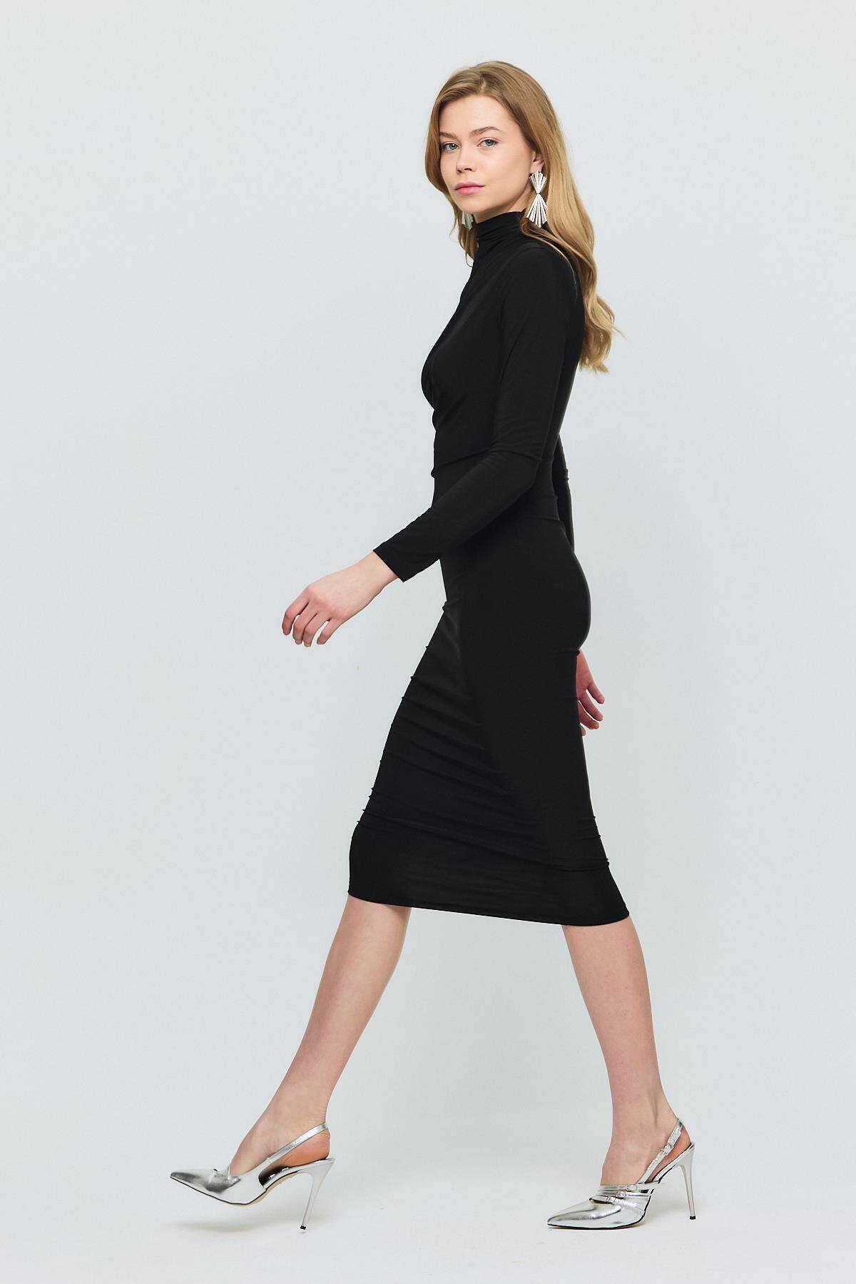 7149A Belden Bağlamalı Uzun Kaşe Kaban Siyah