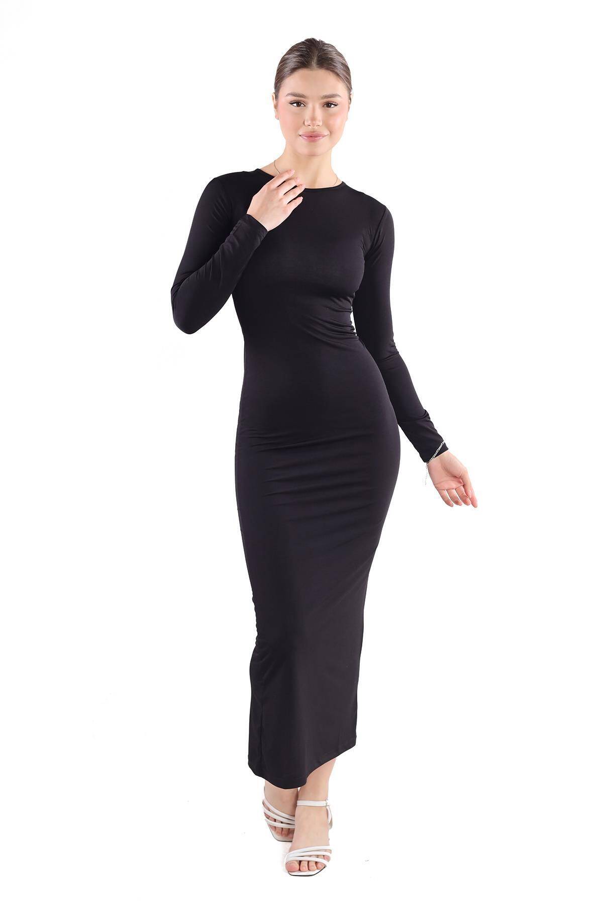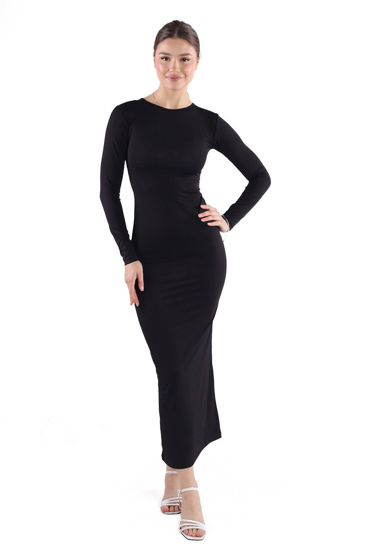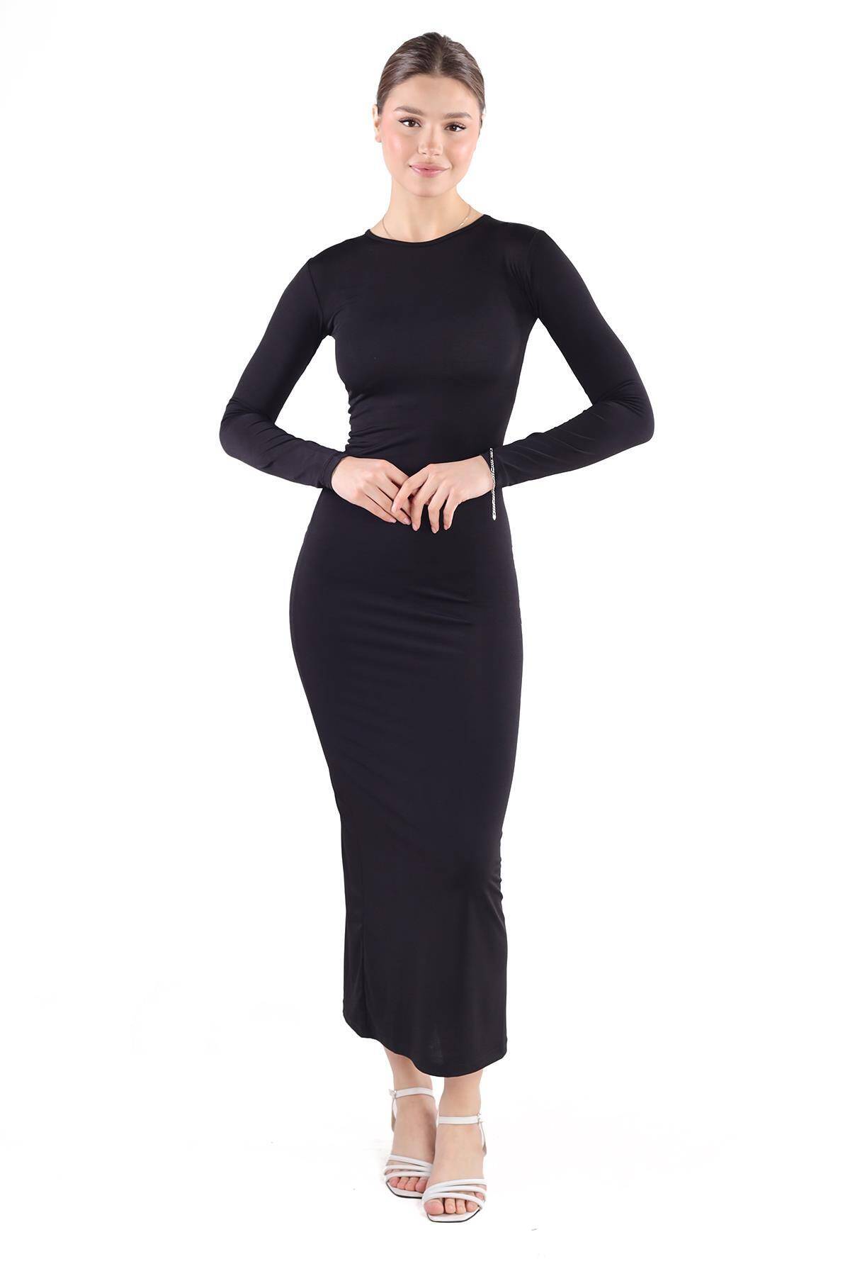 376 Bisiklet Yaka Elbise Siyah