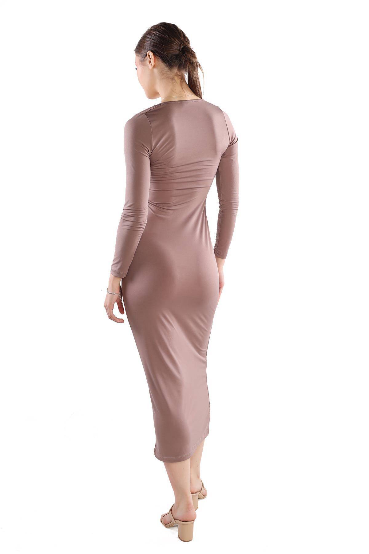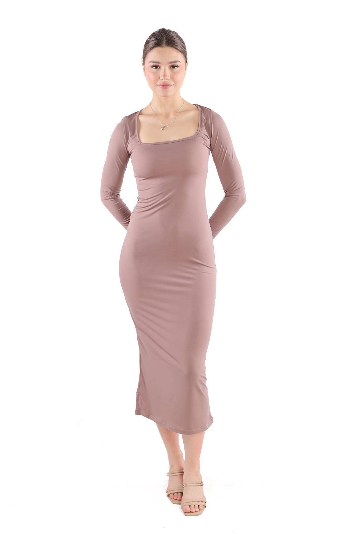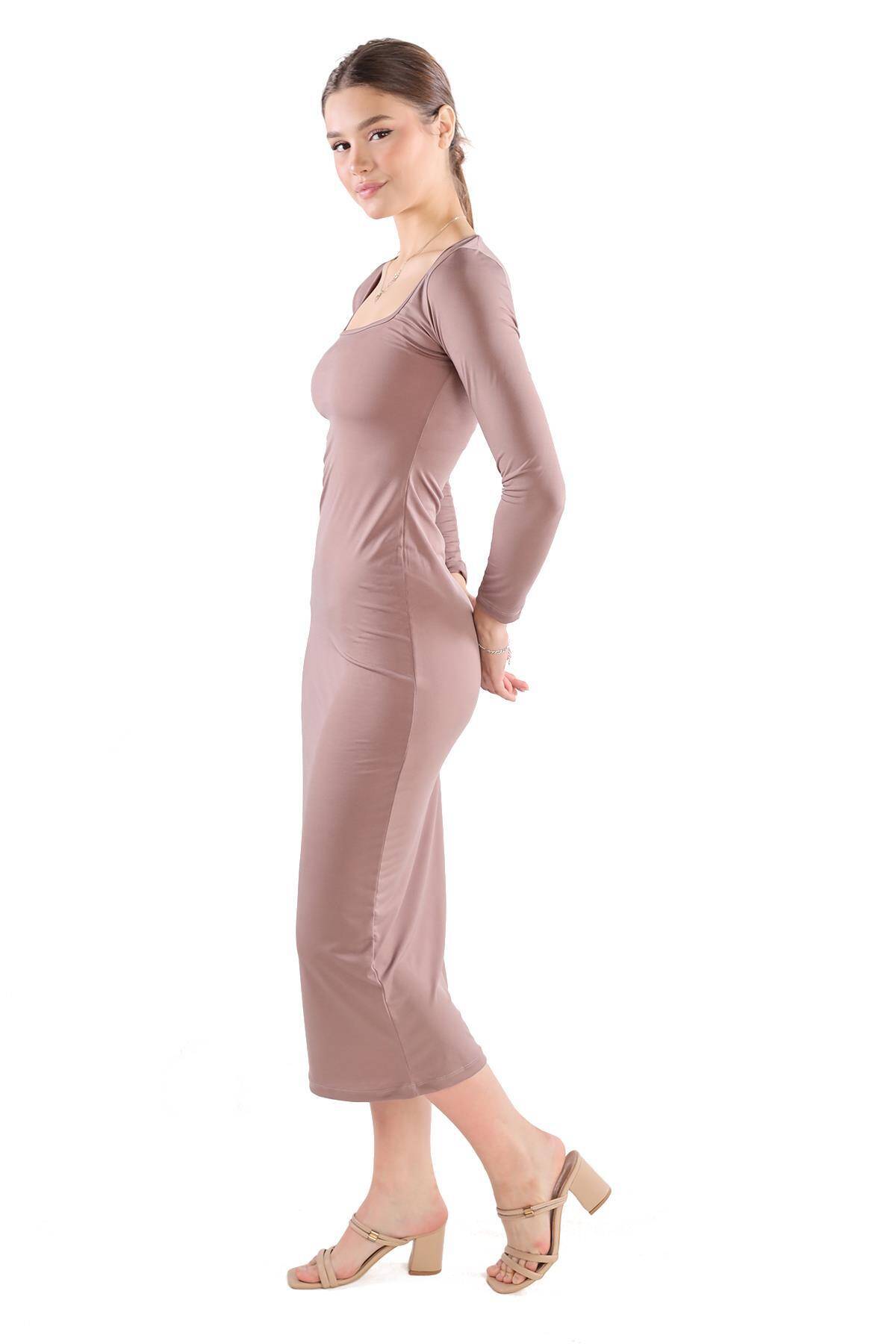 385 Kare Yaka Elbise Camel