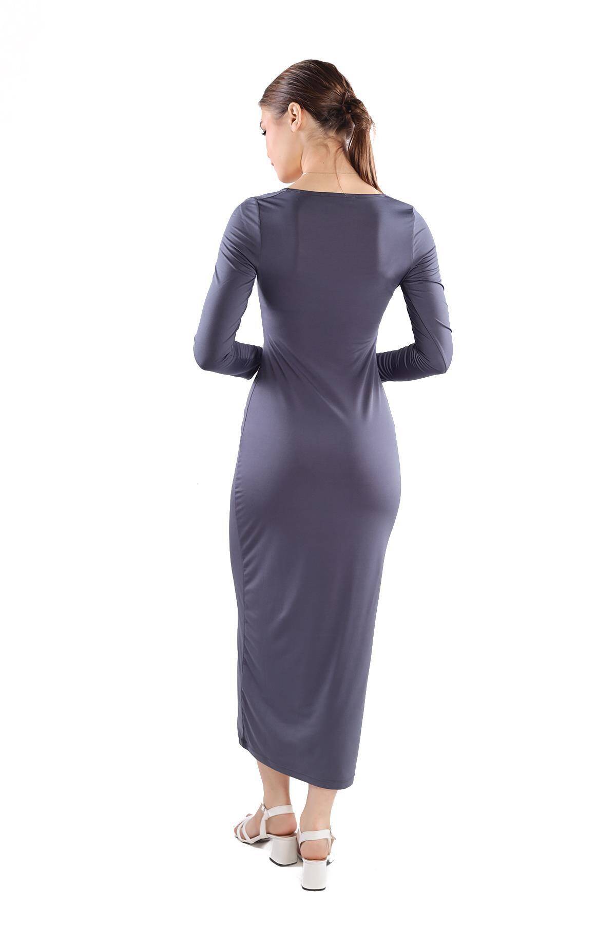 7149A Belden Bağlamalı Uzun Kaşe Kaban Gri