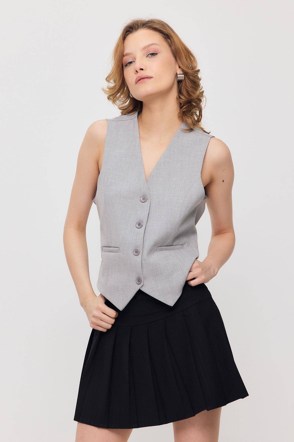 7149A Belden Bağlamalı Uzun Kaşe Kaban Gri