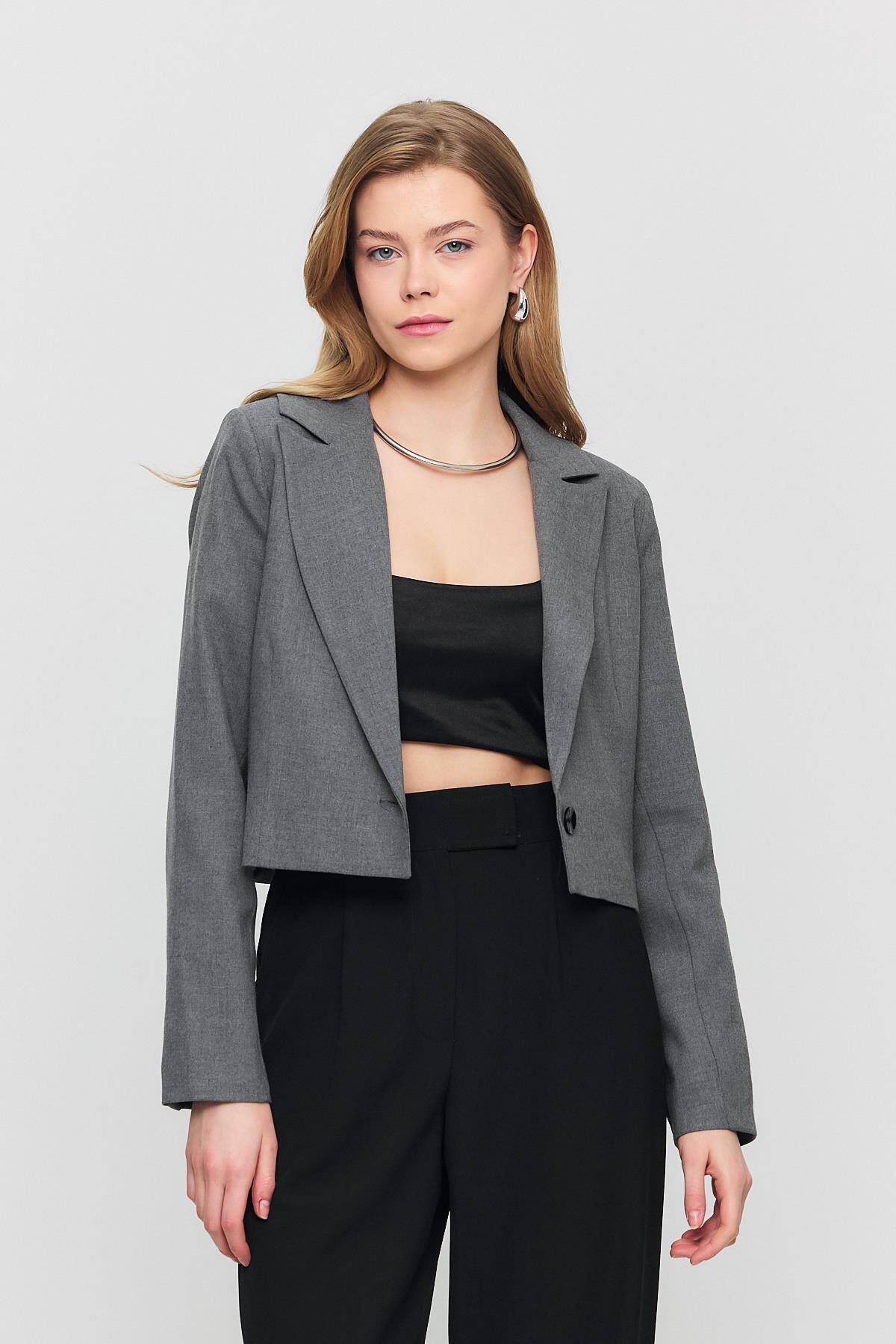 7149A Belden Bağlamalı Uzun Kaşe Kaban Gri