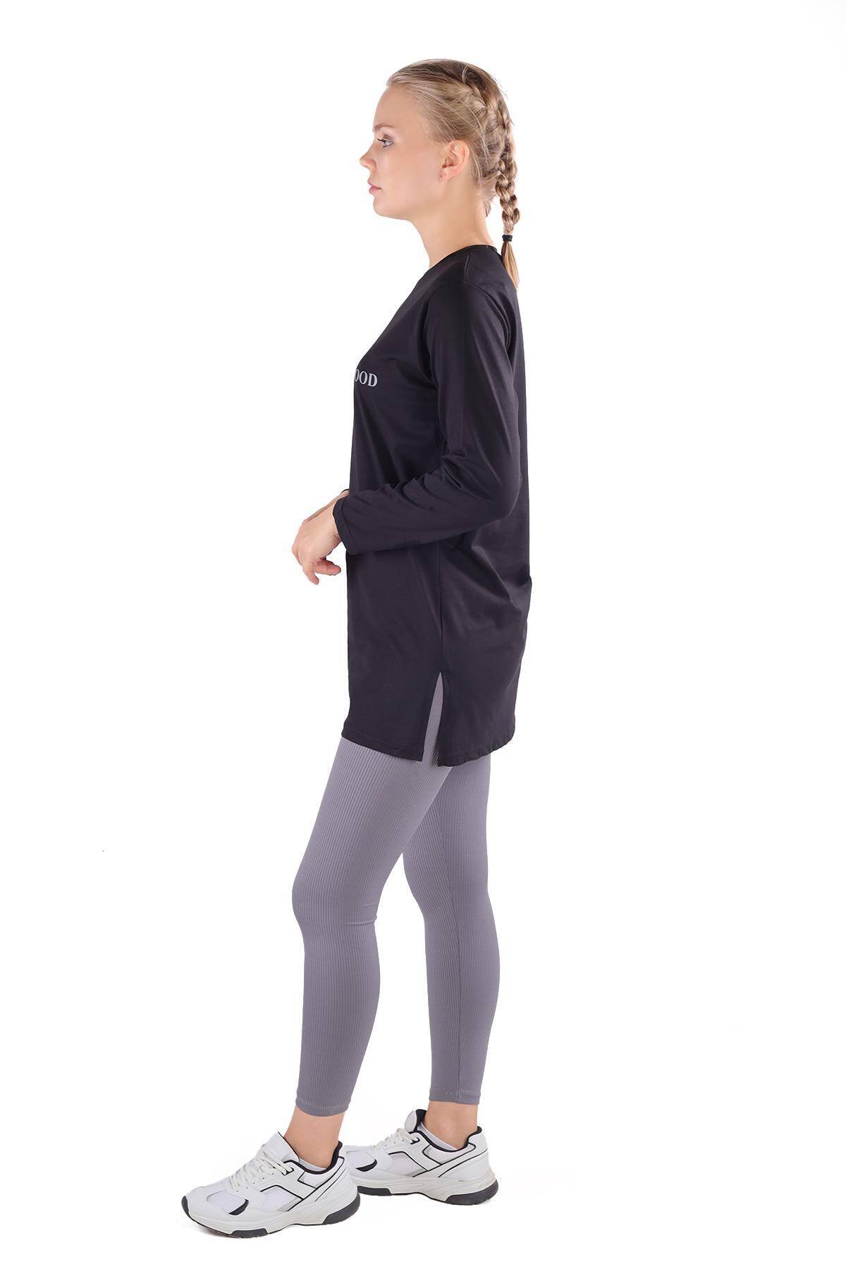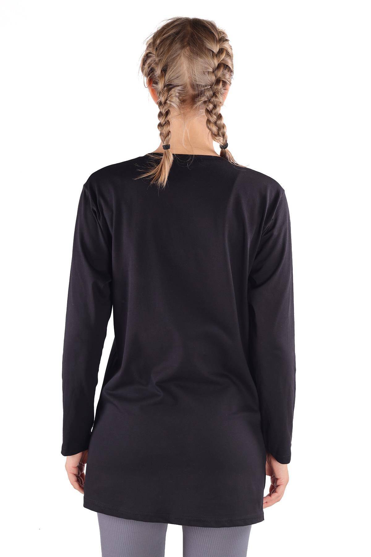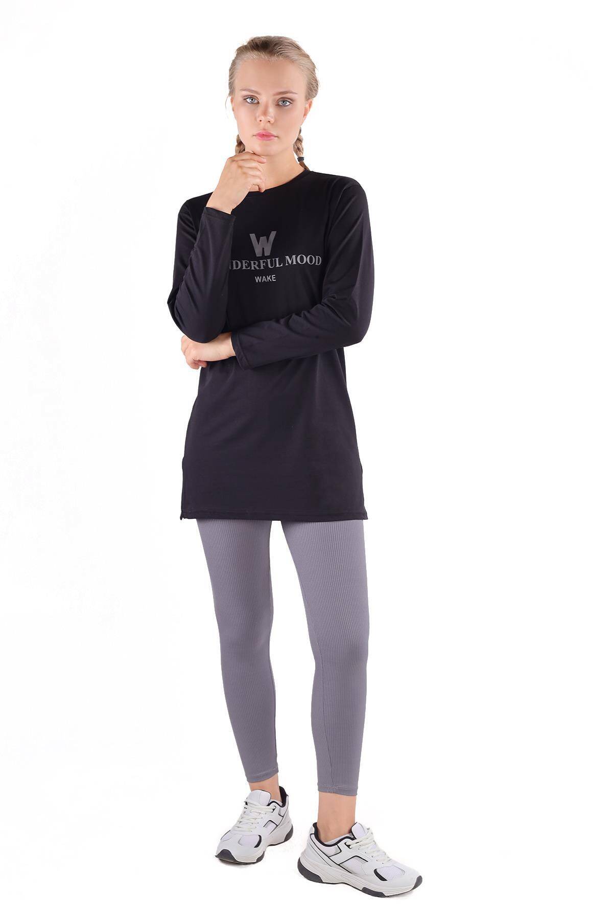 3981 WonderFul Baskılı Uzun Kol Tişört Siyah