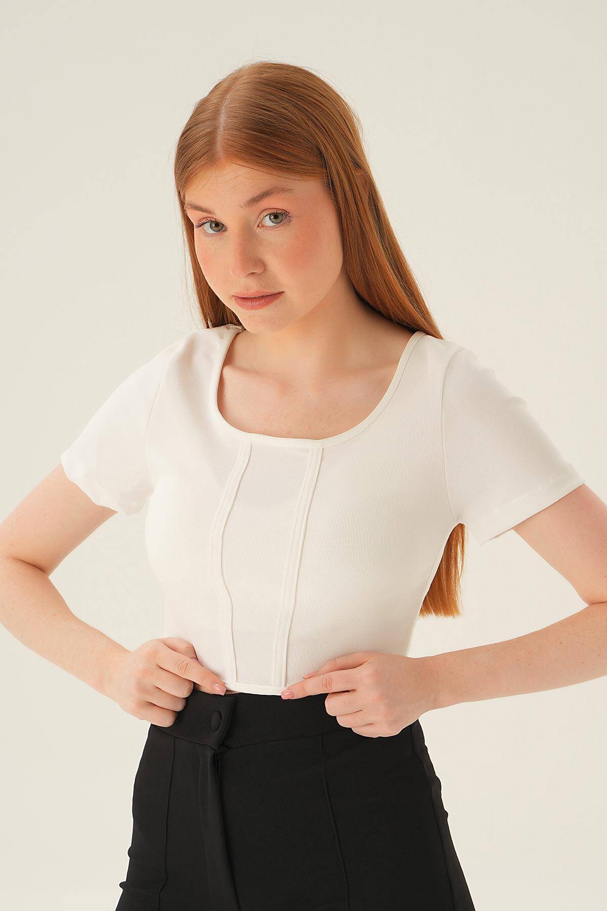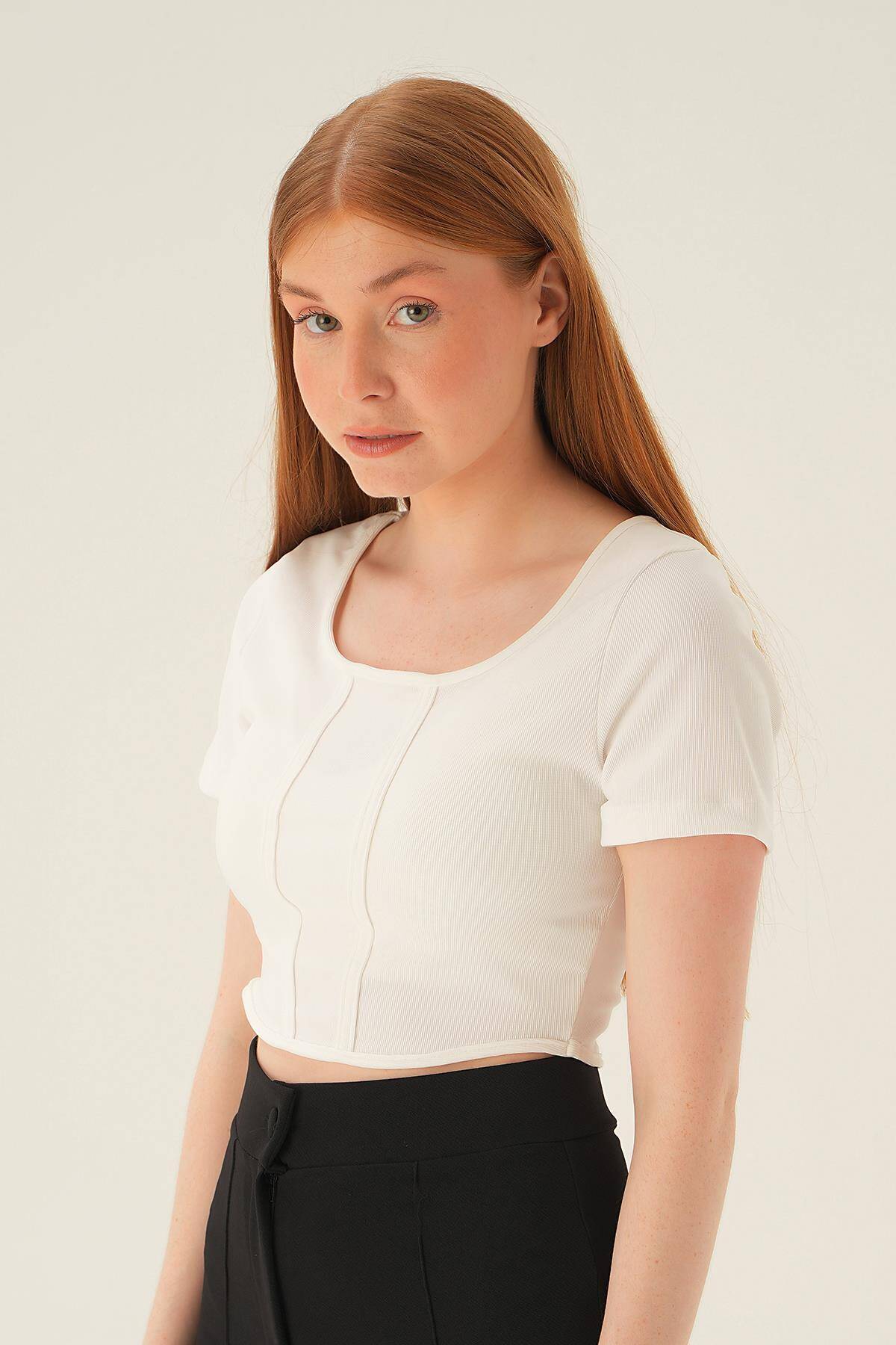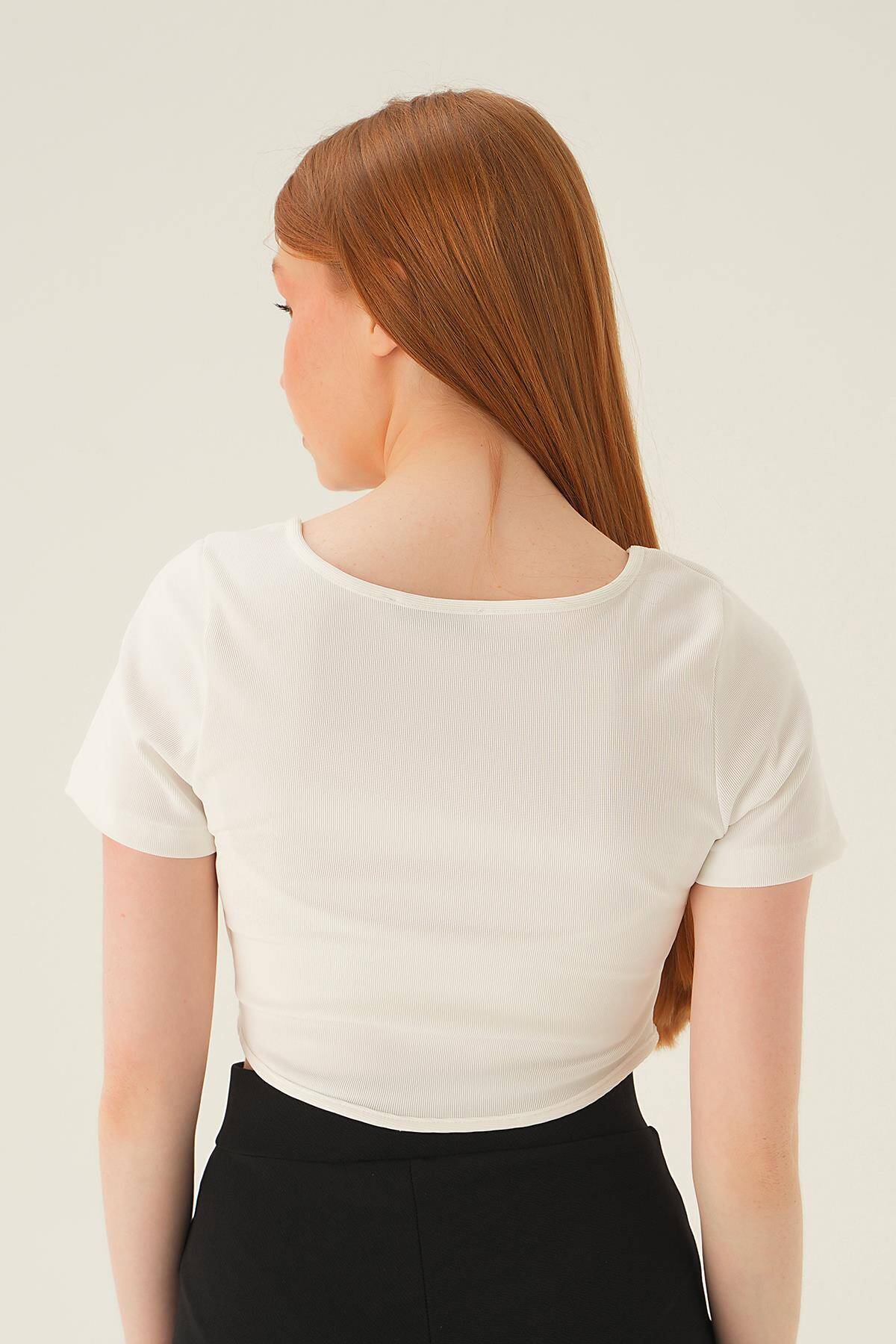 Beyaz Deri Kemer Detaylı Etnik Desenli Kimono 4363A
