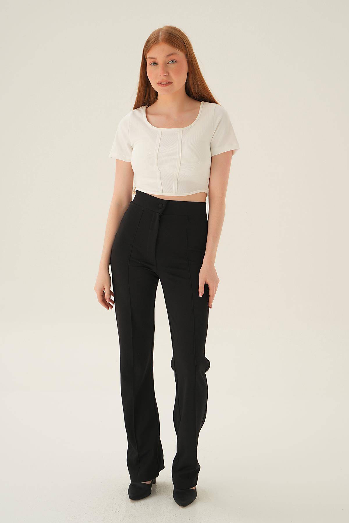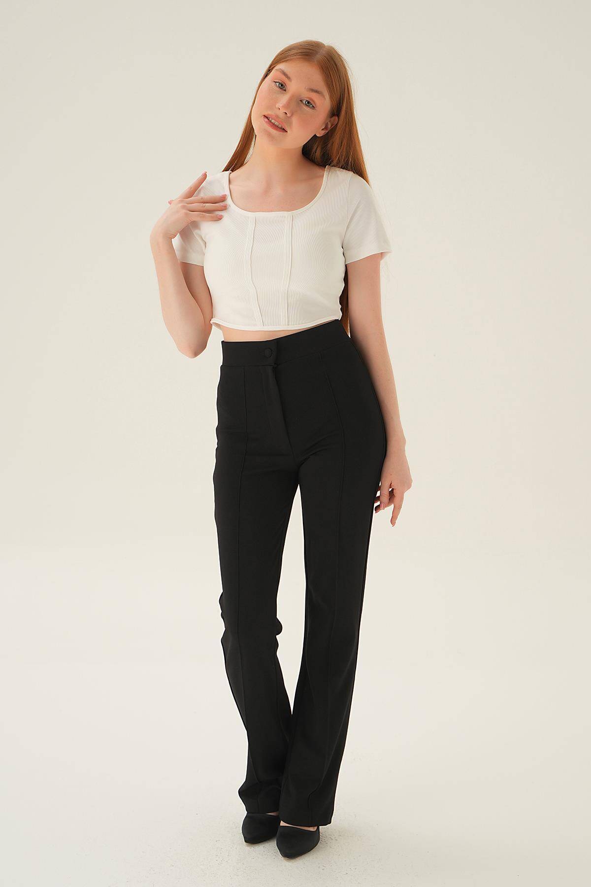 7149A Belden Bağlamalı Uzun Kaşe Kaban Siyah