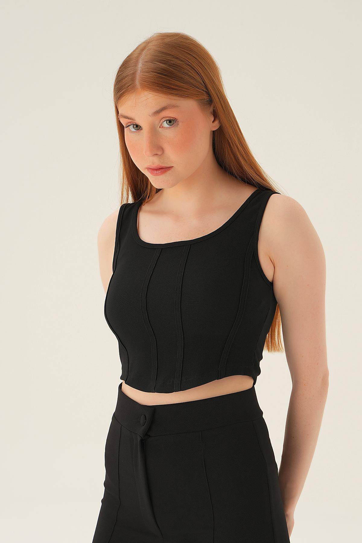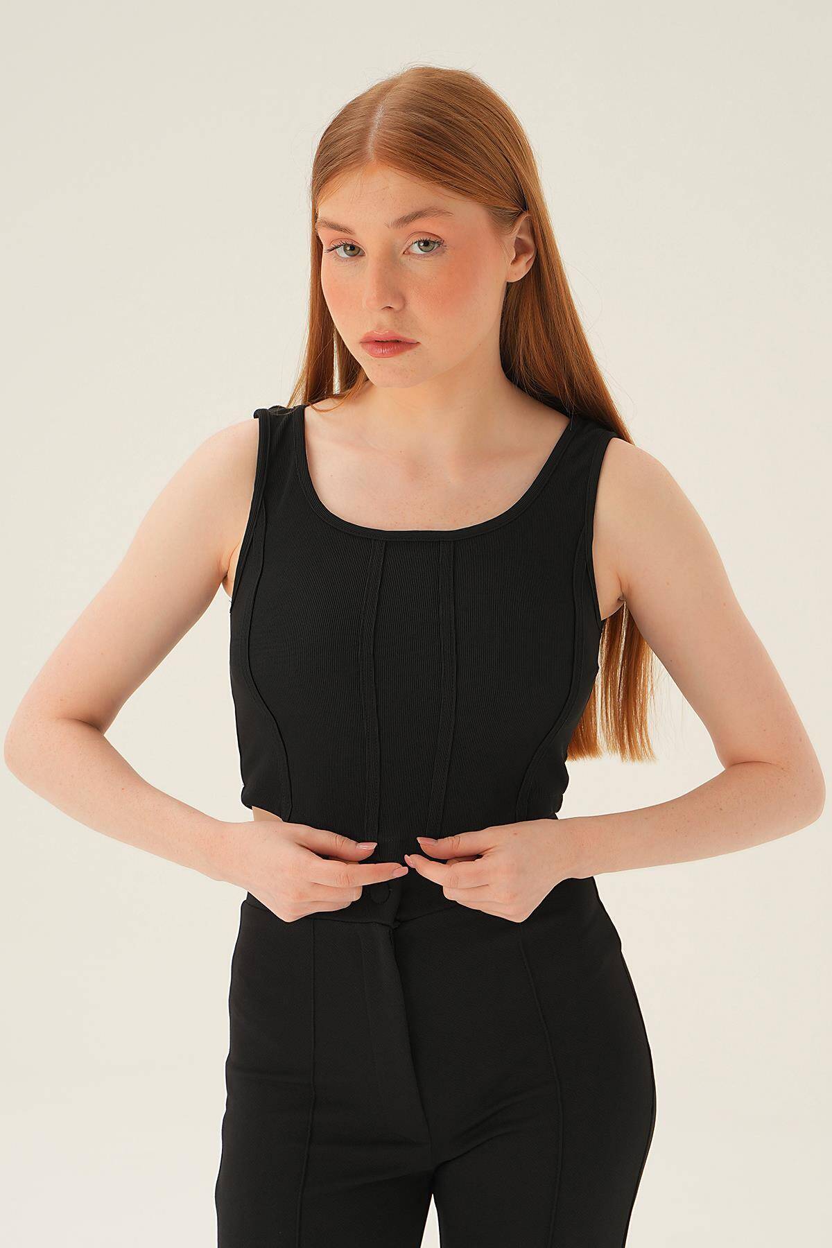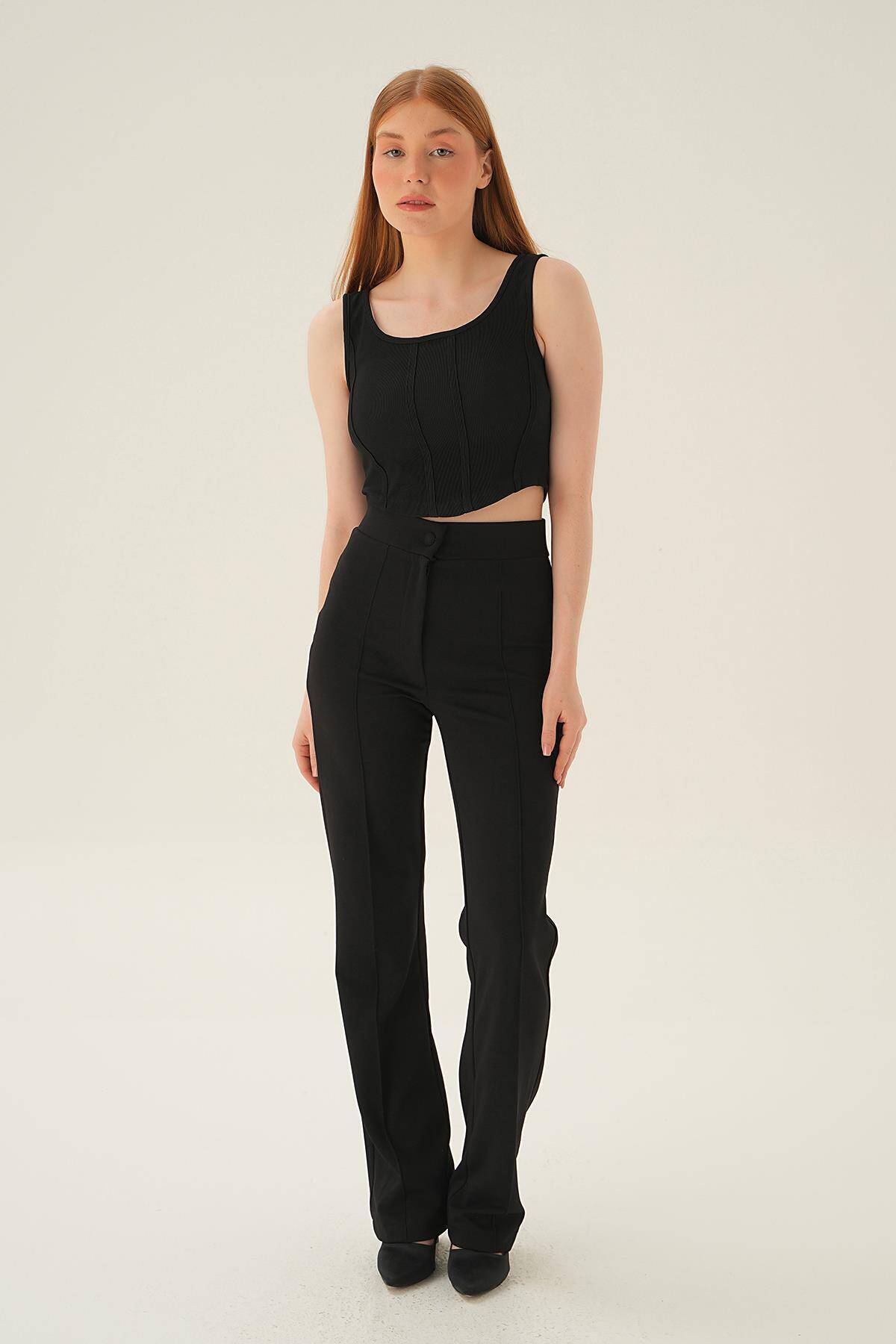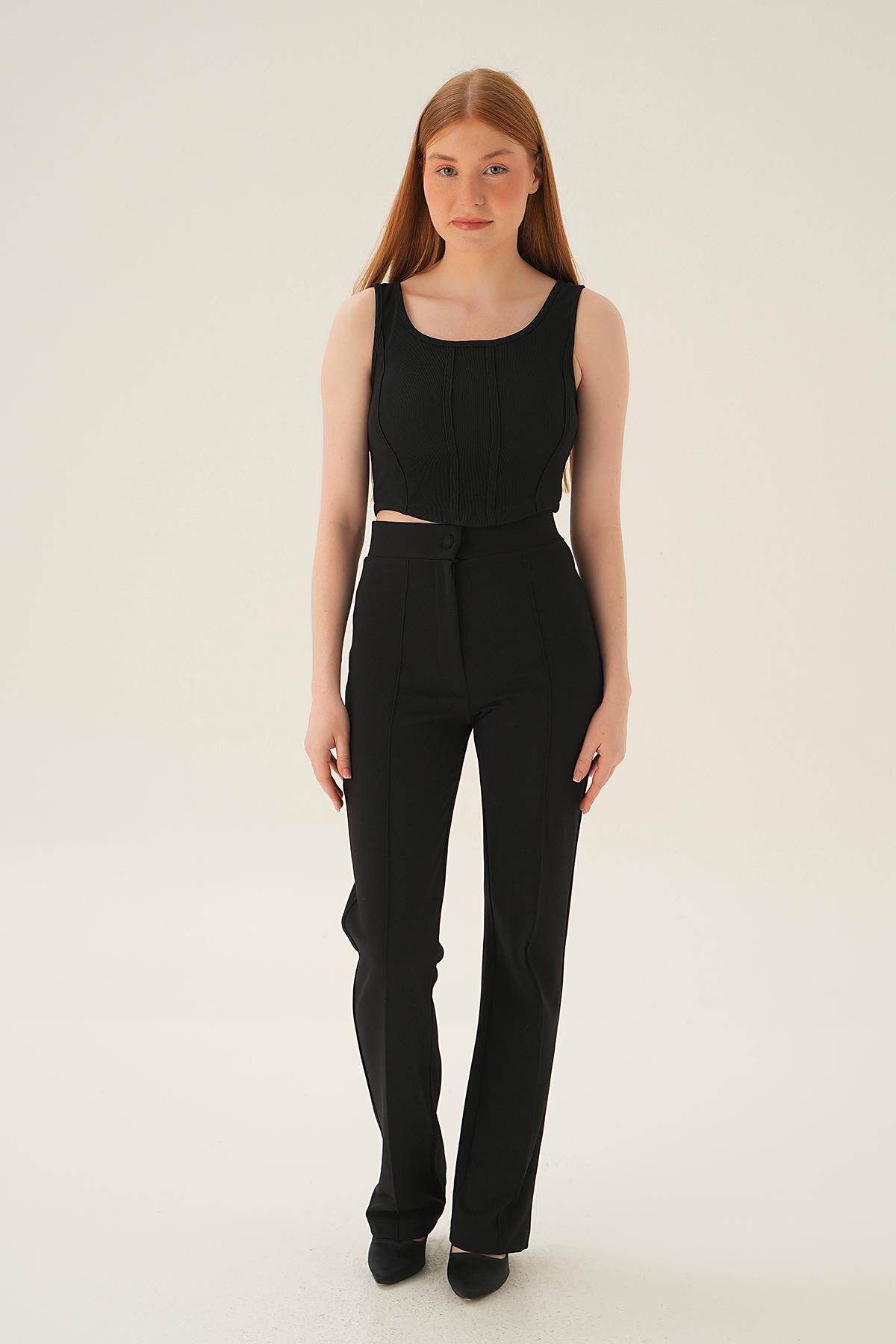 7149A Belden Bağlamalı Uzun Kaşe Kaban Siyah