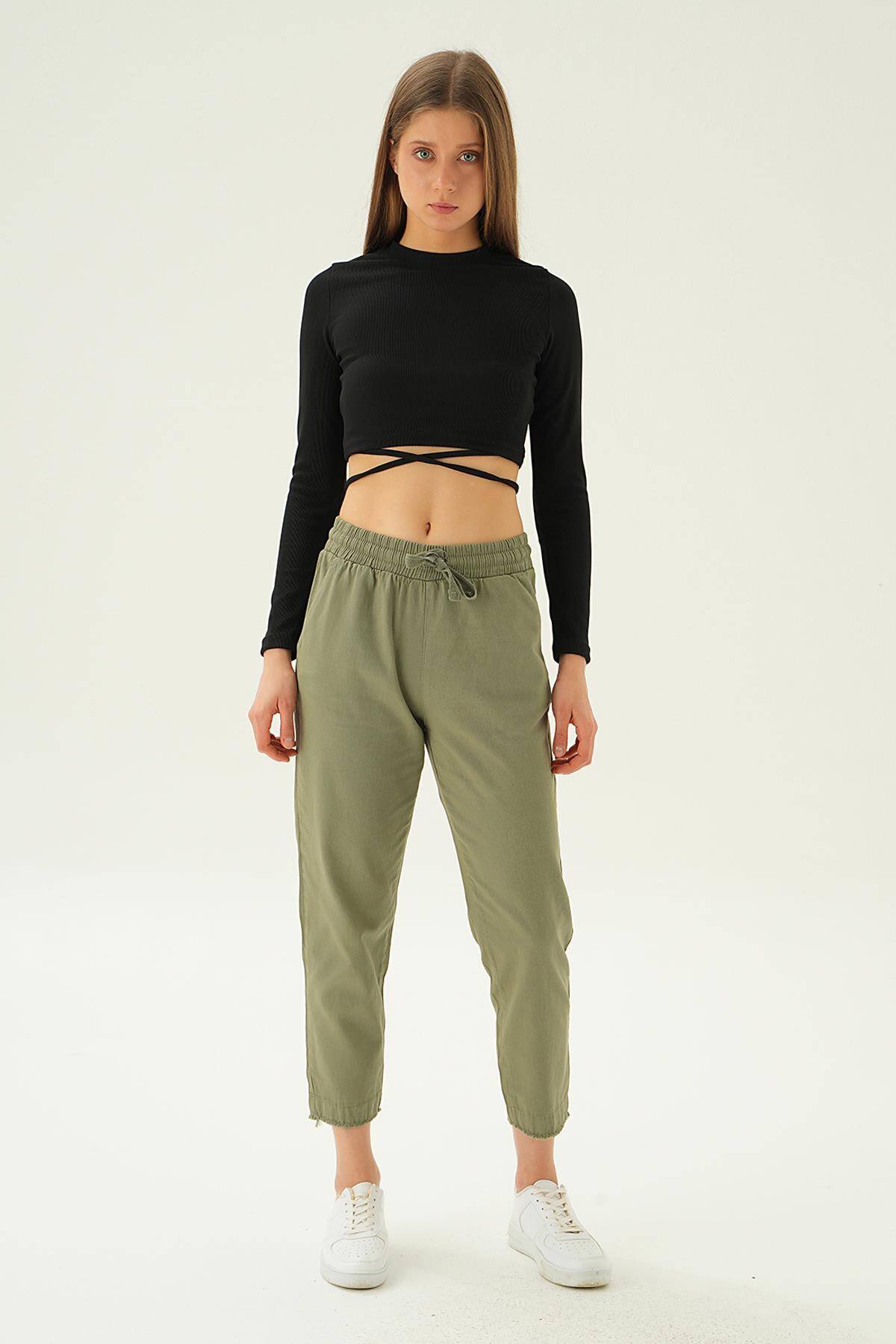 7149A Belden Bağlamalı Uzun Kaşe Kaban Siyah