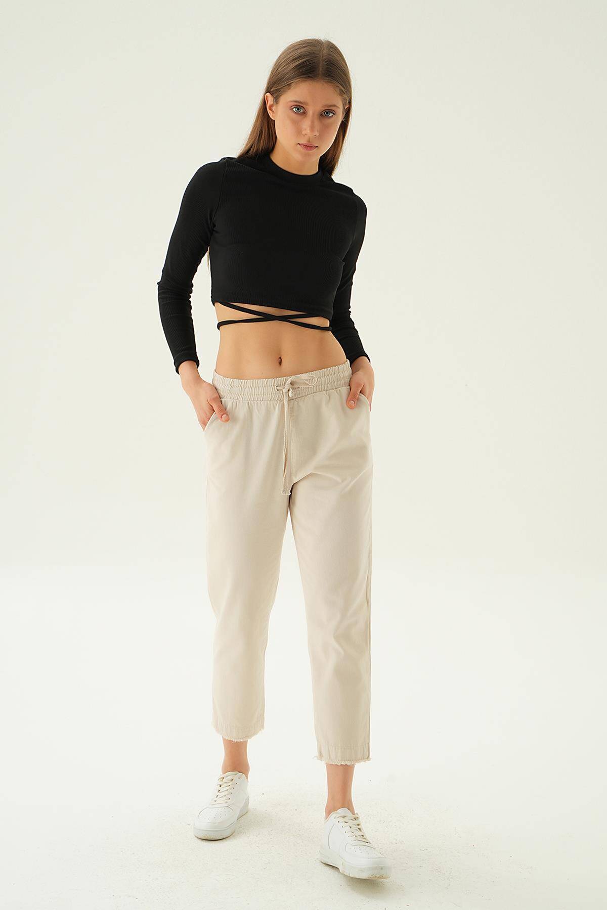 Bej Kapüşonlu Cepli Fermuarlı Kap 4572A