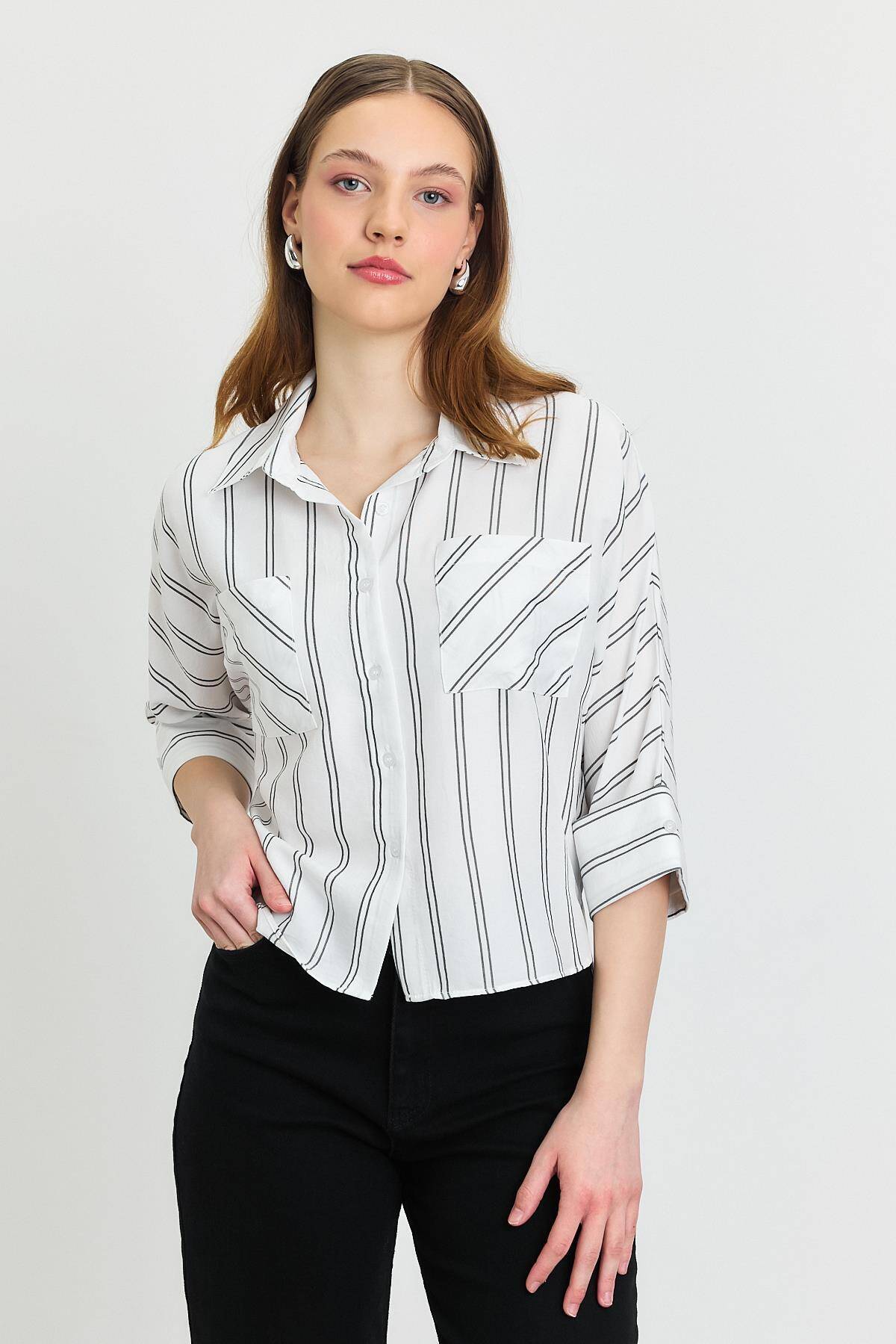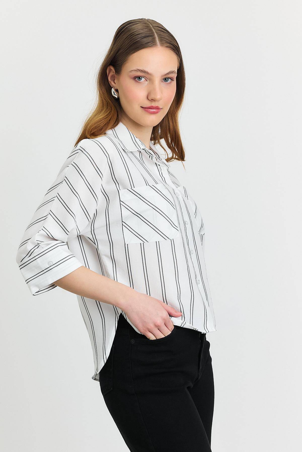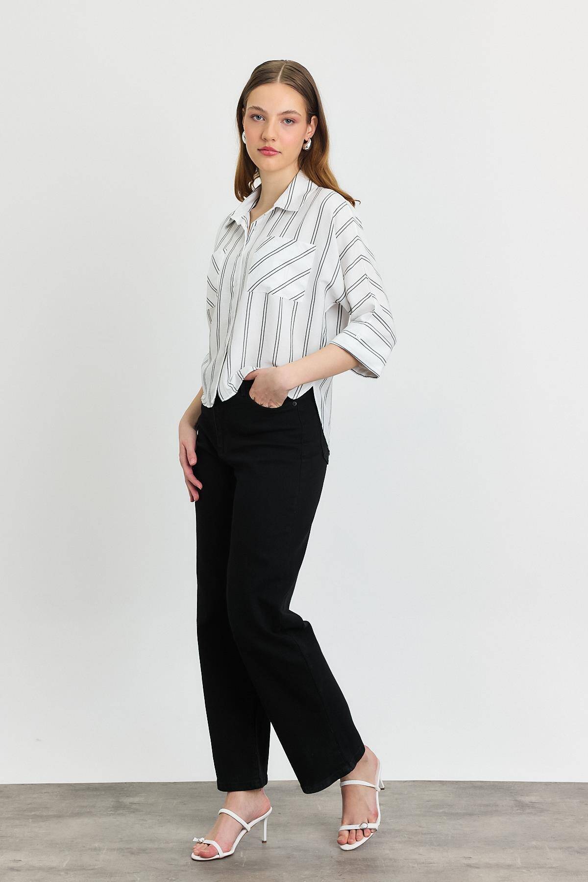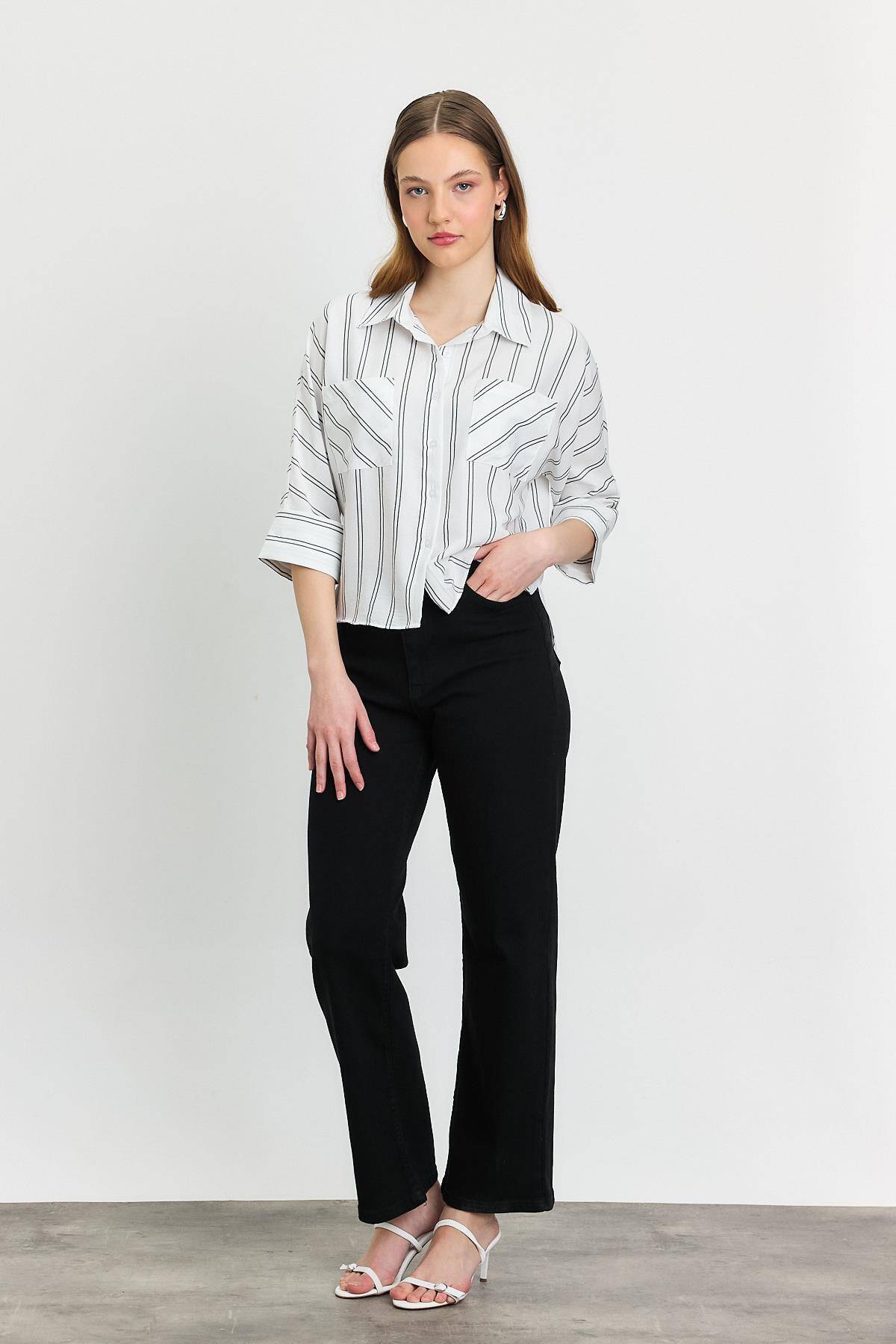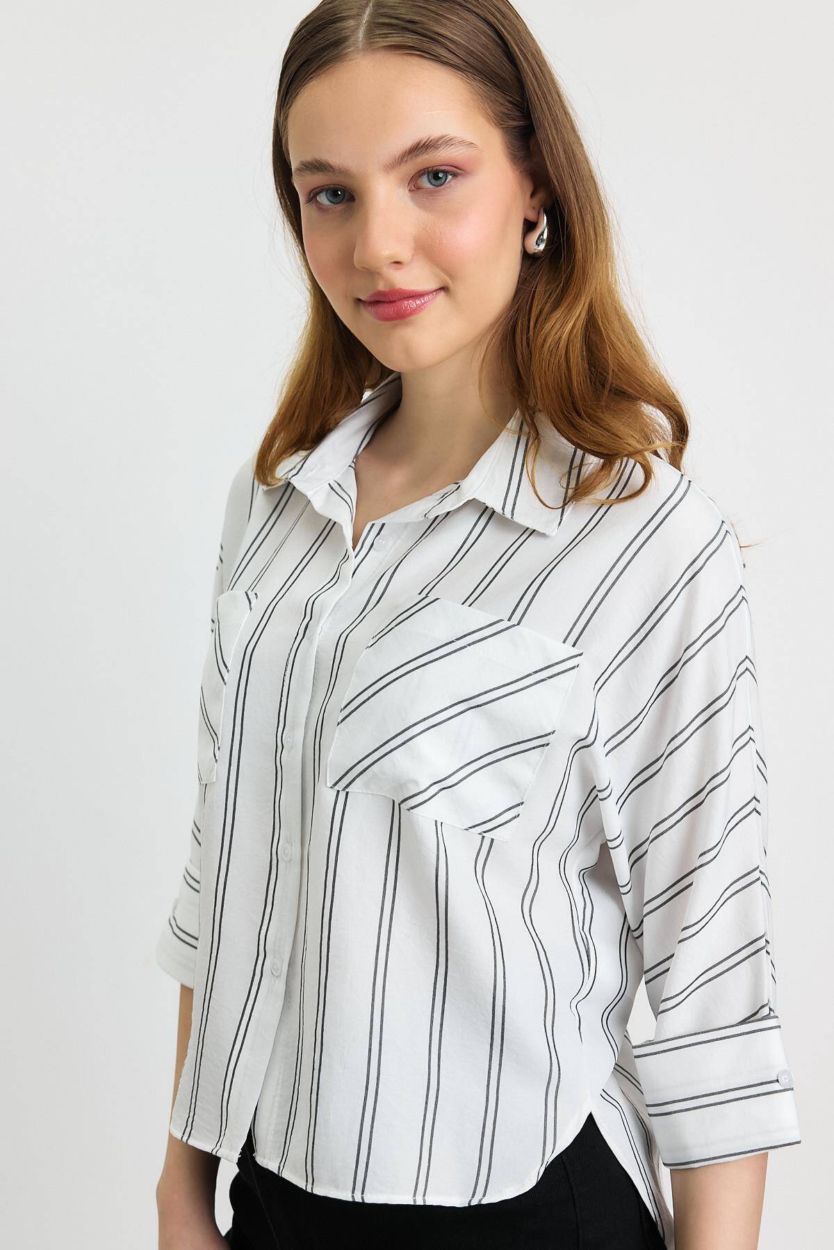 Beyaz Deri Kemer Detaylı Etnik Desenli Kimono 4363A