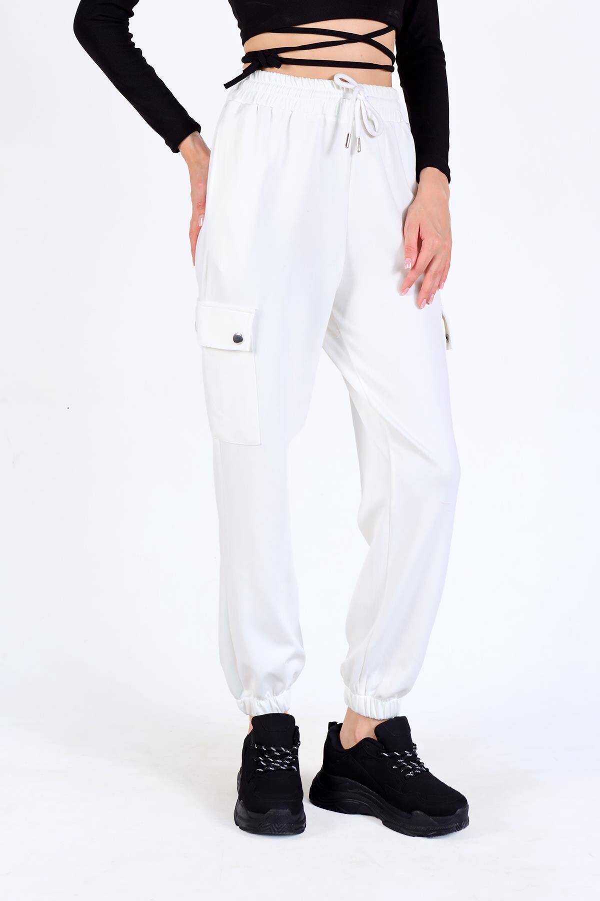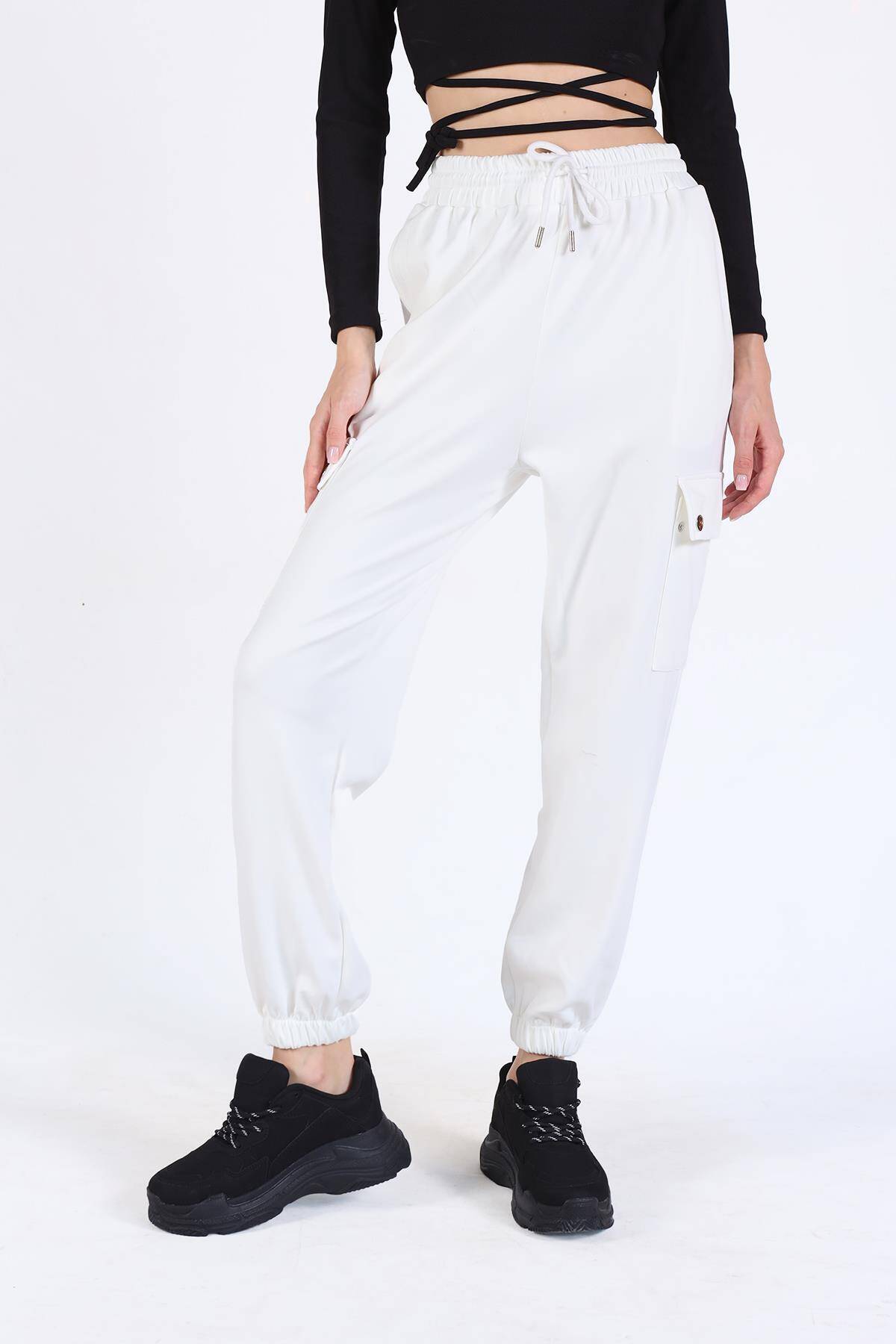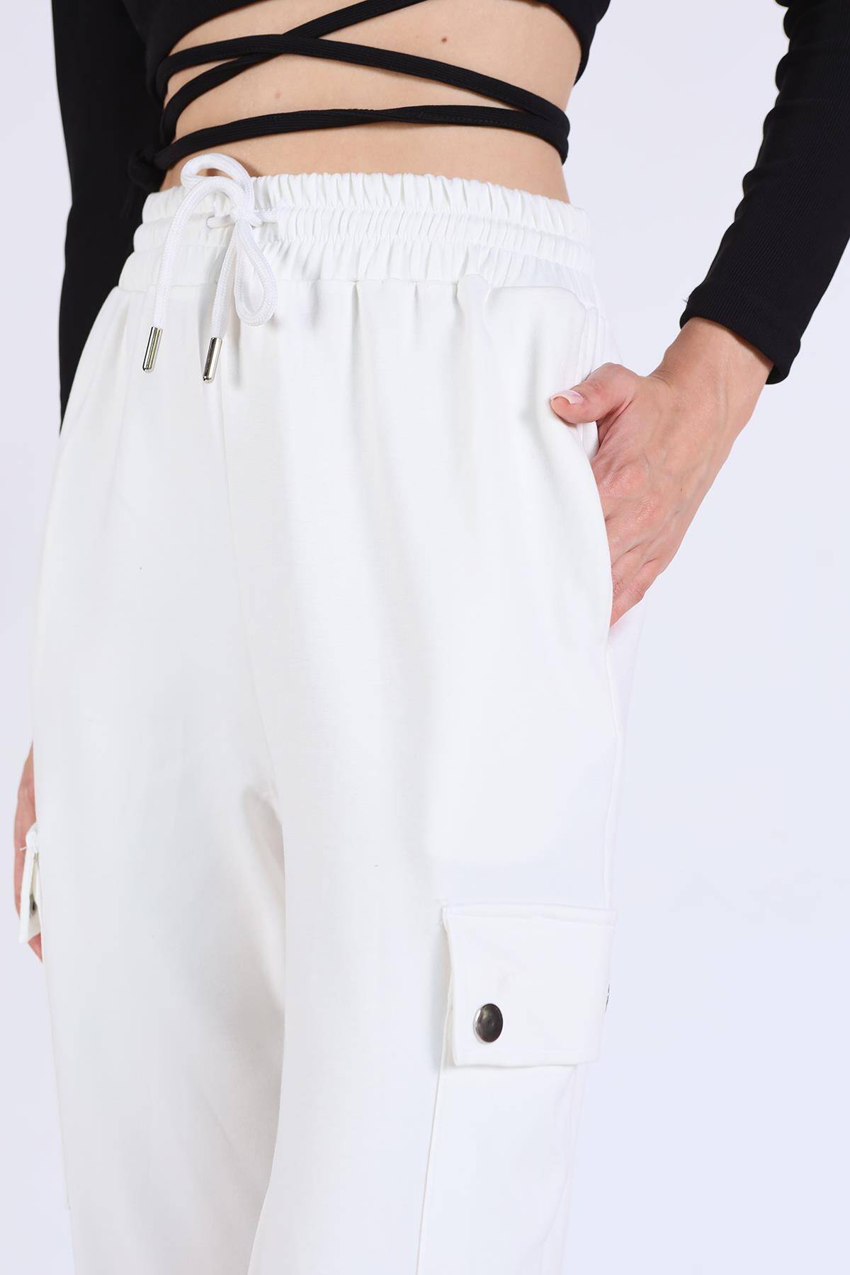 4285A Paça Lastikli Kargo Cep Eşofman Beyaz
