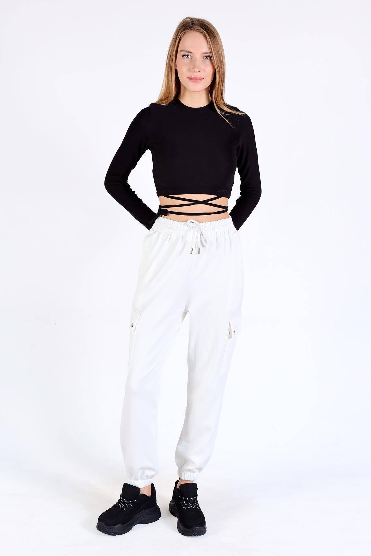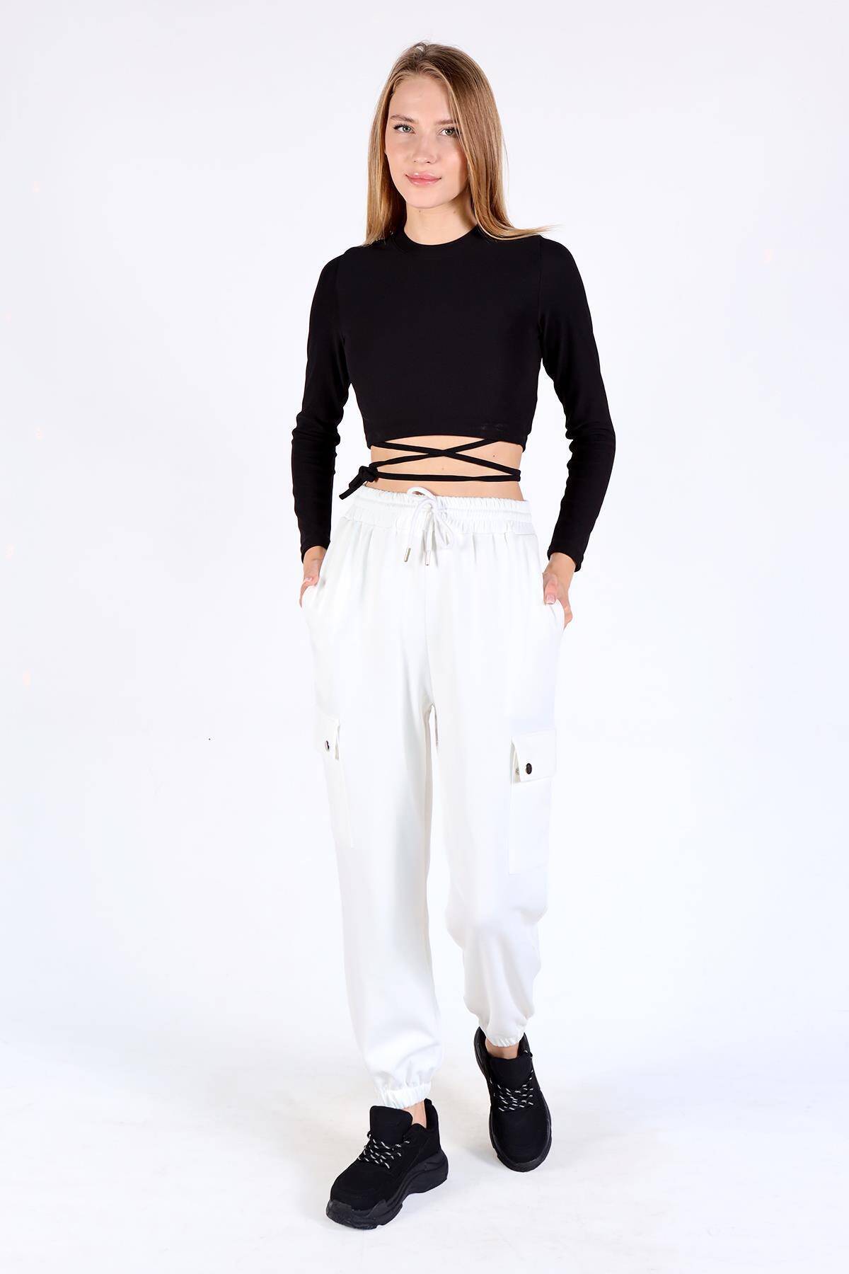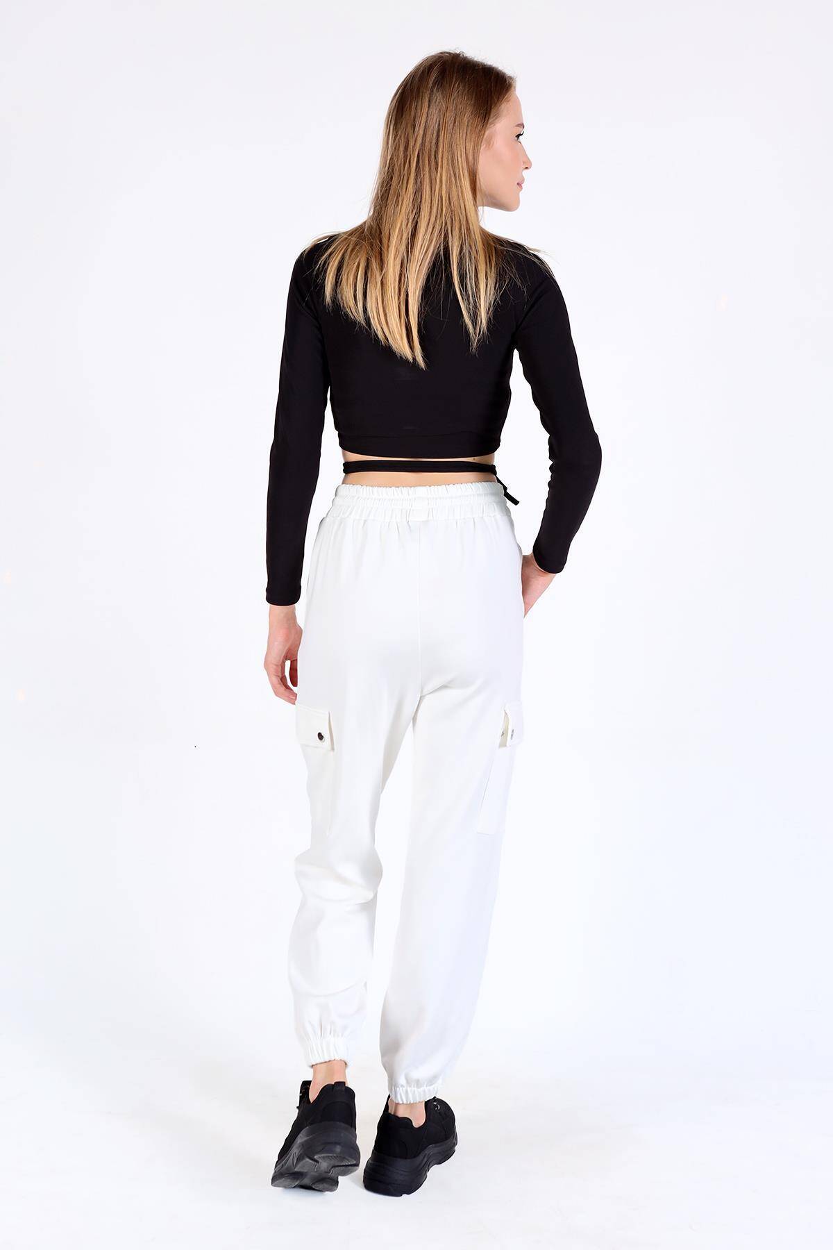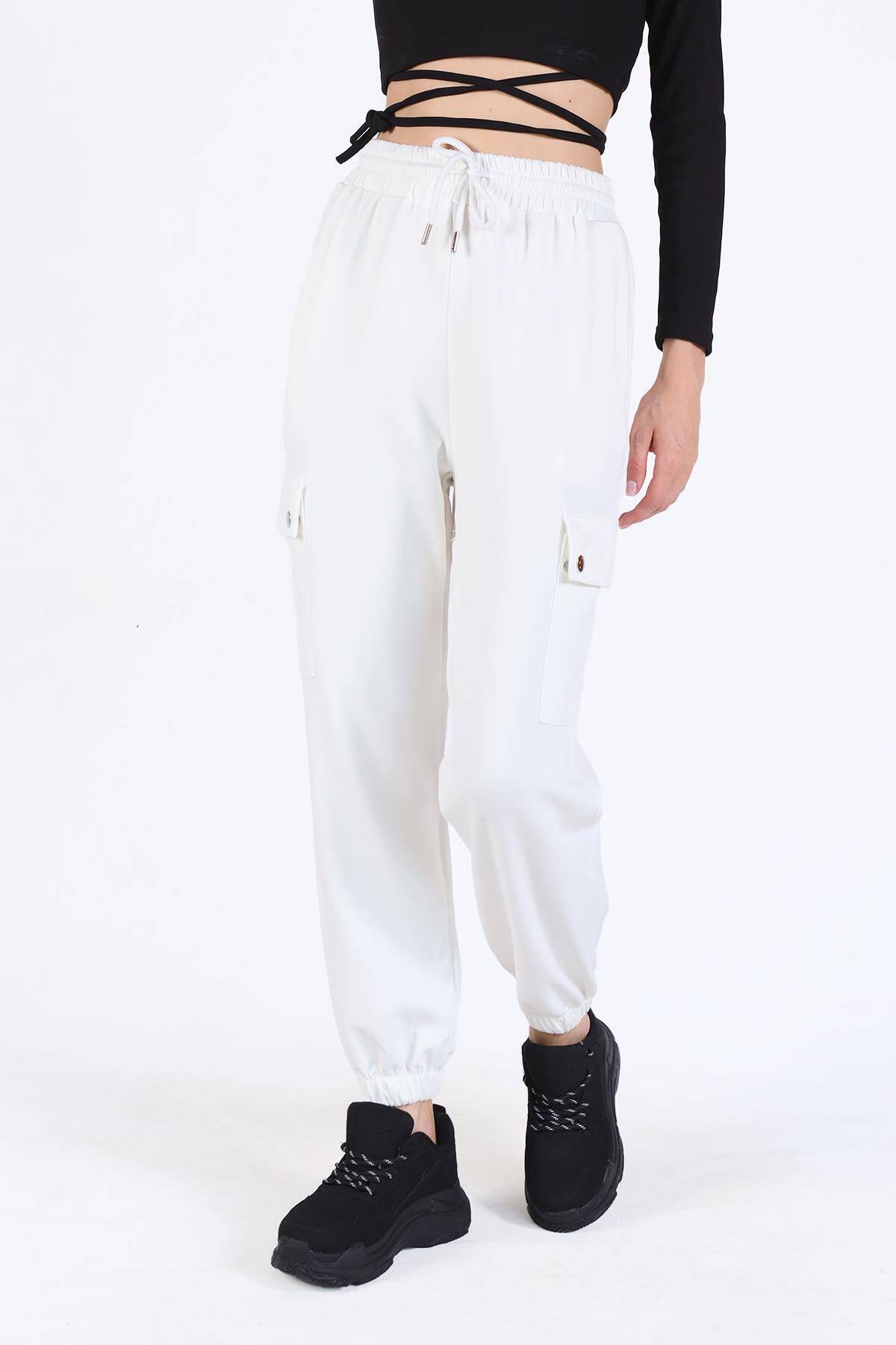 4285A Paça Lastikli Kargo Cep Eşofman Beyaz