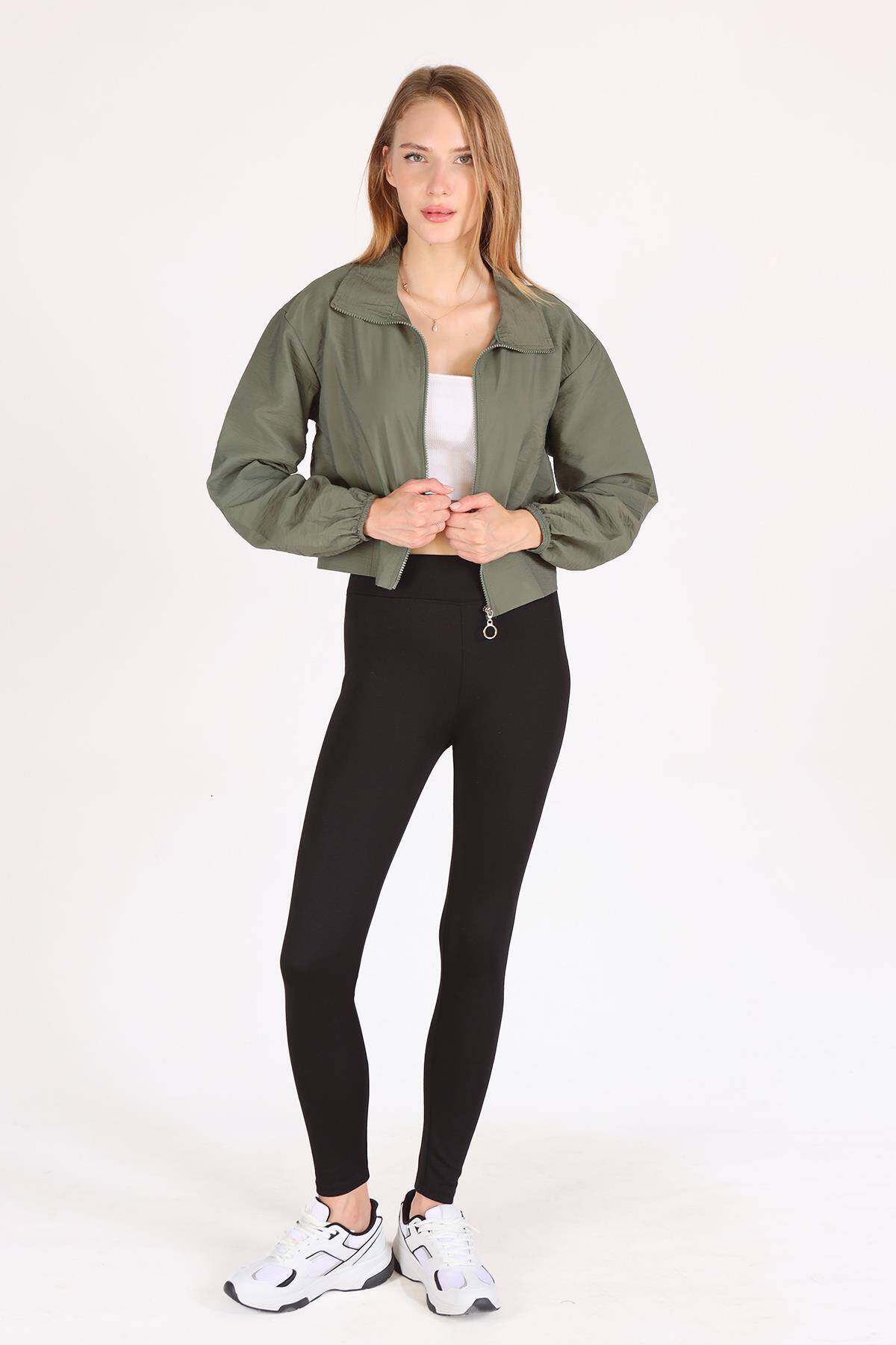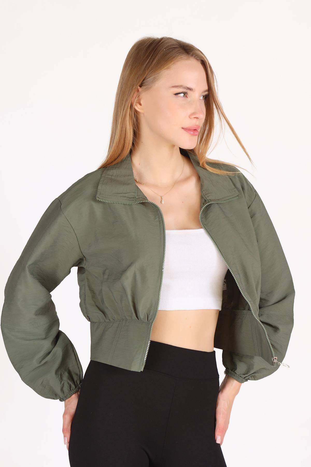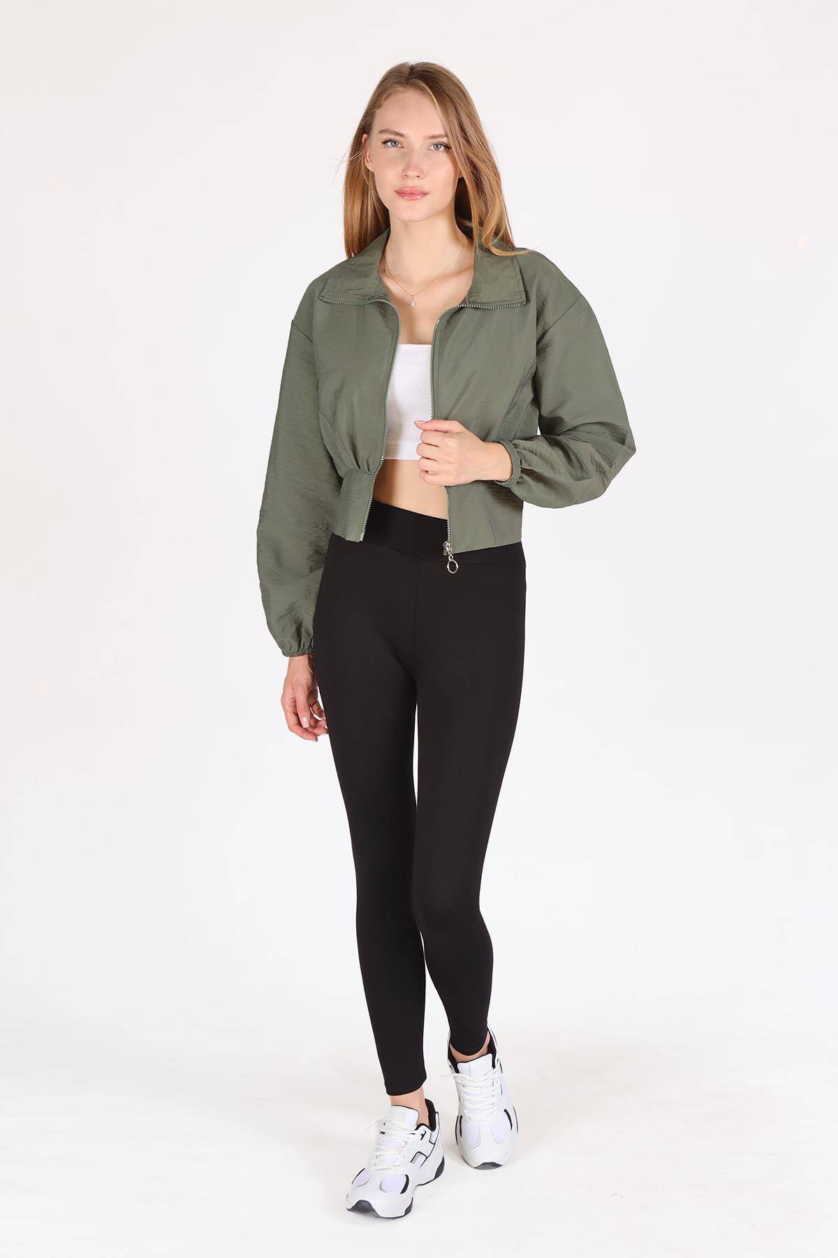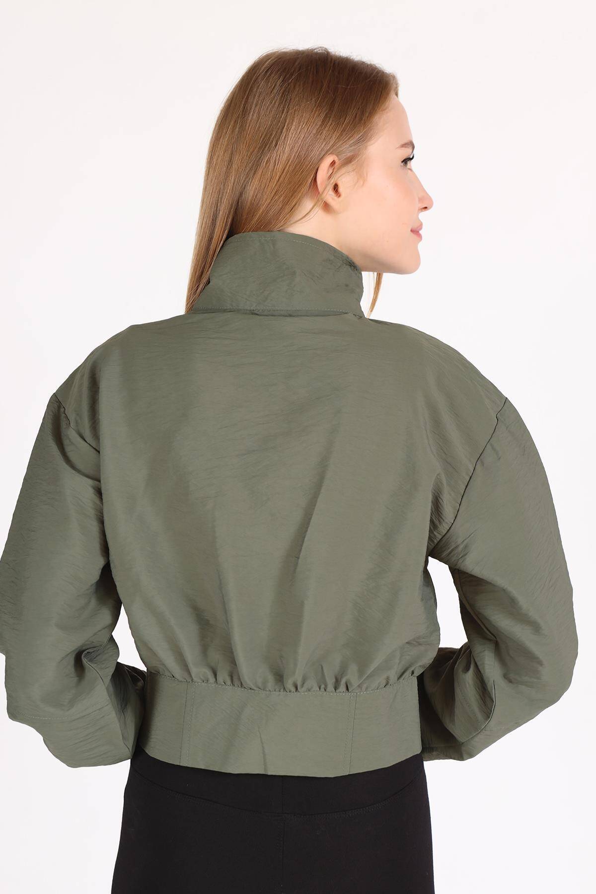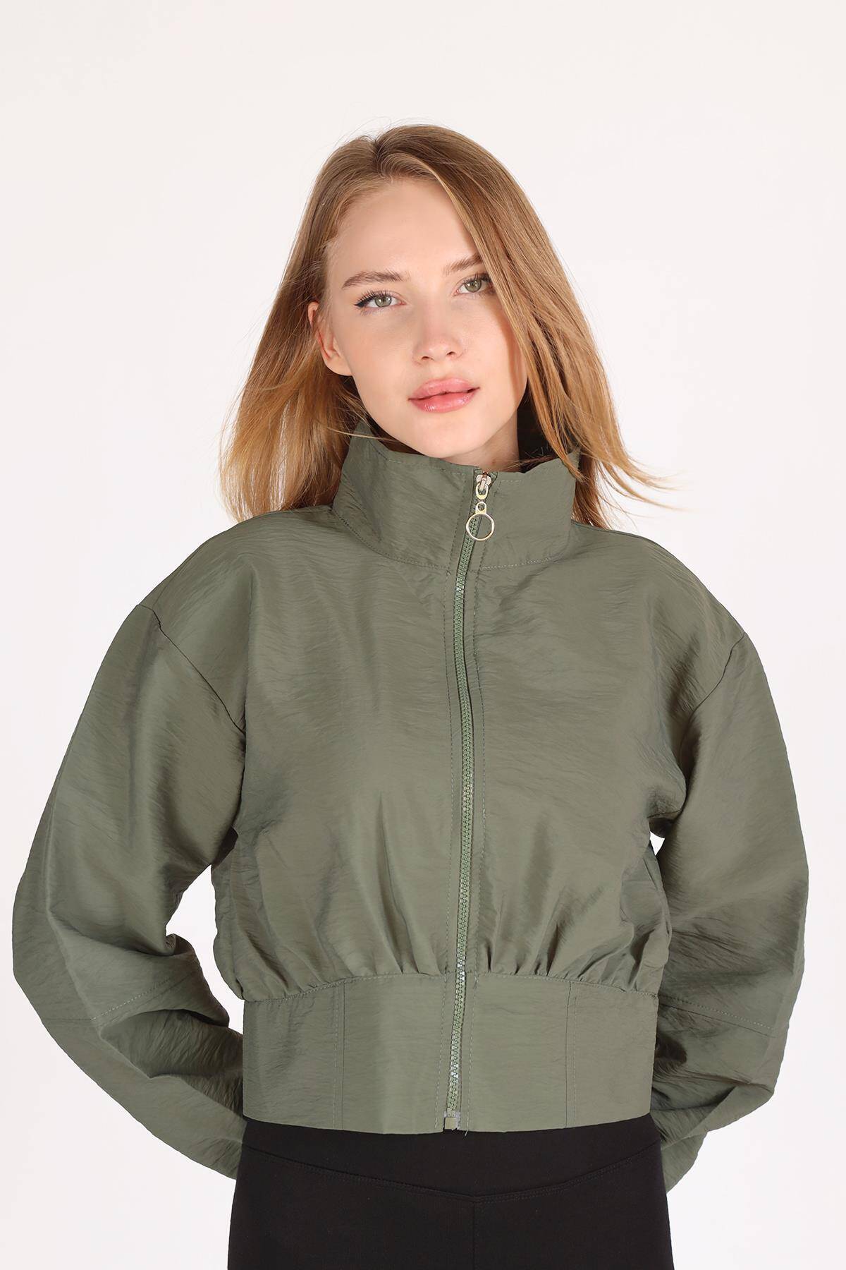 4296A Önü Fermuarlı Kısa Ceket Haki