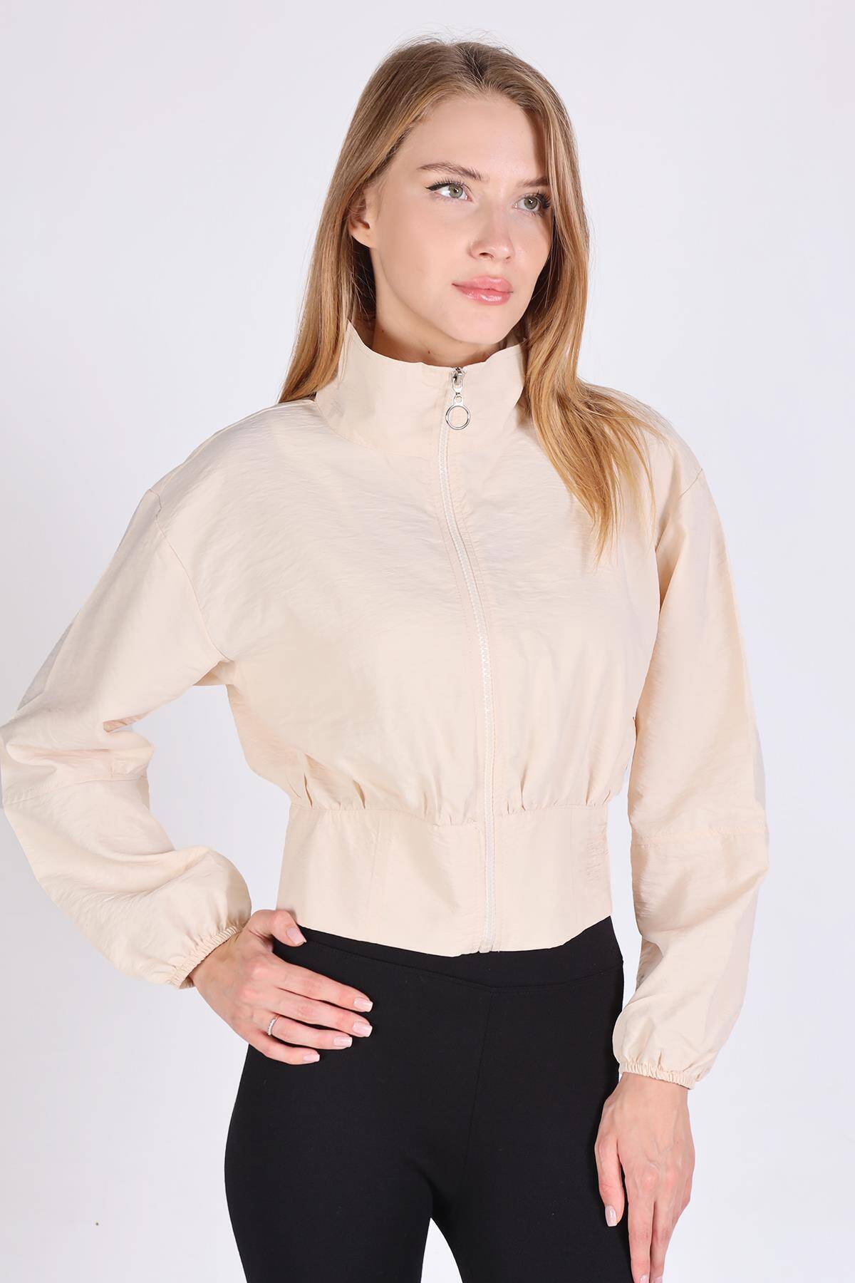 4296A Önü Fermuarlı Kısa Ceket Taş