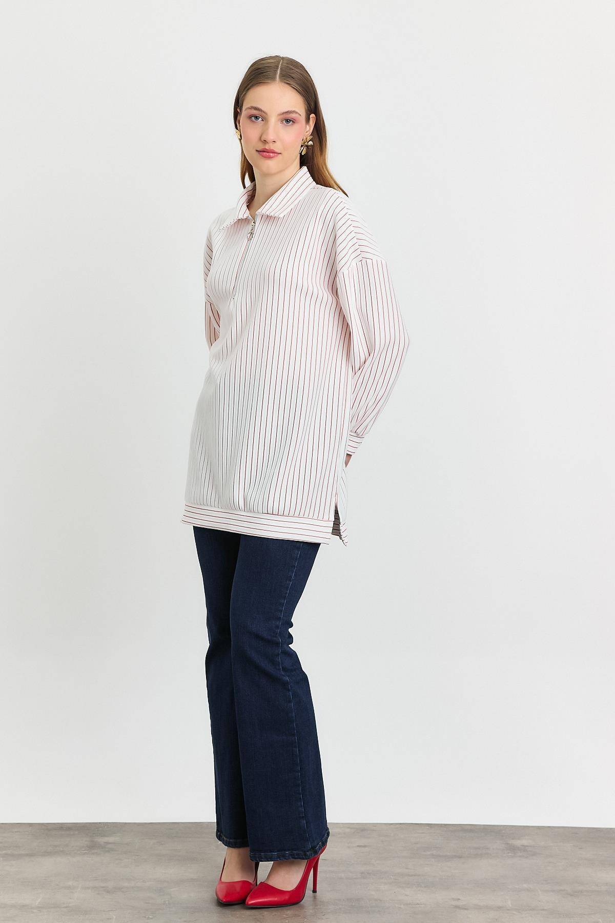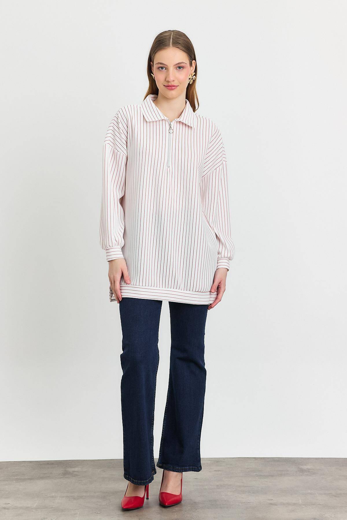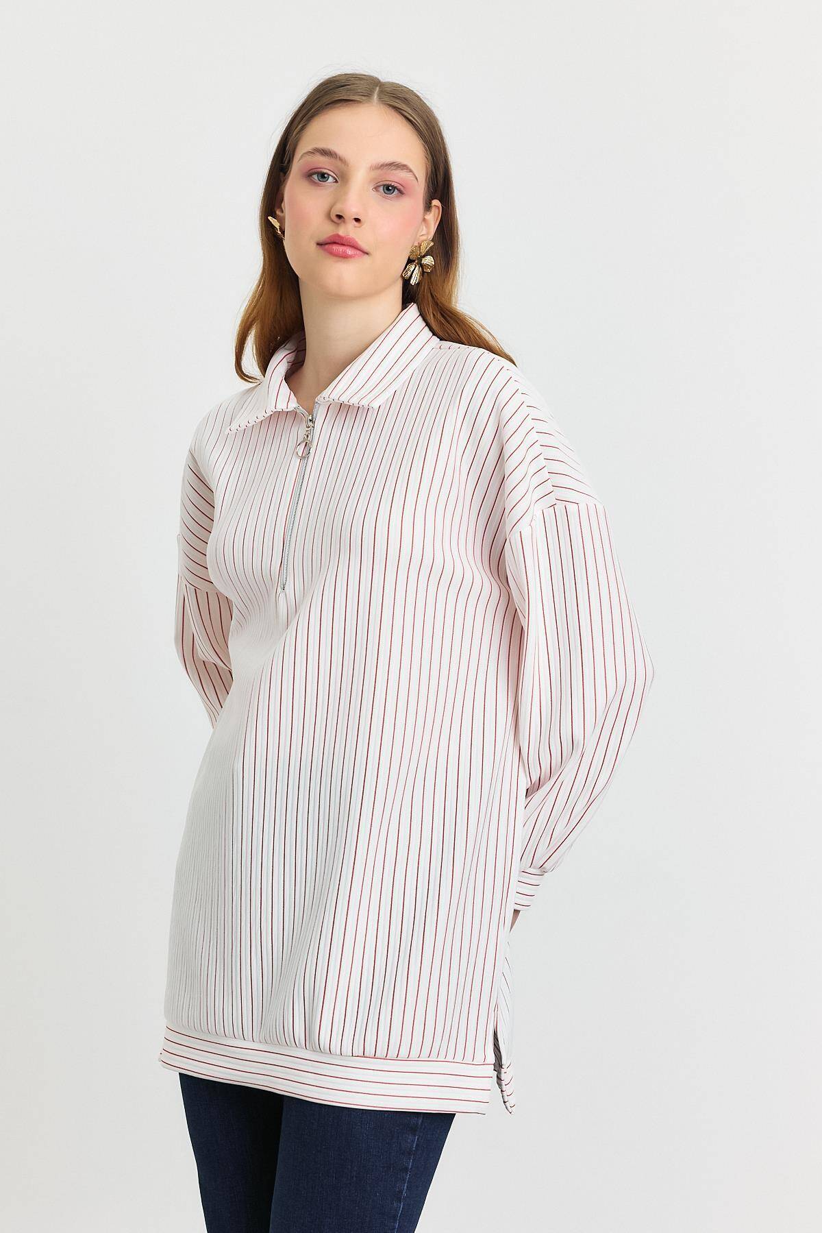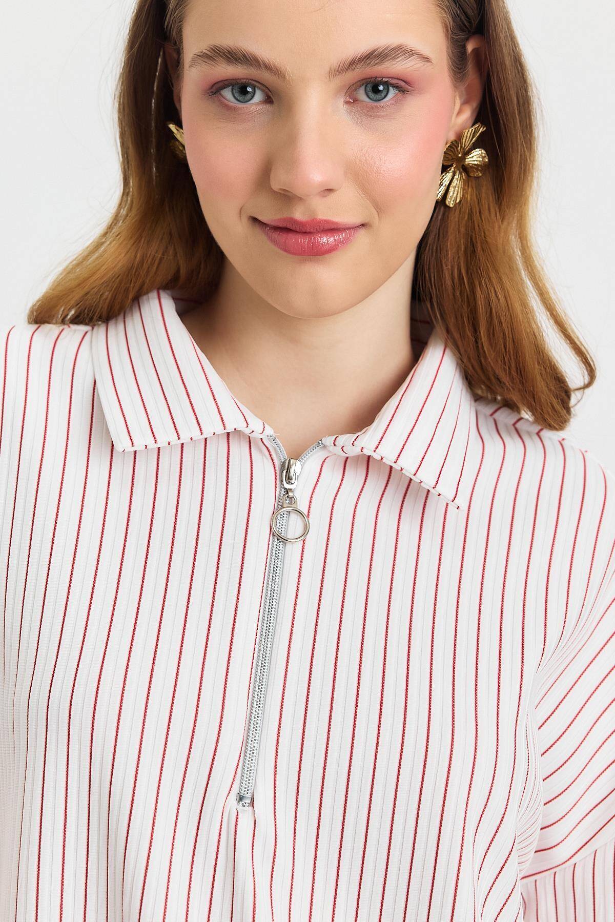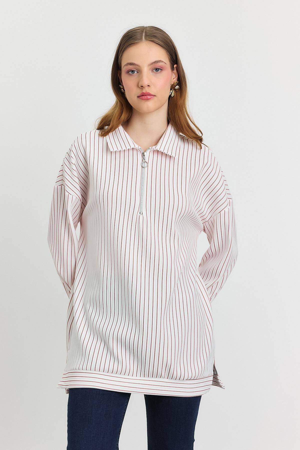 4302A Yarım Fermuarlı Tunik Kırmızı